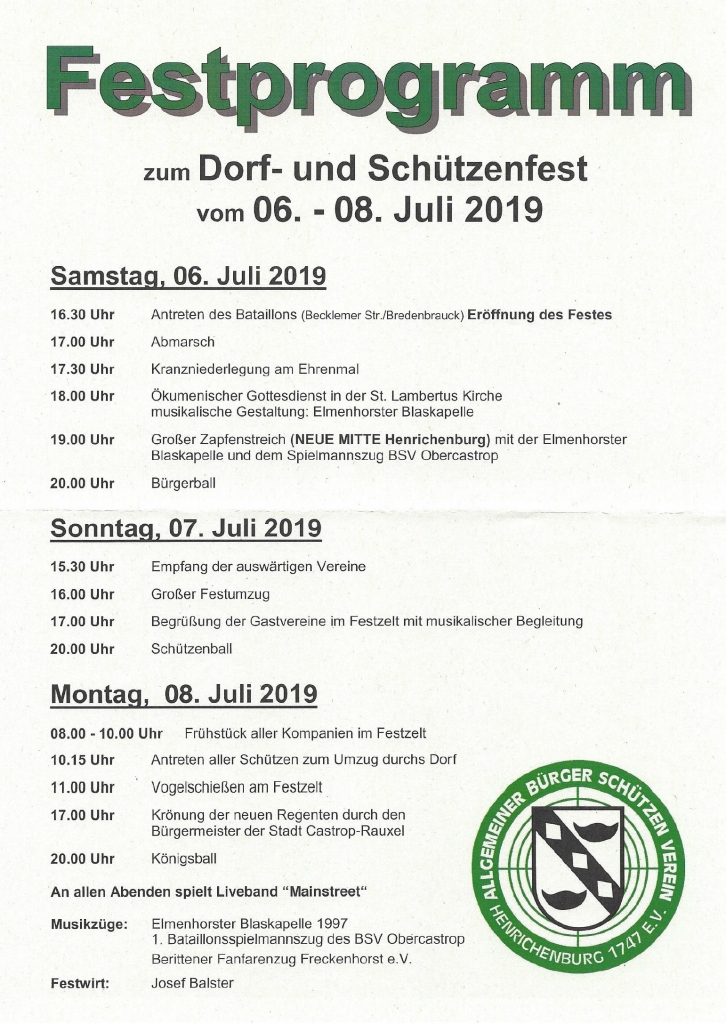 Am Sonntag, den 07.07. werden wir am großen Festumzug teilnehmen. Wir treffen uns dazu um 15.30 Uhr in der Straße "Herrenkamp", der Festzug soll gegen 16.00 Uhr starten.