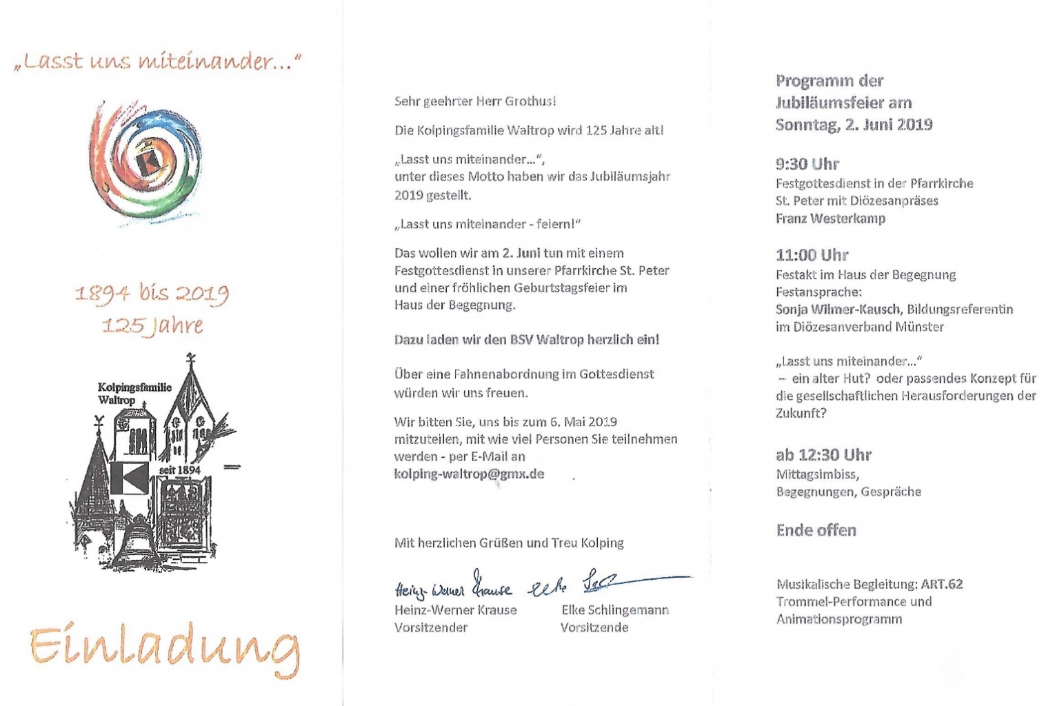 Die Kolpingfamilie Waltrop wird 125 Jahre alt, zum entsprechenden Festgottesdienst ist auch der BSV Waltrop herzlich eingeladen.