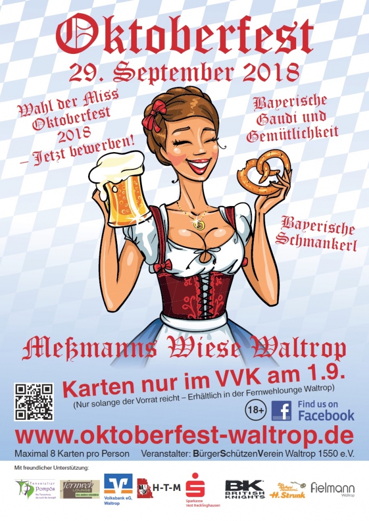 Am Samstag, den 01.09.2018 findet der Karten-Vorverkauf für das diesjährige Oktoberfest statt. Ab 09.00 Uhr können wieder Karten für das Waltroper Oktoberfest in der Fernwehlounge Waltrop erworben werden.