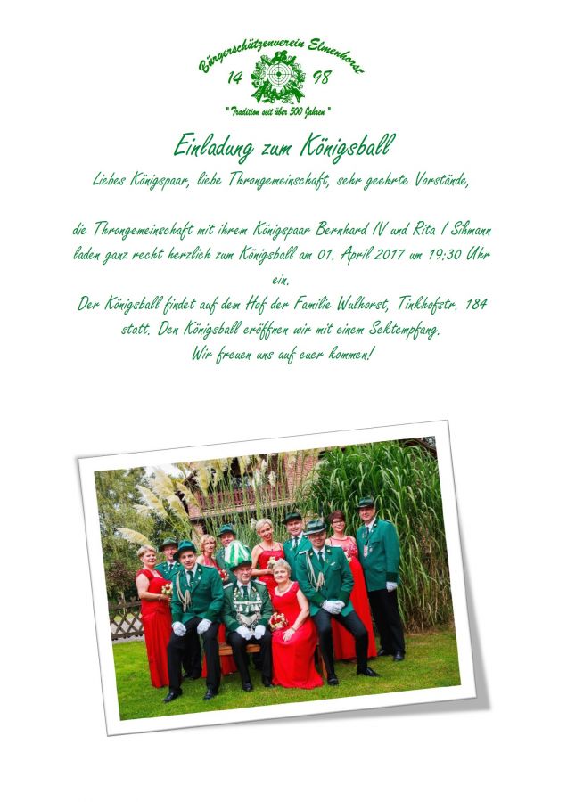 Wir haben eine Einladung zum Königsball des BSV Elmenhorst erhalten.