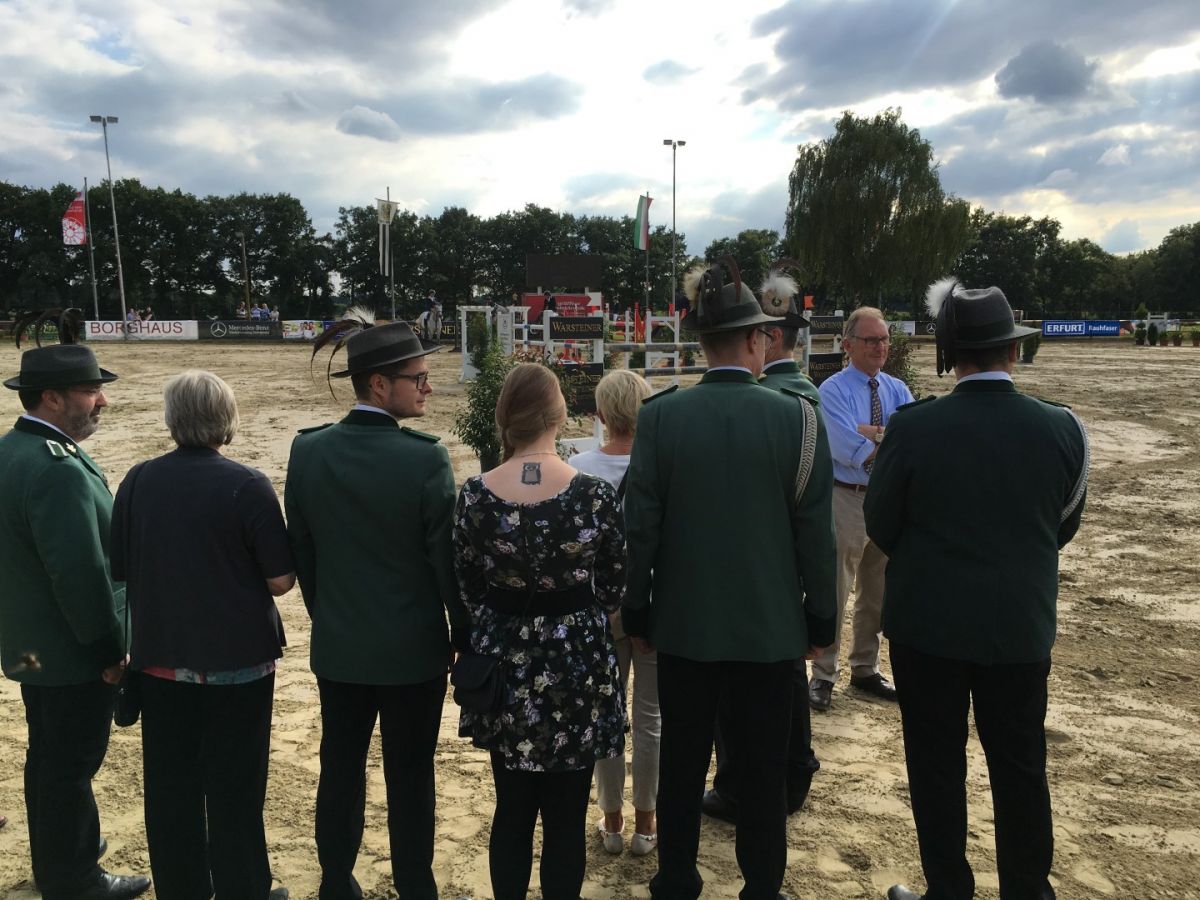Geschäftsführer Theo Wesselbaum mit Ehrenvorsitzendem Manni Rettkowski und General Schorsch Bertling bildeten die Abordnung des Bataillonsvorstandes, bedingt durch die Ferienzeit ließen sich unter anderem der 1. Vorsitzende Ludger Grothus oder Stellvertreter Dr. Hermann Geldmann entschuldigen, da diese sich im verdienten Urlaub befanden.