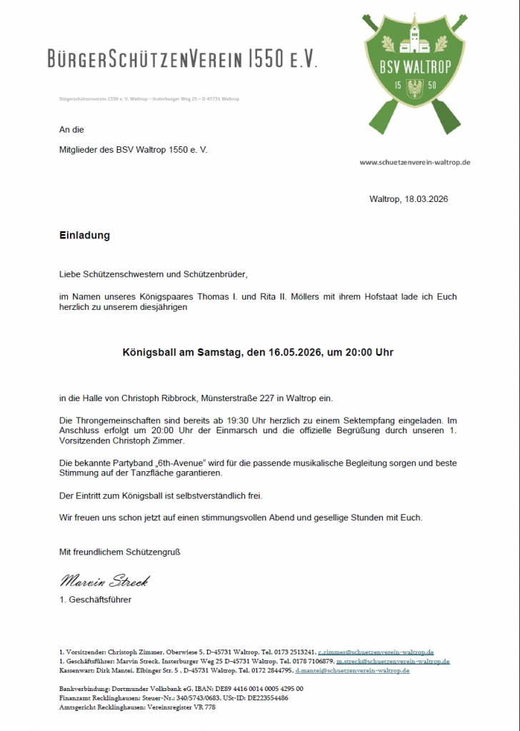 Einladung Königsball Waltrop