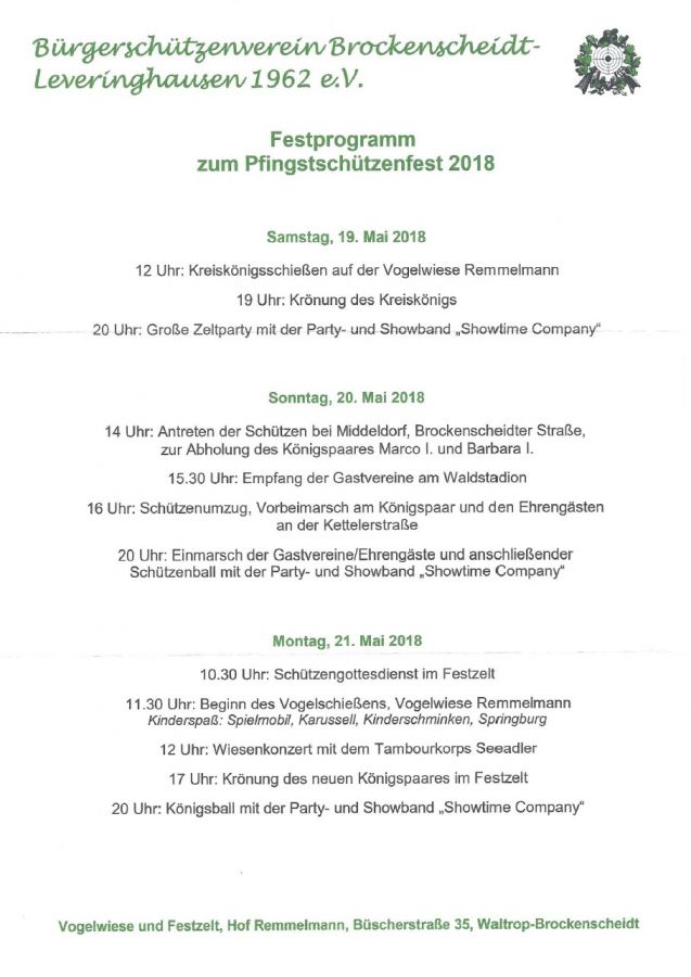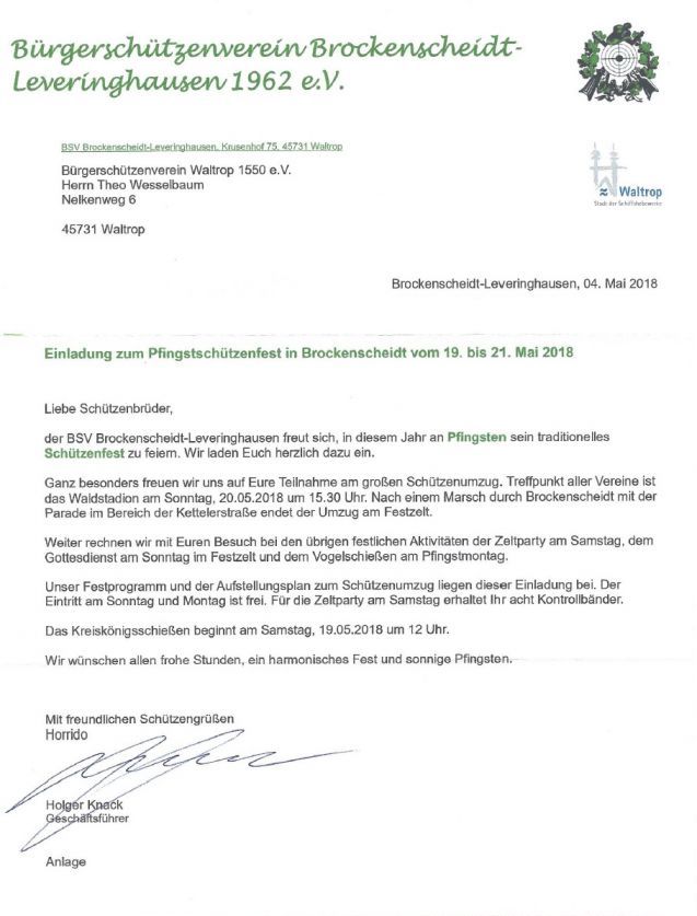 Einladung Schützenfest Brockenscheidt-Leveringhausen 2018