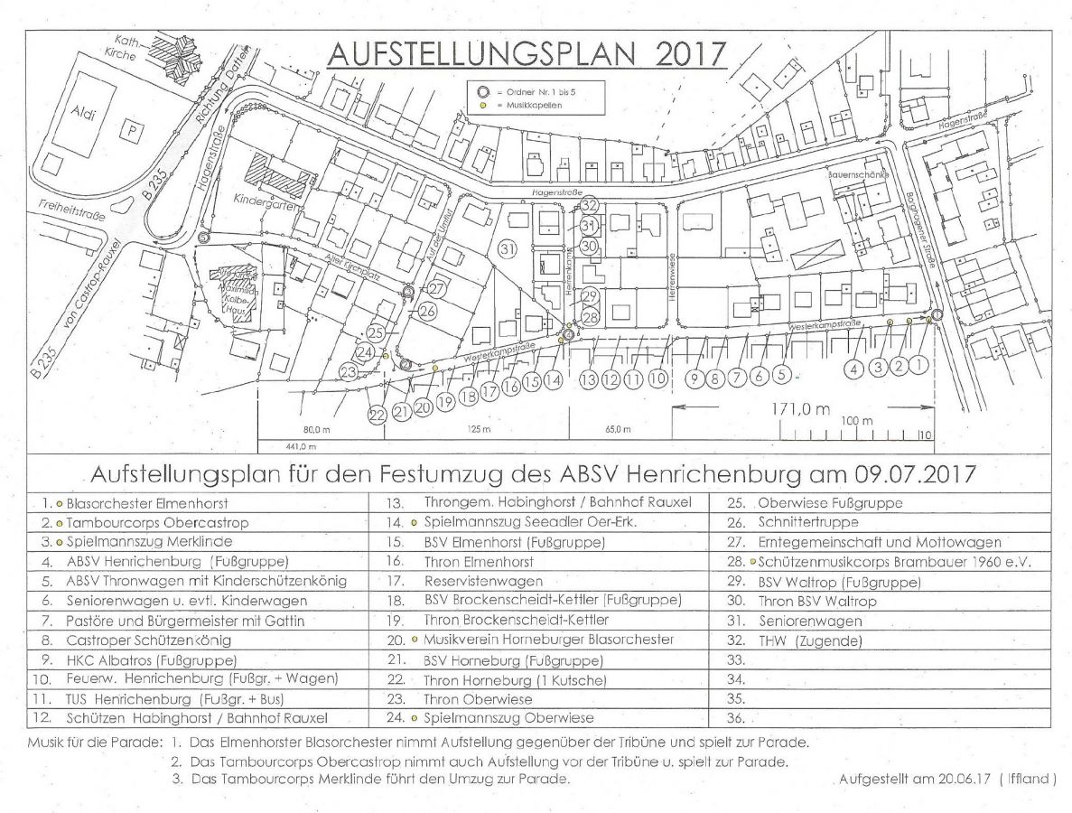 Am Sonntag, den 09.07. beginnt um 16:00 Uhr der große Festzug zum Schützenfest Henrichenburg 2017.