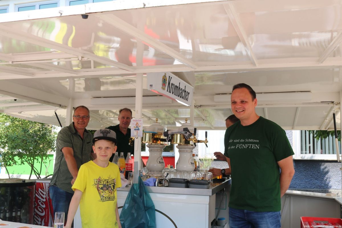 Auf dem Hof der Barbaraschule angekommen fand der Schlusssegen statt, bevor sich jeder bei gekühlten Getränken und Grillwurst stärken konnte. Bierwagen und einige aufgebaute Pavillons spendeten dabei wohltuenden Schatten.