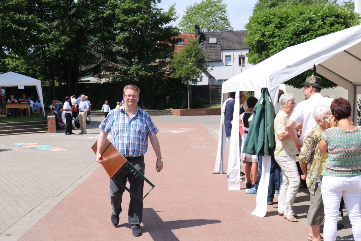 Bedingt durch das Lutherjahr fand in diesem Jahr kein Pfarrfest im Anschluss an die Prozession statt, sondern ein ökumenisches Gemeindefest vergangenes Wochenende am Lehnemannshof. Dadurch und vermutlich durch das warme Wetter verließen leider viele Besucher recht schnell den Ausklang auf dem Hof der Barbaraschule. Der Stimmung unter den verbliebenen Gästen schadete dies jedoch nicht und so klang die Veranstaltung am Nachmittag rechtzeitig vor den Regenschauern aus.