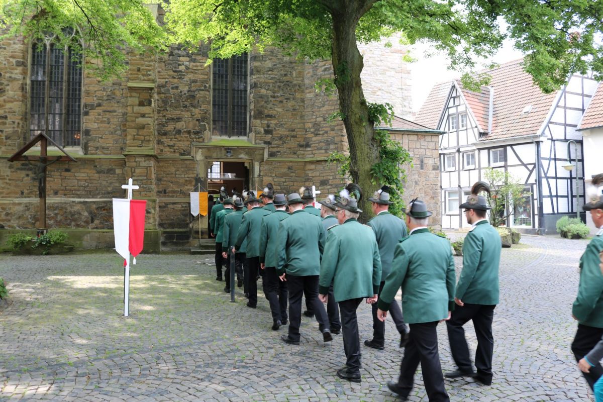 Die Kirchengemeinde St. Peter hatte zur alljährlichen Prozession mit anschließendem Pfarrfest eingeladen. Der BSV Waltrop traf sich dazu gestern um 10:00 Uhr mit einer Abordnung von ca. 30 Schützen auf dem Parkplatz an der Kleingartenanlage.