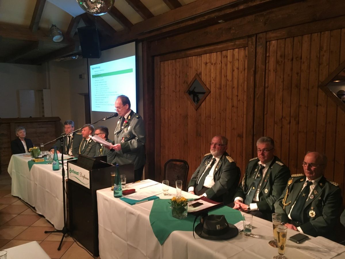 Geschäftsführer Theo Wesselbaum verlas seinen Jahresbericht – in Kurzform – und blickte dabei auf viele Veranstaltungen und Ereignisse des Jahres 2016 zurück. Großer Höhepunkt dabei war natürlich unser eigenes Schützenfest. Der Jahresbericht von Theo steht weiter unten als PDF-Download zur Verfügung, sowohl die verlesene Kurz- als auch die komplette Langversion.