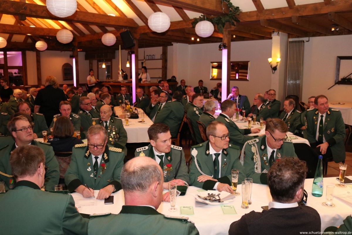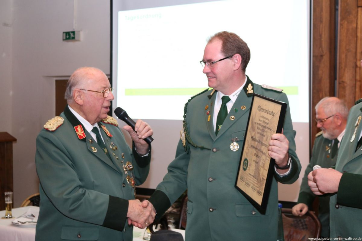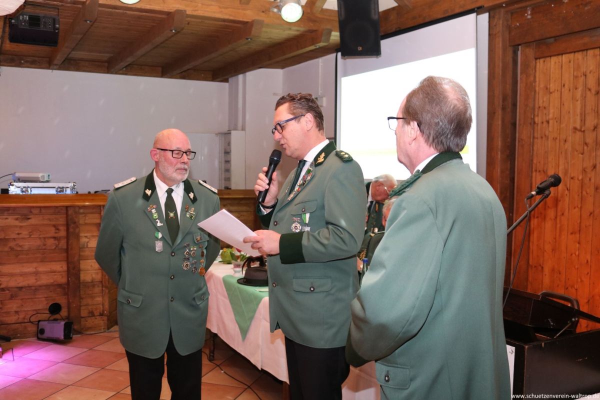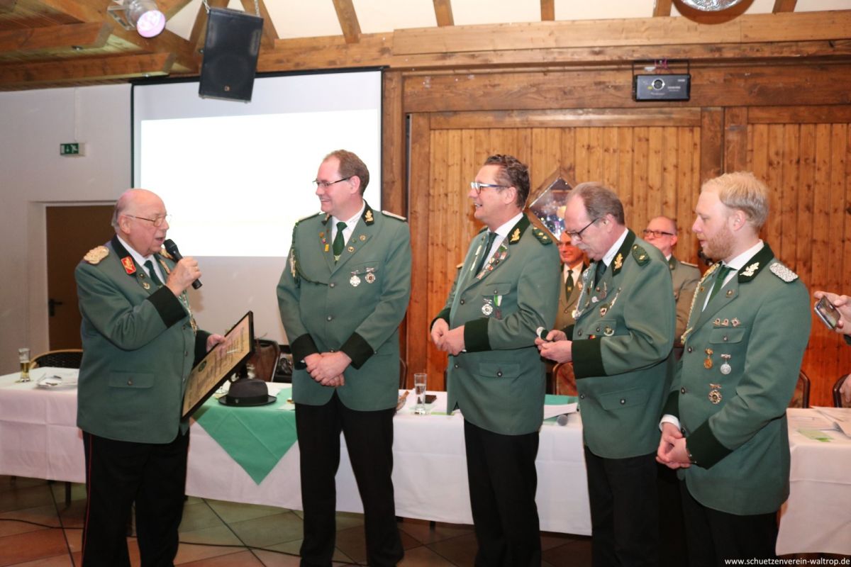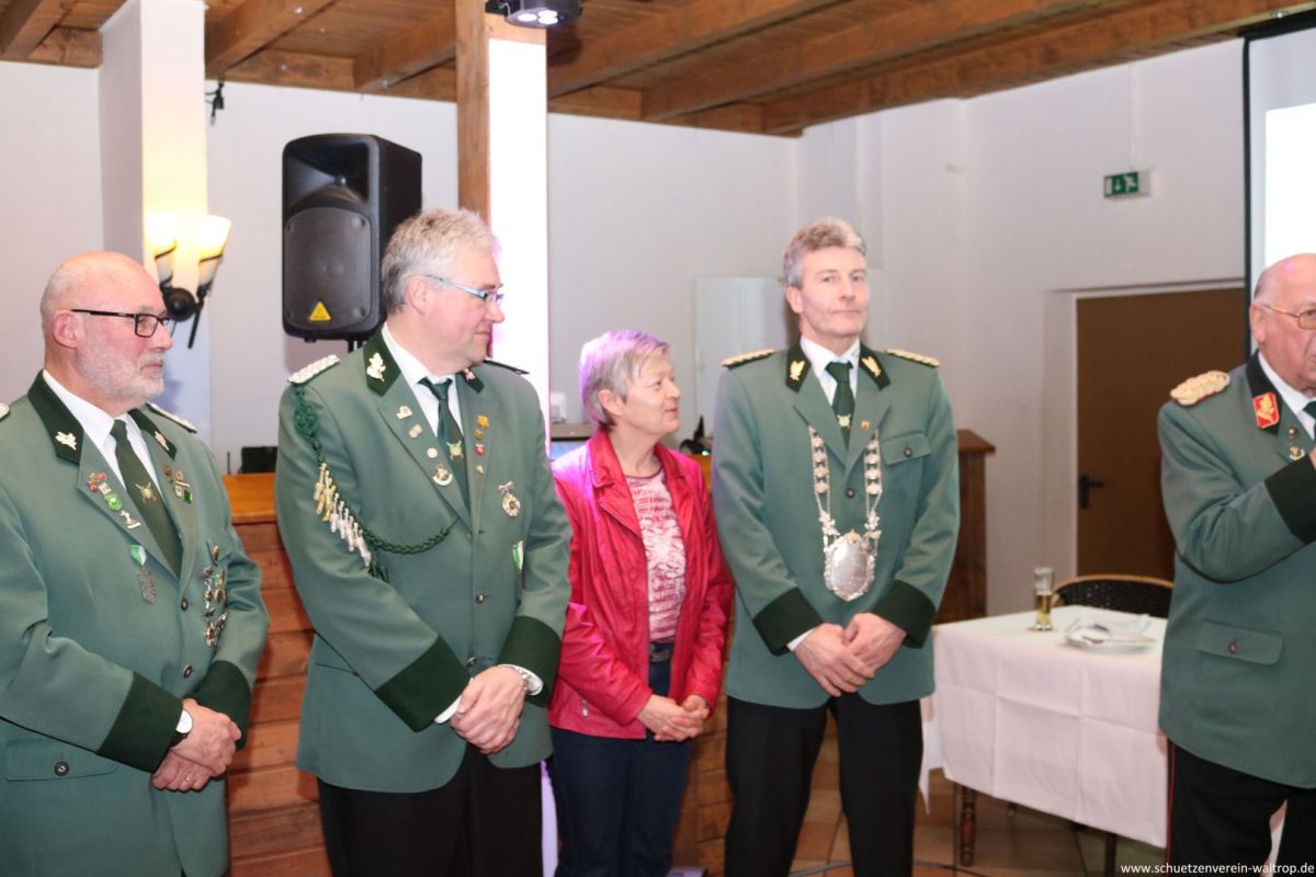 Von den Geehrten waren lediglich Frank Busch und Hubert Köster anwesend, die verhinderten Schützen bekommen ihre Jubiläumsnadeln nachträglich durch ihre Hauptleute überreicht.