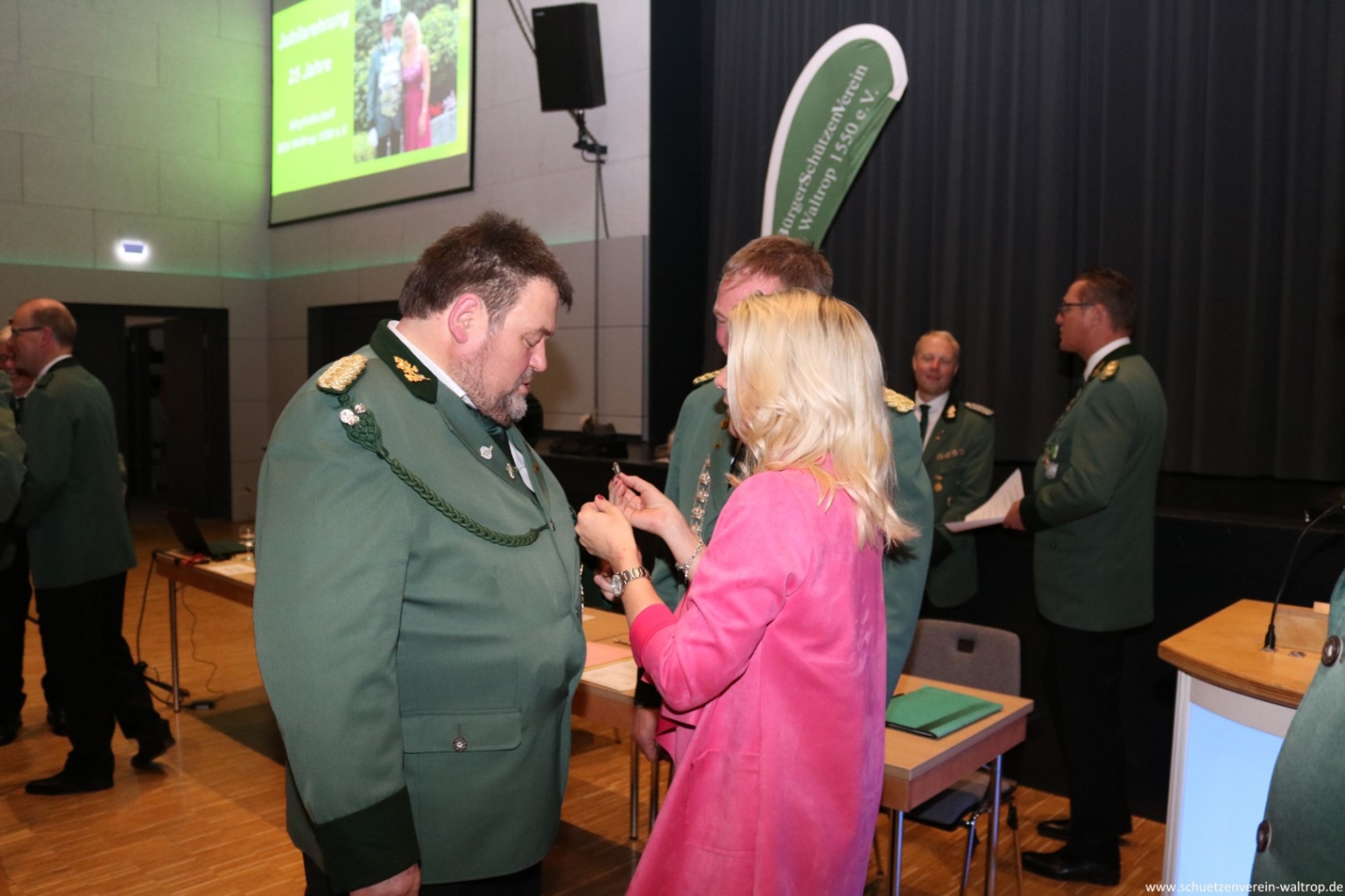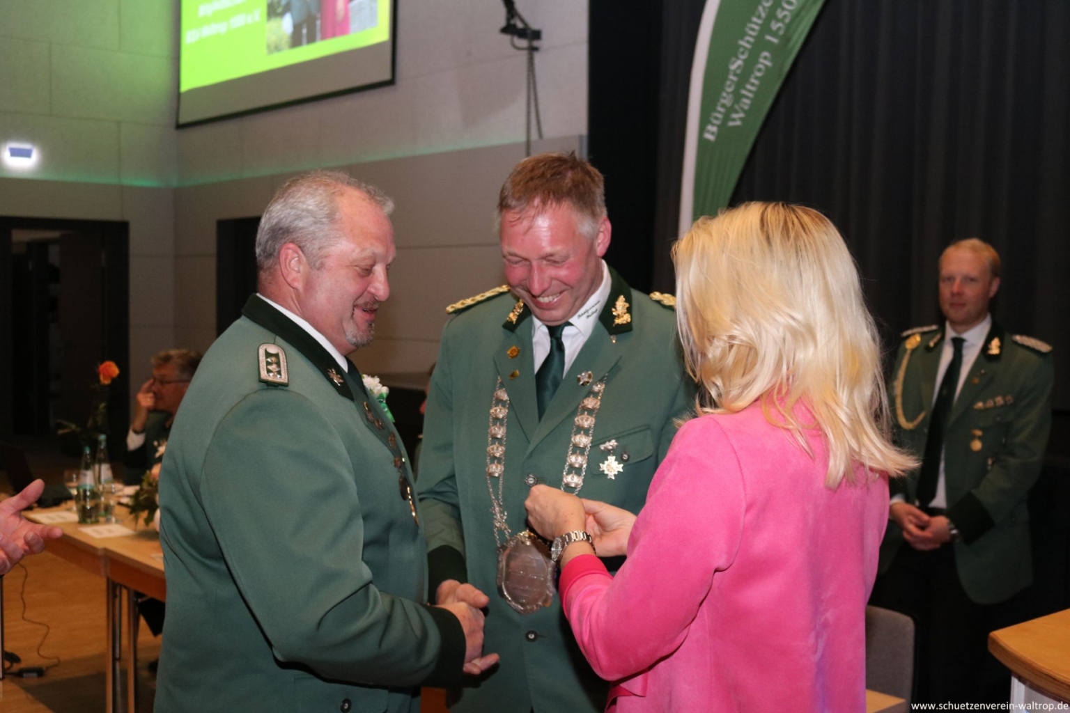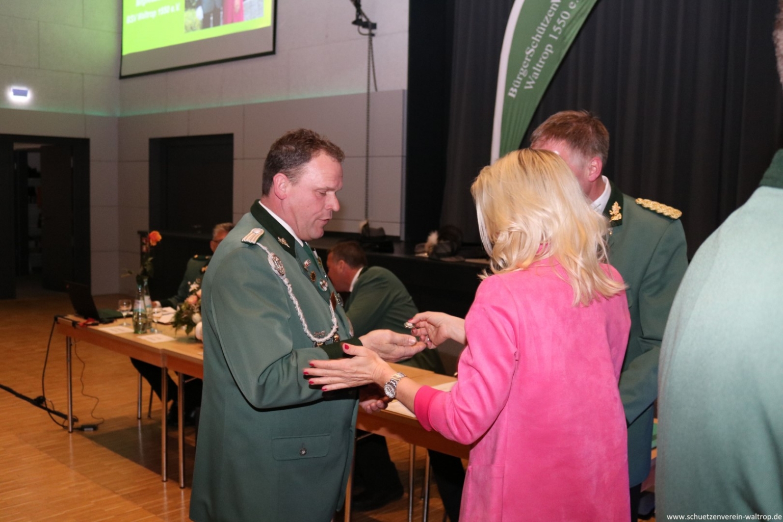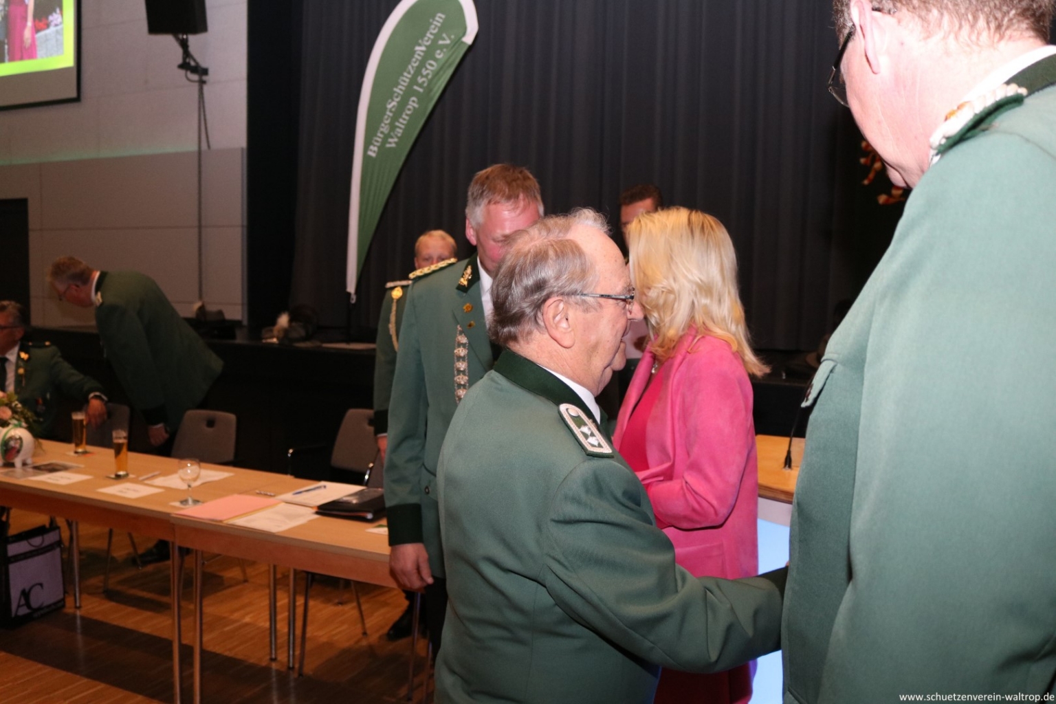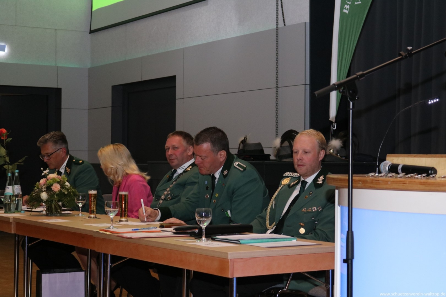 Erstmals seit längerer Umbaupause konnte die diesjährige Jahreshauptversammlung wieder in der Waltroper Stadthalle stattfinden. 152 Schützen folgten der Einladung und fanden sich pünktlich um 20.00 Uhr am Ort des Geschehens ein.