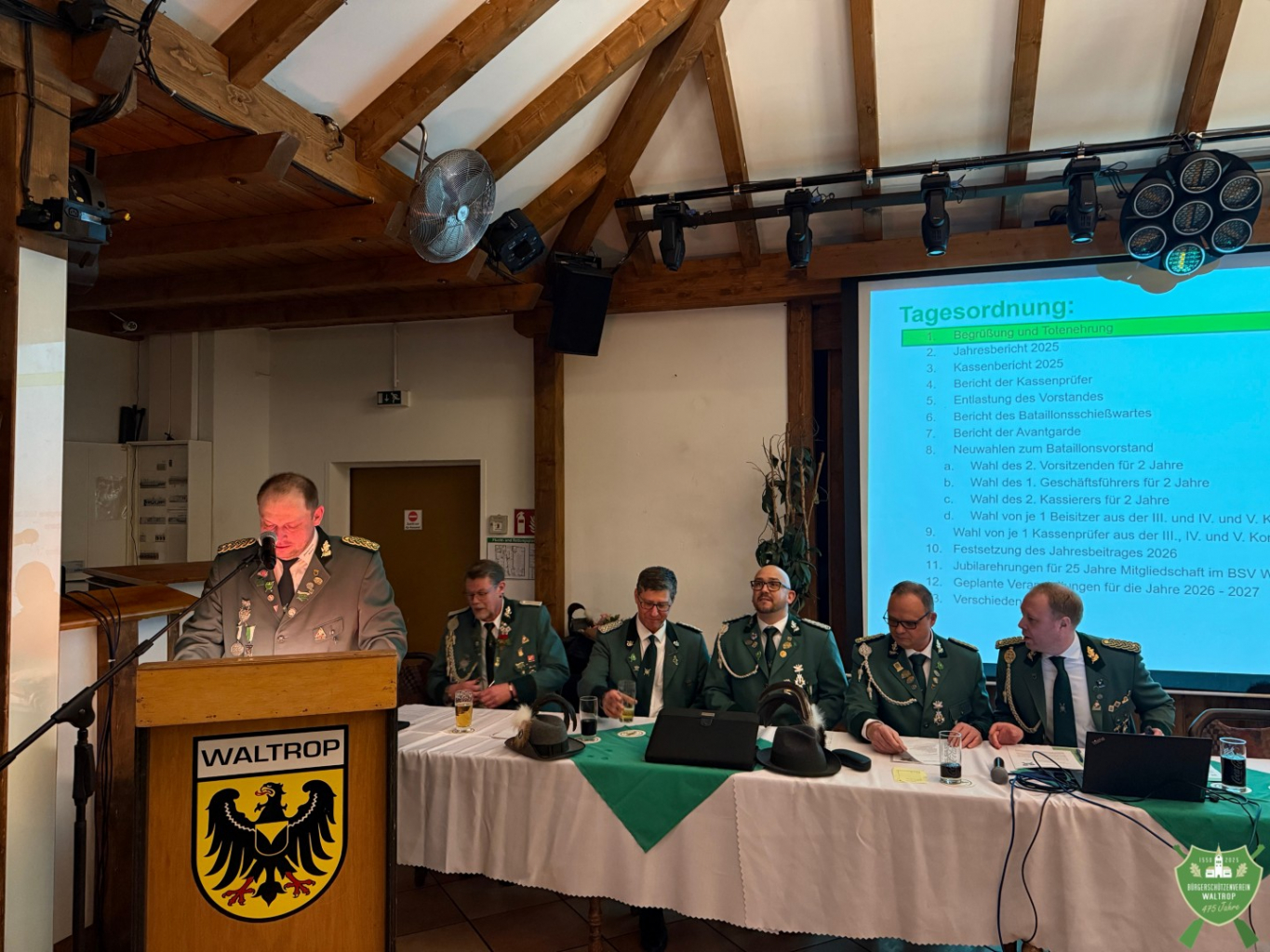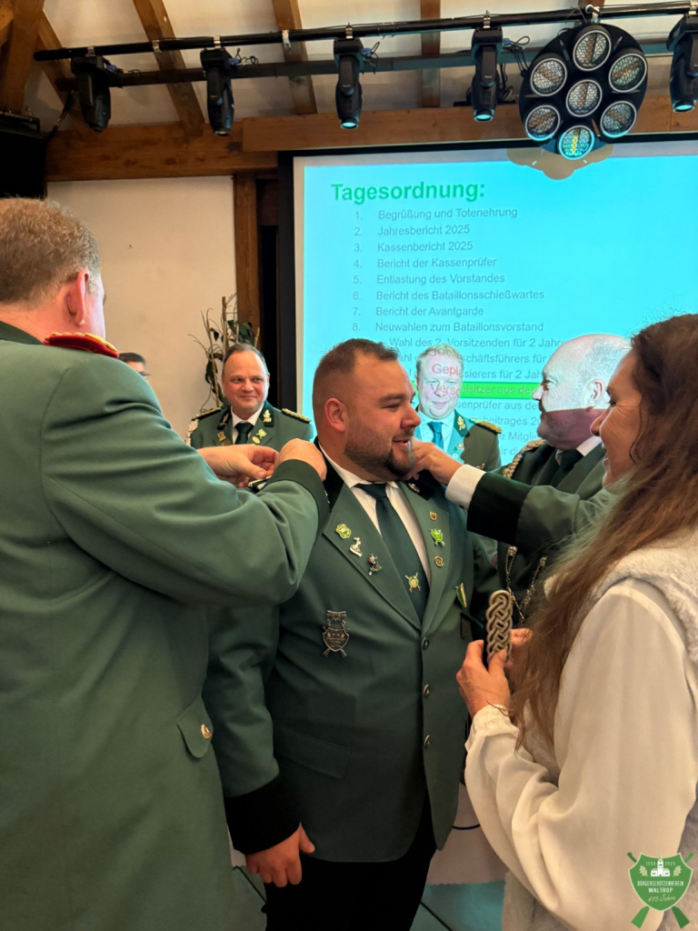 Der Bataillonsvorstand schaute sich lange nach einem geeigneten Nachfolger um und präsentierte schließlich Sören Backhove als Kandidaten. Weitere Vorschläge aus der Versammlung gab es nicht. Im Gegenteil, Sören wurde einstimmig zum neuen stellvertretenden Vorsitzenden gewählt. Herzlichen Glückwunsch!