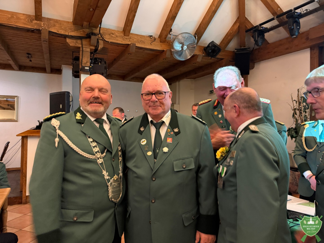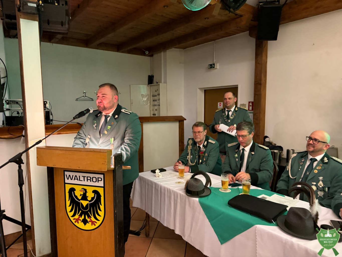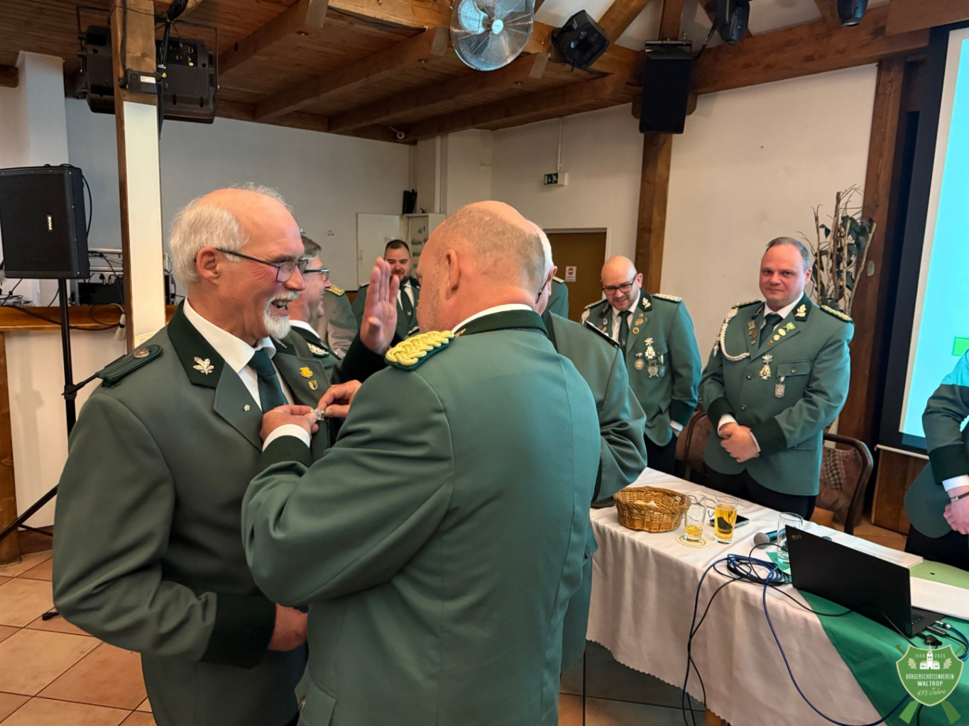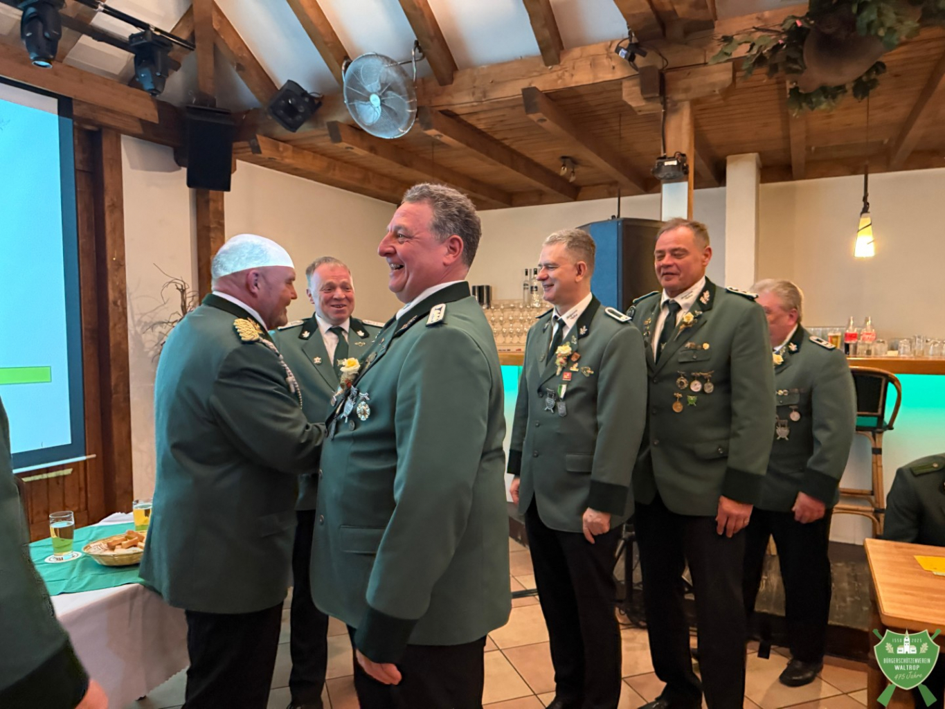 Es folgten Ehrungen für 25 Jahre Mitgliedschaft im BSV Waltrop. General Matthias Brüggemann und König Thomas Möllers konnten gleich eine Vielzahl an Schützen beglückwünschen: