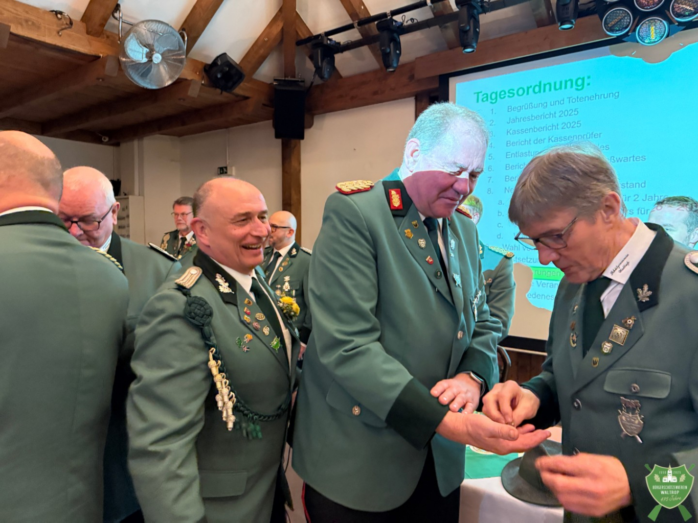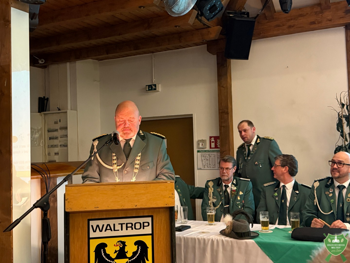 Hermann konnte an diesem Abend leider nur per Videobotschaft zu den Schützen sprechen, er weilte im schon lang geplanten Urlaub. Natürlich wird die offizielle Verabschiedung von Hermann aber noch erfolgen, nämlich auf unserem Königsball am 16.05.26.