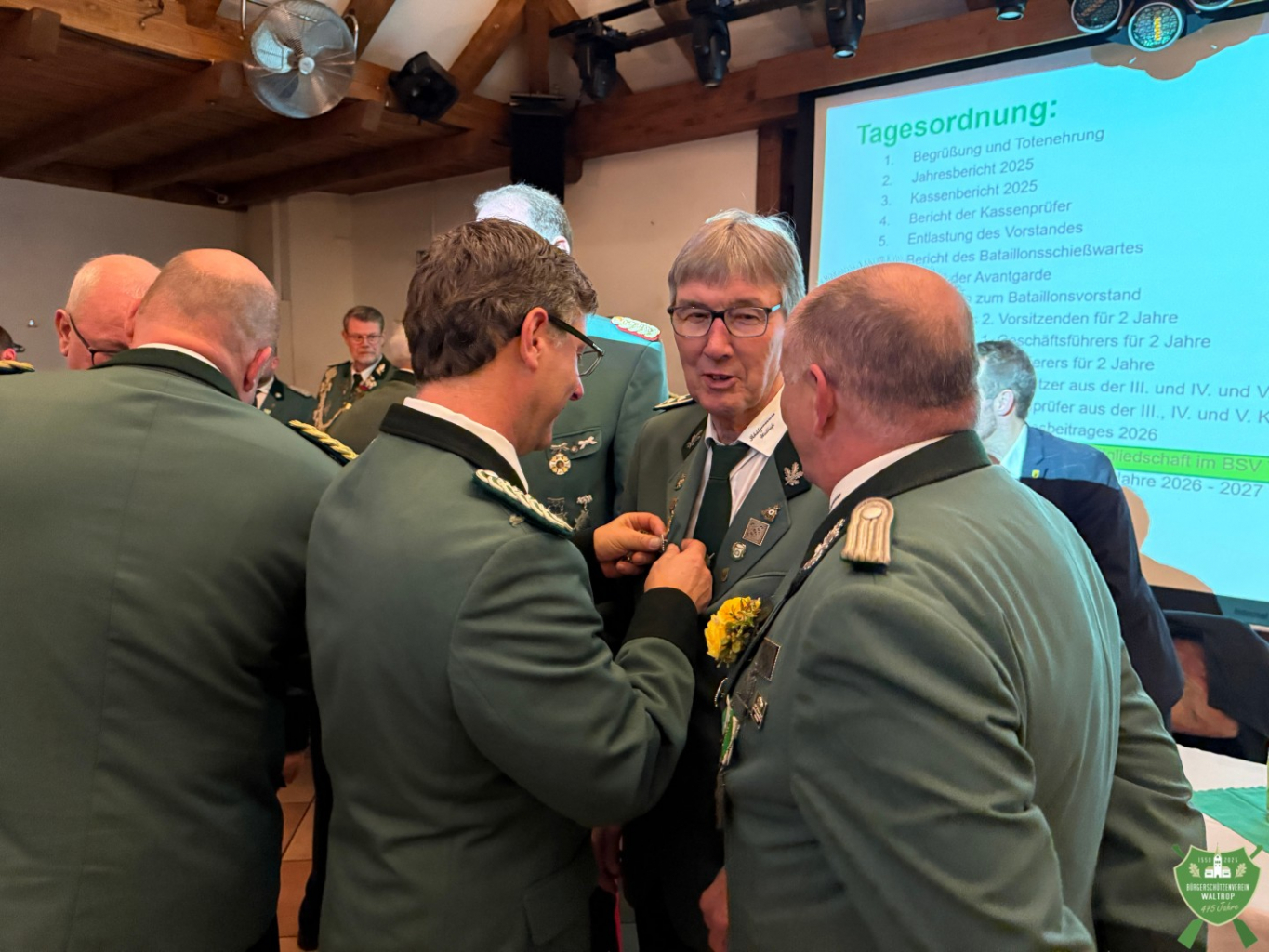 Als Beisitzer im Bataillonsvorstand wurden Olaf Kurpiers (3. Kompanie), Jochen Bruns (4. Kompanie) und Andreas Bachmann (5. Kompanie) wiedergewählt. Zu neuen Kassenprüfern des Bataillons wurden gewählt Michael Meth (3. Kompanie), Jens Ruthen (4. Kompanie) und Jens Bentzien (5. Kompanie.)