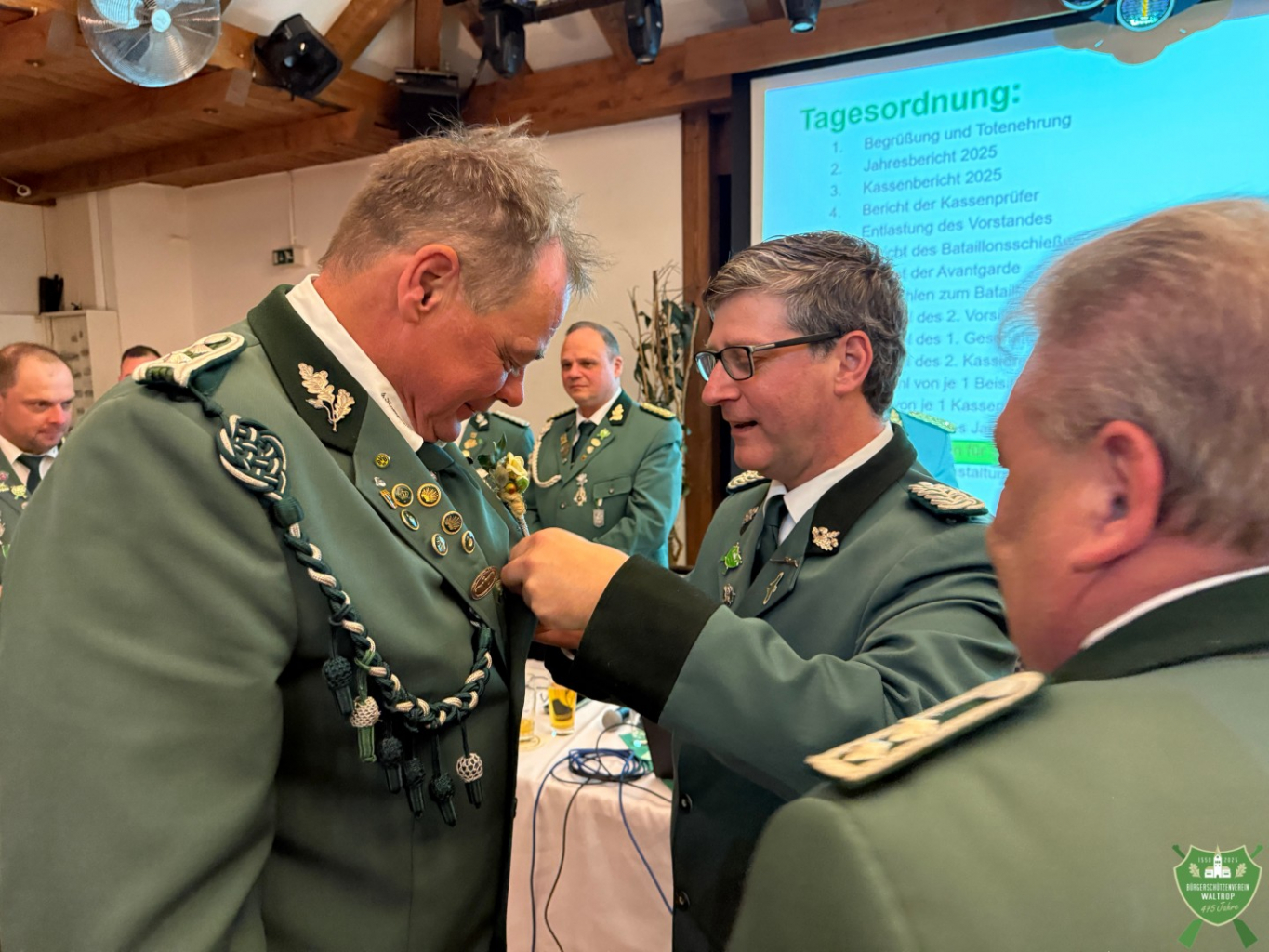 Aus besonderem Anlass wurde Georg Küper aus der 2. Kompanie auf Vorschlag der Kompanie mit dem Sonderorden des Bataillons (erste Stufe) ausgezeichnet. Da Georg leider nicht anwesend sein konnte, nahmen Hauptmann Hubert Köster und Kai Ungewitter die Auszeichnung stellvertretend entgegen und werden diese nachträglich übergeben.