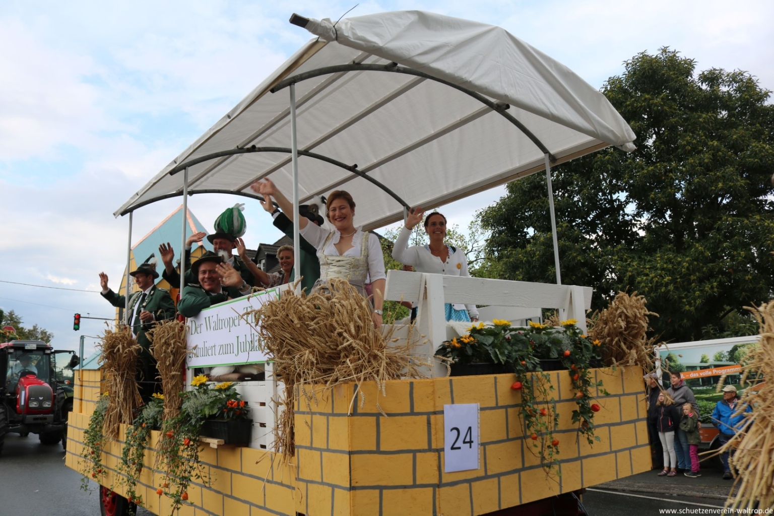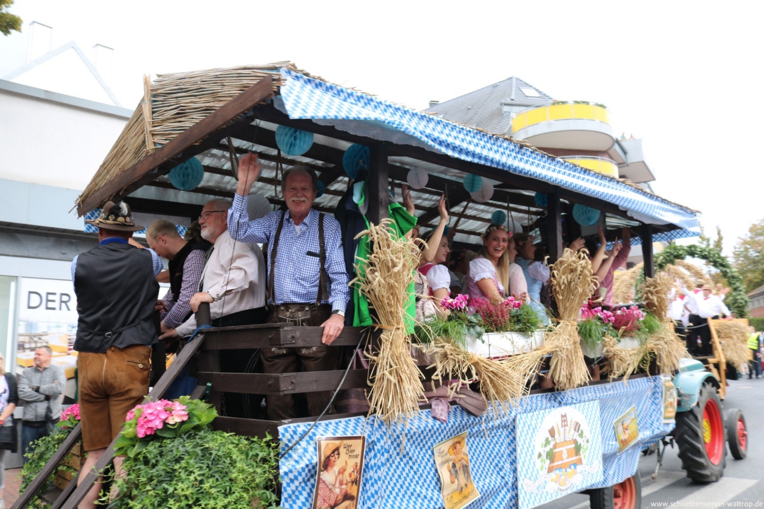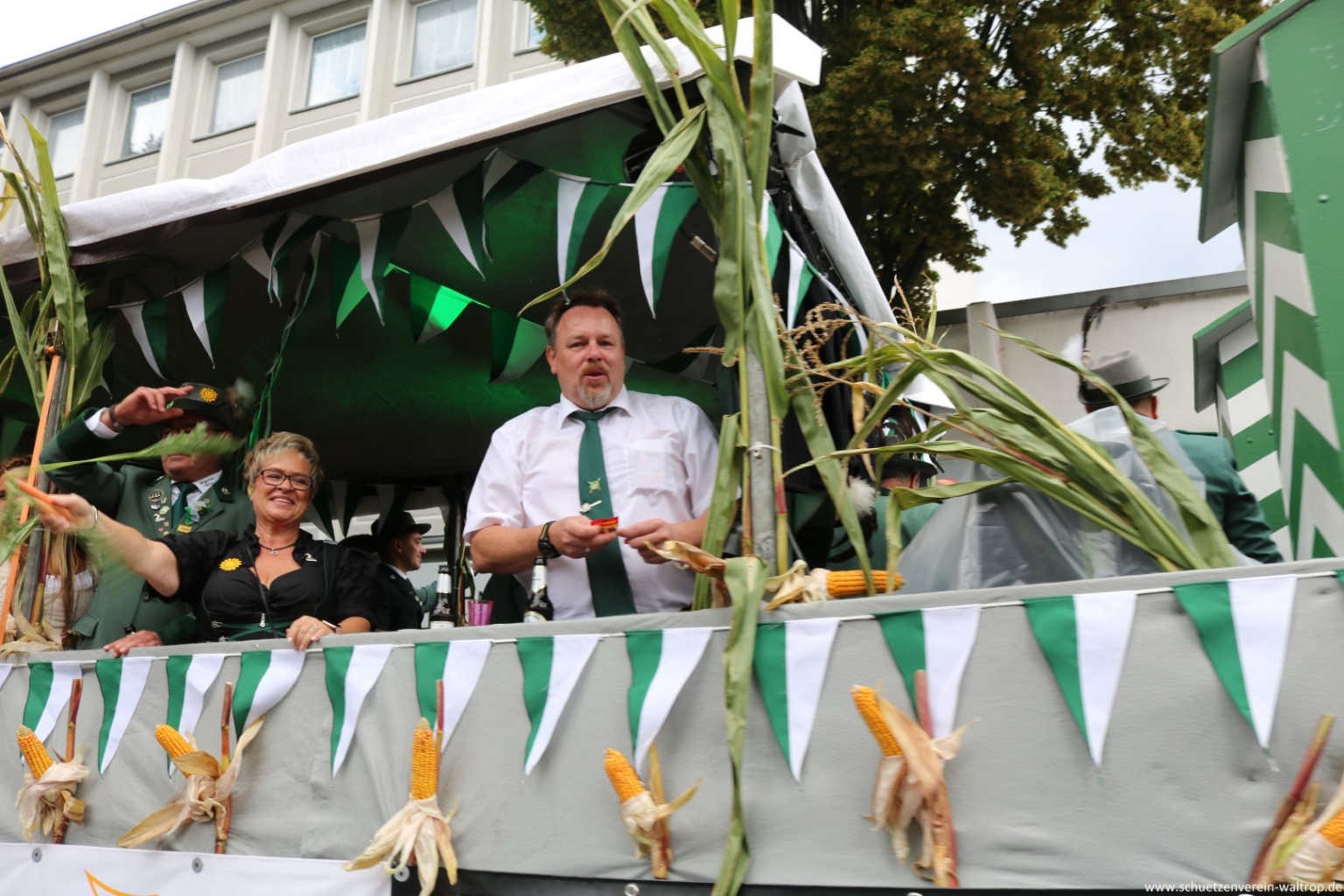 Nach und nach versammelten sich dort immer mehr kreative und liebevoll hergerichteten Festwagen. Durchweg alle Schützenvereine, das Landvolk, die Feuerwehr und viele mehr waren mit eigenen Wagen vertreten, darunter auch mehrere Wagen mit Schützen unseres BSV Waltrop.