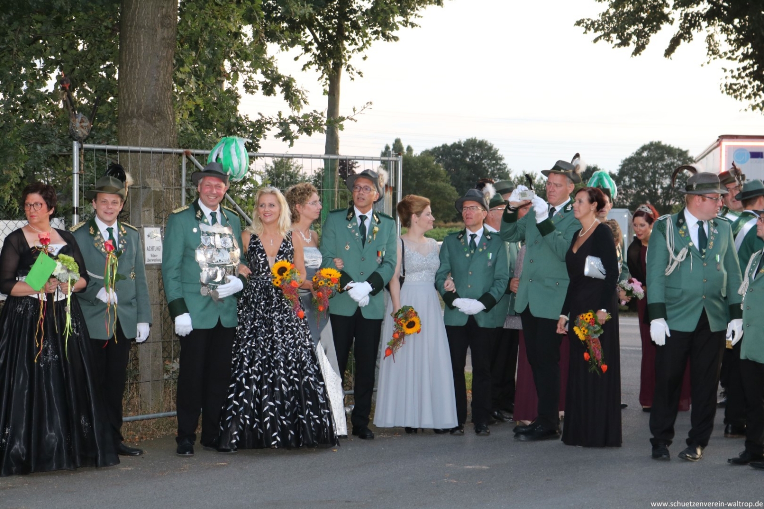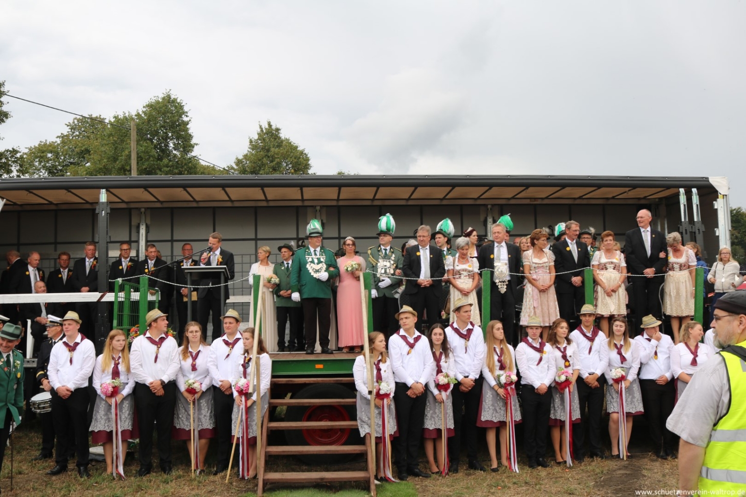 Wir kamen der Einladung natürlich sehr gerne nach und traten am Samstag mit einer Vielzahl Schützen am Platz der OGA an der Oberlipper Str. an. Zusammen mit den benachbarten Schützenvereinen marschierten wir anschließend gemeinsam über die Straße in das direkt gegenüberliegende Festzelt. Damit war der "längste Ausmarsch des Jahres" auch schon vollbracht.