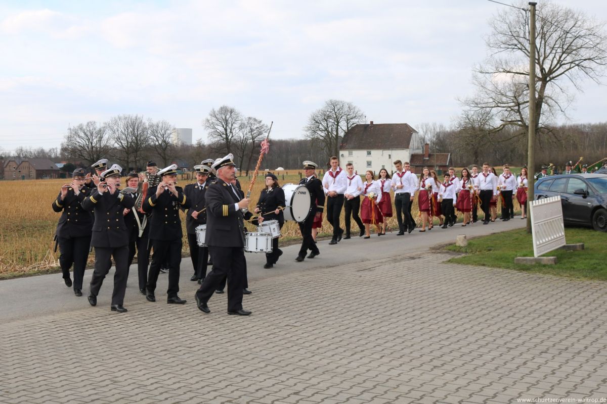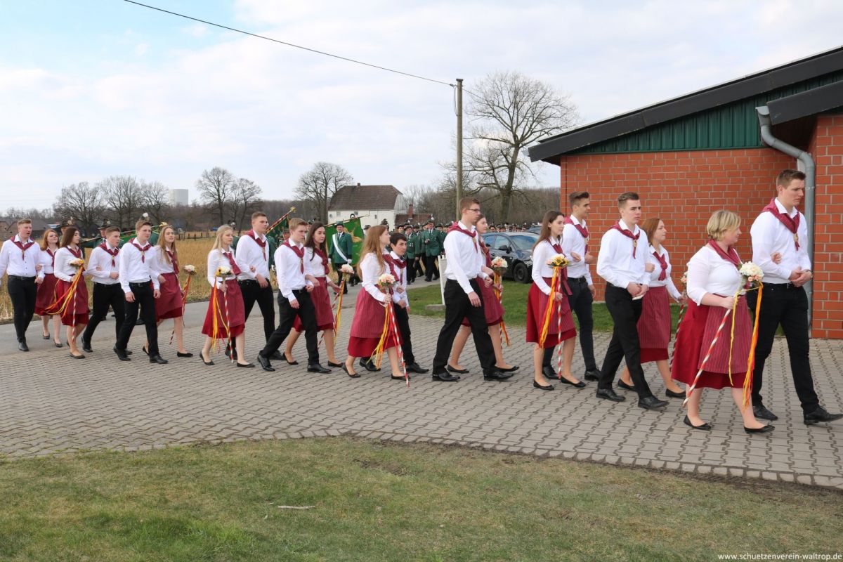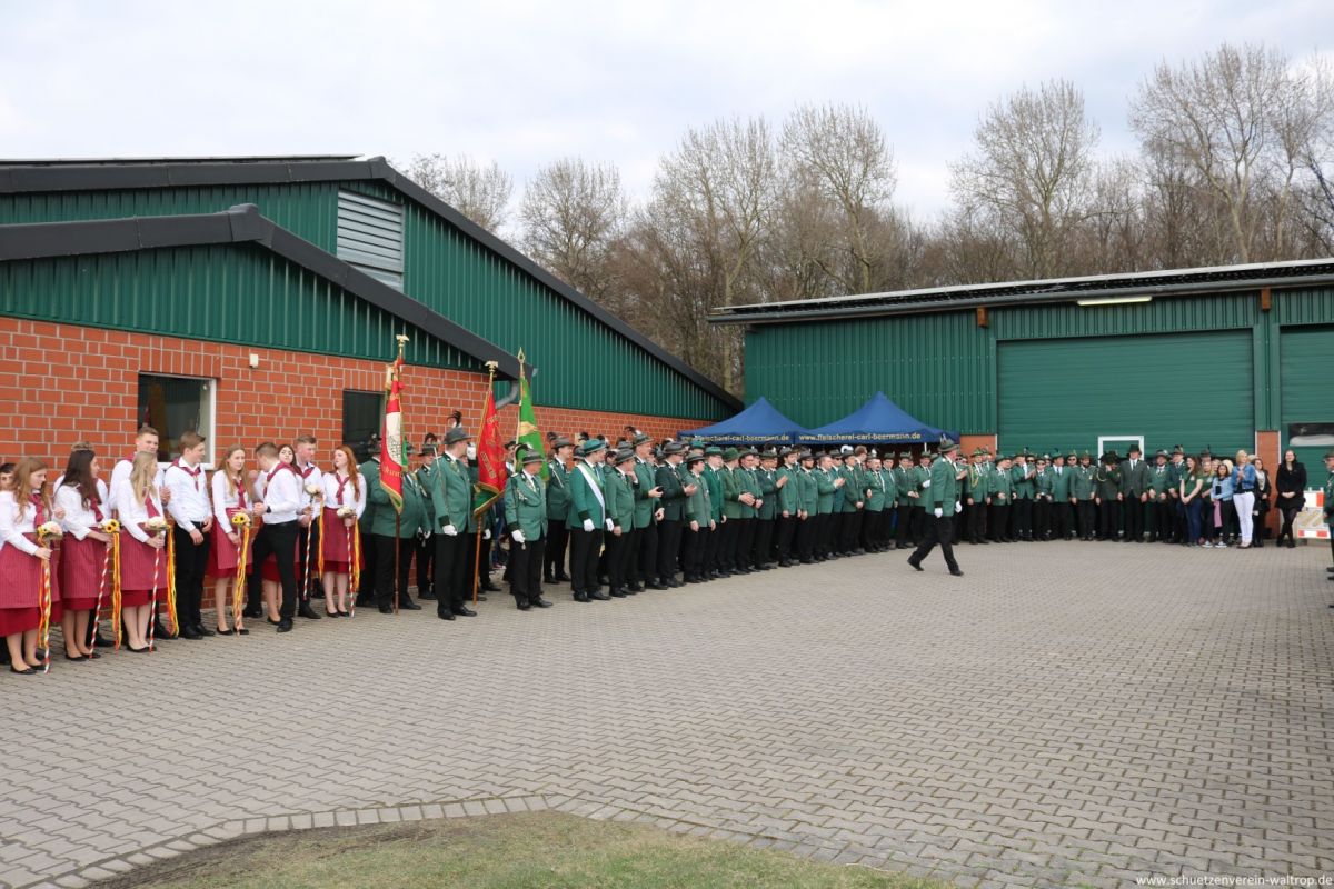 Dass die Idee eines gemeinsamen Biwaks sehr gut angenommen wurde, zeigte sich spätestens am Mittag des Veranstaltungstages, als der neue Waltroper Oberst Matthias Brüggemann über 110 Jungschützen der verschiedenen Vereine vor dem „Kö14“ begrüßen konnte.