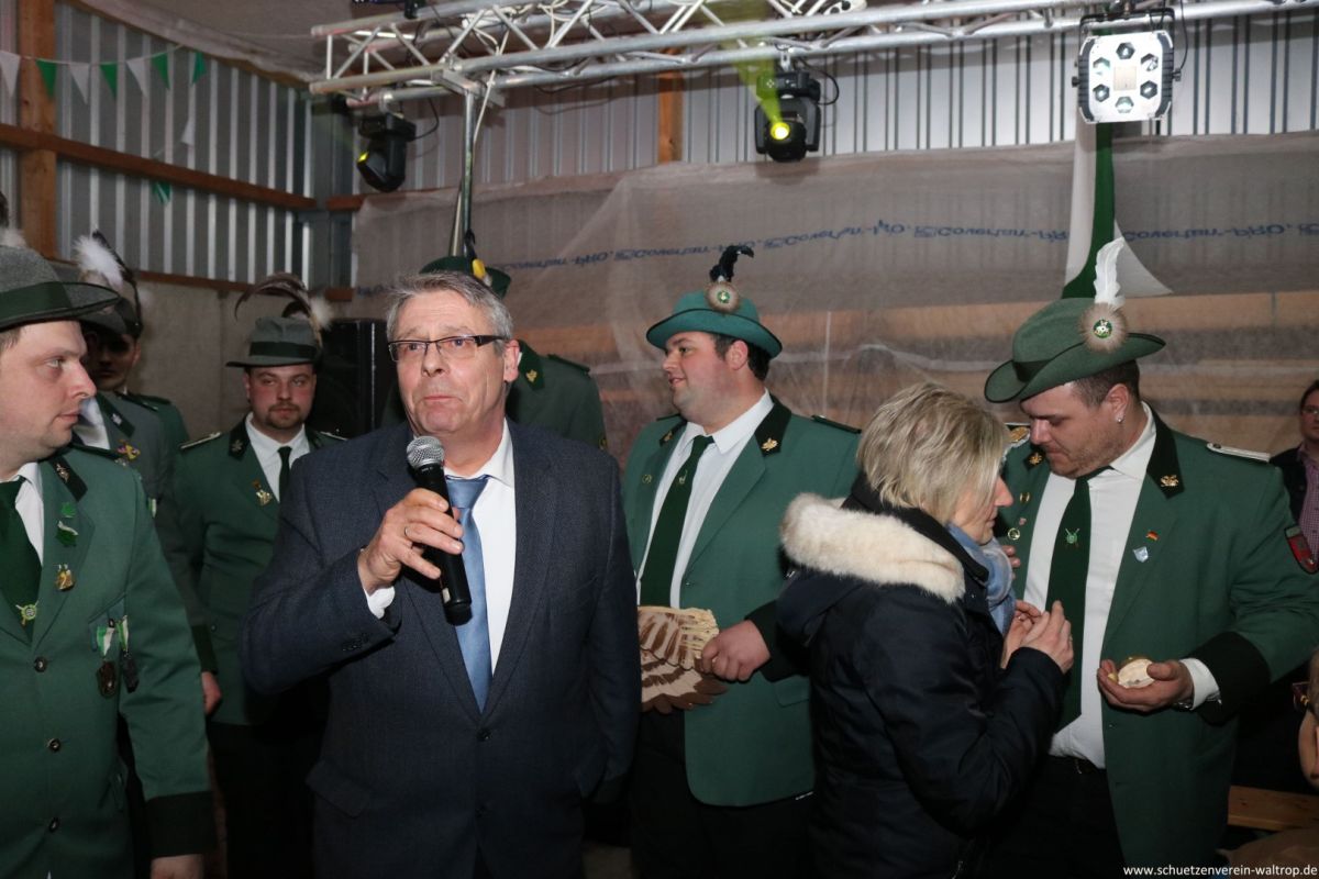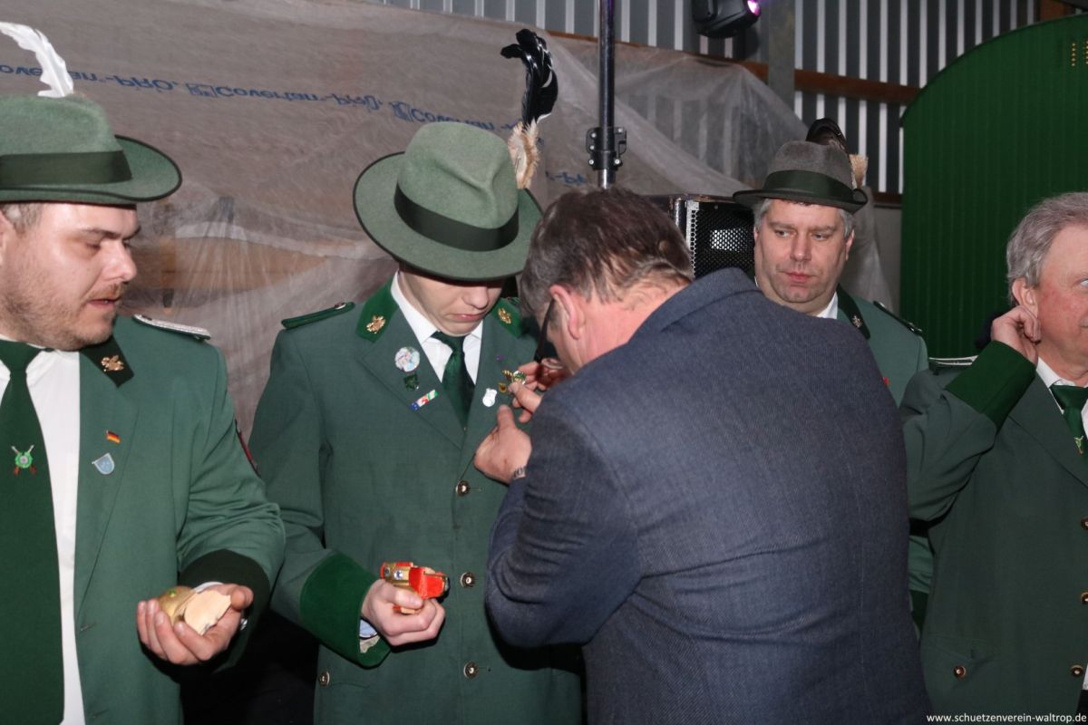 Zur Krönung am Abend trat Ulrich Meick als Stellvertreter für Frau Bürgermeisterin Moenikes nach vorne und überreichte dem neuen Königspaar Kette und Krone. Die anderen Insignienträger wurden natürlich ebenfalls geehrt.