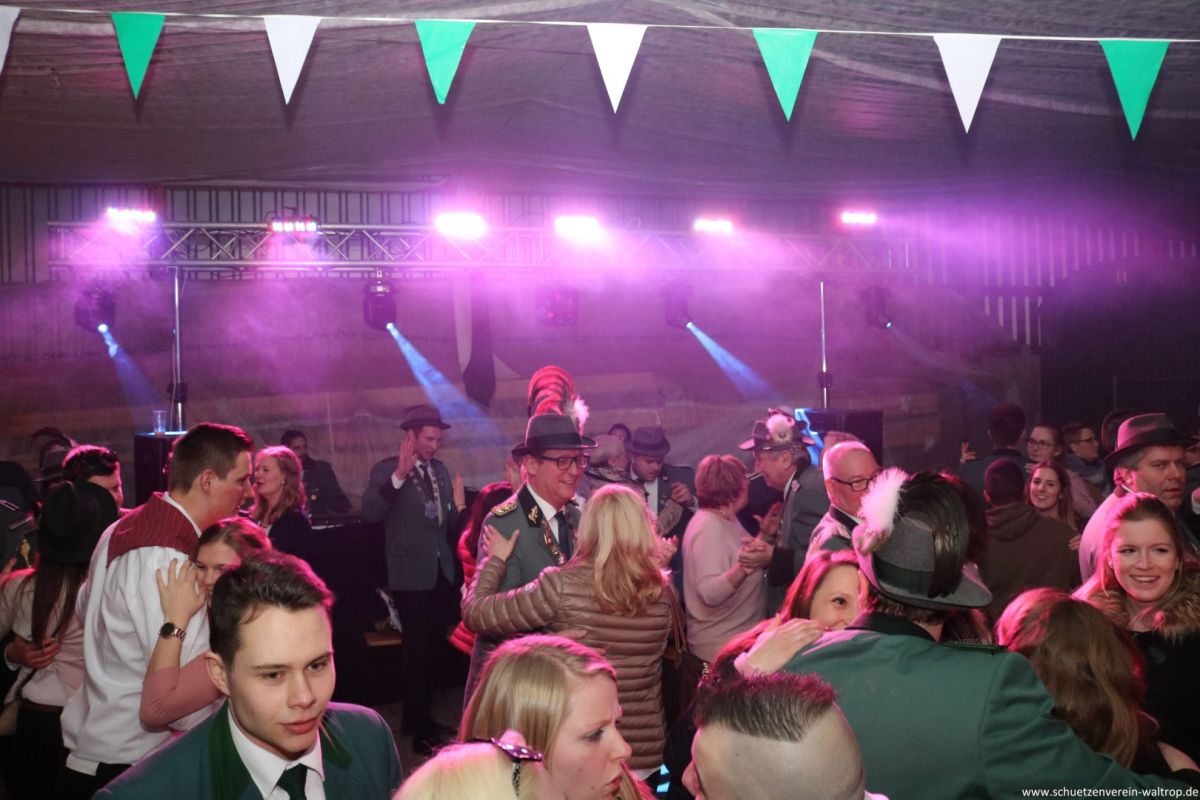 Mit dem Eröffnungstanz wurde der stimmungsvolle Teil des Abends in der mittlerweile rappelvollen Halle eingeläutet. Ein DJ sorgte von da an mit Partyhits und Mallorca-Krachern für eine dauerhaft volle Tanzfläche und super Stimmung unter Schützen, Landjugend und vielen weiteren Gästen. Die folgende Party endete erst in den frühen Morgenstunden.