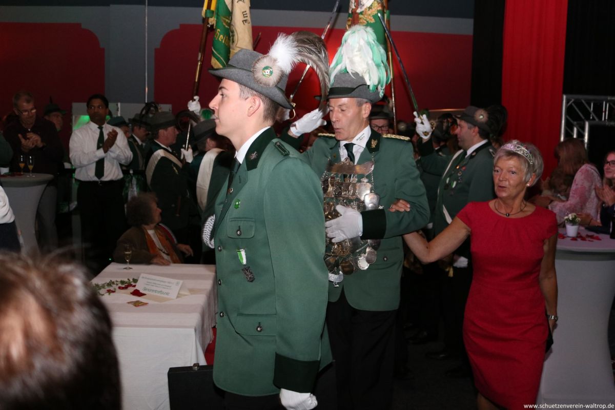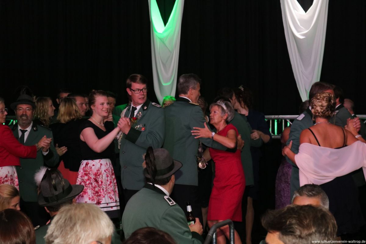 Bevor es zum Eröffnungstanz überging wurde unter großem Applaus noch der langjährige Fahnenoffizier Alex Dröge aus seinem Amt verabschiedet. Anschließend wurde die Theater-Bühne zur Tanzfläche umfunktioniert und mit dem ersten Tanz der Throngemeinschaften der gemütliche Teil des abends eröffnet. DJ Max Reimann sorgte dabei für die passende musikalische Untermalung. Bis tief in die Nacht wurde dann zu eine Mix aus aktuellen Hits, Schlagern und klassischen Stimmungsliedern gefeiert.