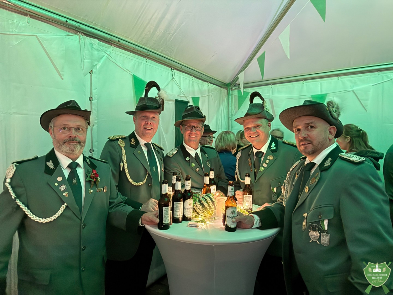 Auf dem Hof mit wundervoll festlich geschmückter Scheune samt Zelten versammelten sich daher nicht nur das Königspaar aus Brockenscheidt-Leveringhausen samt Schützen, sondern auch alle geladenen Gastvereine aus der Nachbarschaft. Mit dabei waren natürlich auch unser Königspaar Thomas I. mit Königin Rita II. samt Hofstaat, eine Abordnung des Bataillonsvorstandes und zahlreiche Waltroper Schützen.