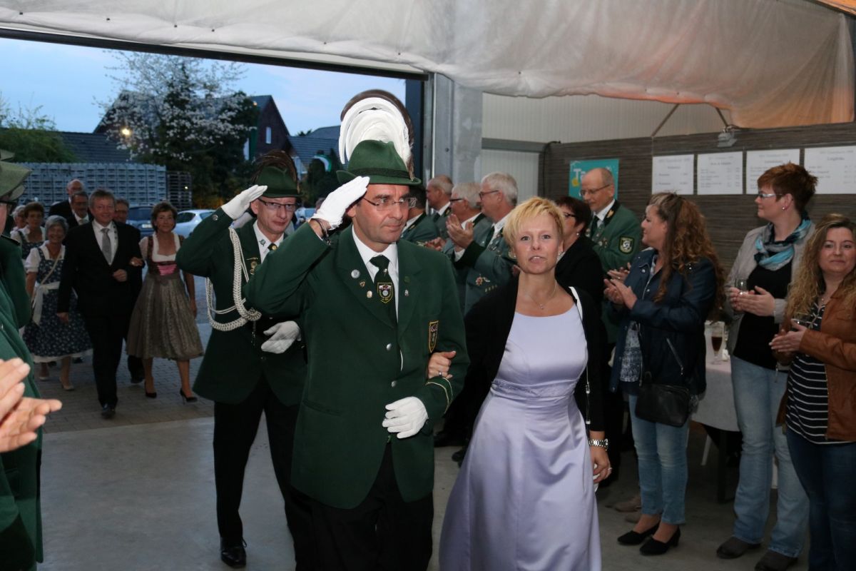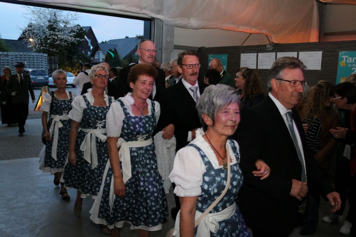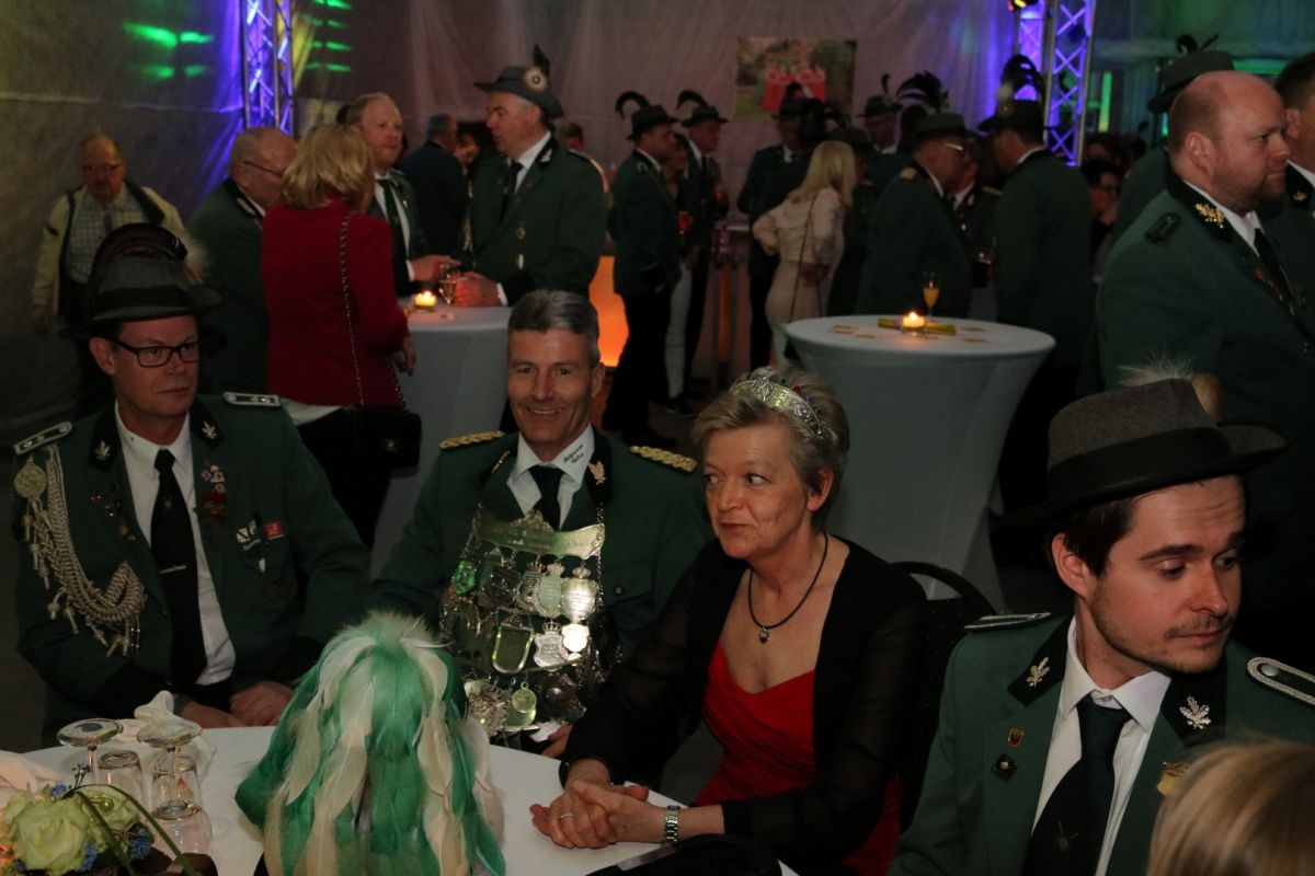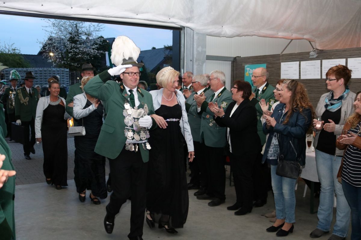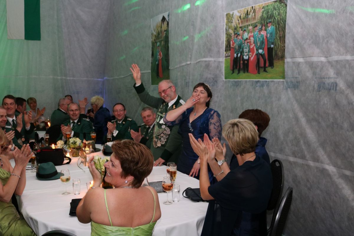 König Bernhard IV und Königin Rita I Sißmann hatten zunächst zu einem kleinen Sektempfang geladen, ehe gegen 20 Uhr der offizielle Einmarsch aller befreundeten Vereine folgte. Natürlich war auch unser amtierendes Königspaar Winfried und Elisabeth Schwerdt samt Hofstaat vertreten.