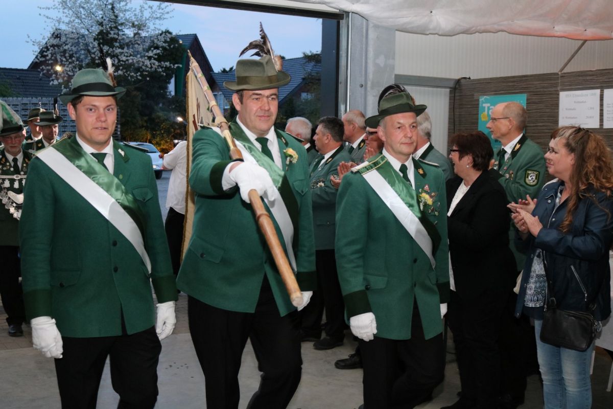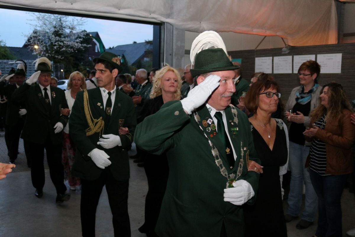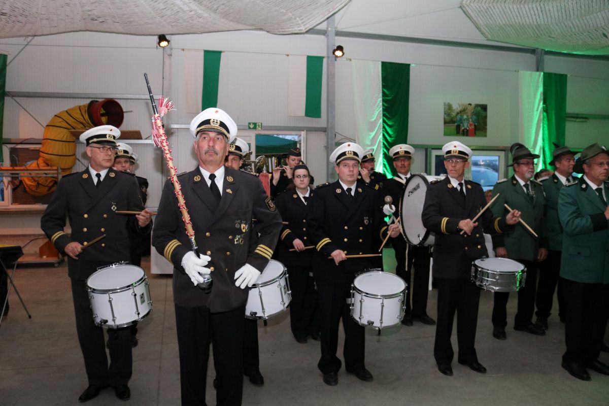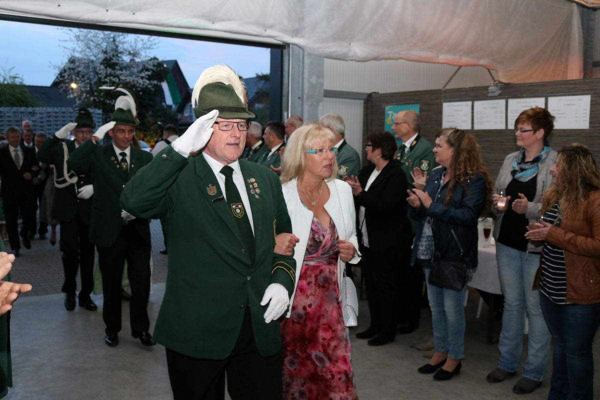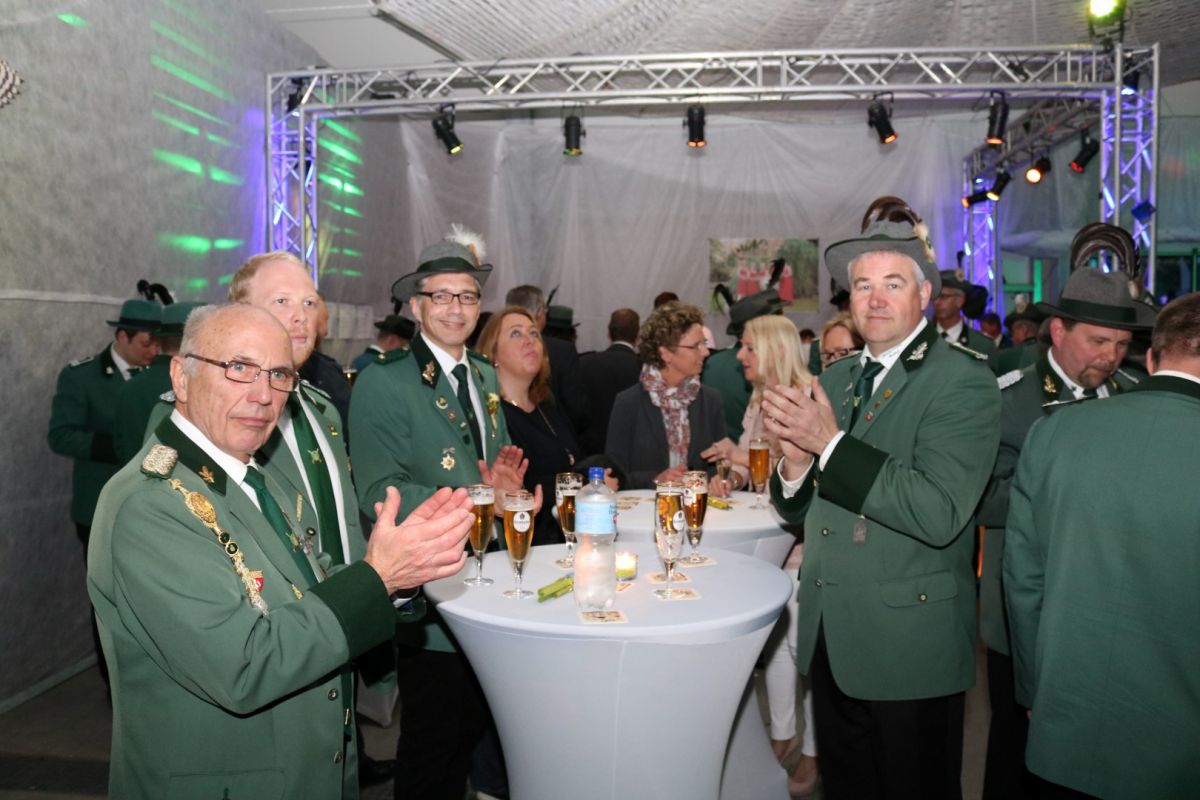 König Bernhard IV und Königin Rita I Sißmann hatten zunächst zu einem kleinen Sektempfang geladen, ehe gegen 20 Uhr der offizielle Einmarsch aller befreundeten Vereine folgte. Natürlich war auch unser amtierendes Königspaar Winfried und Elisabeth Schwerdt samt Hofstaat vertreten.