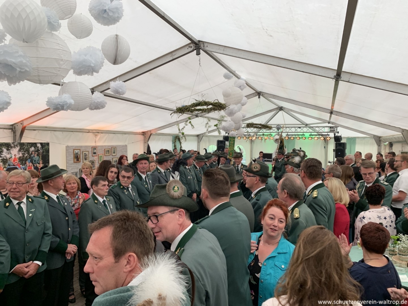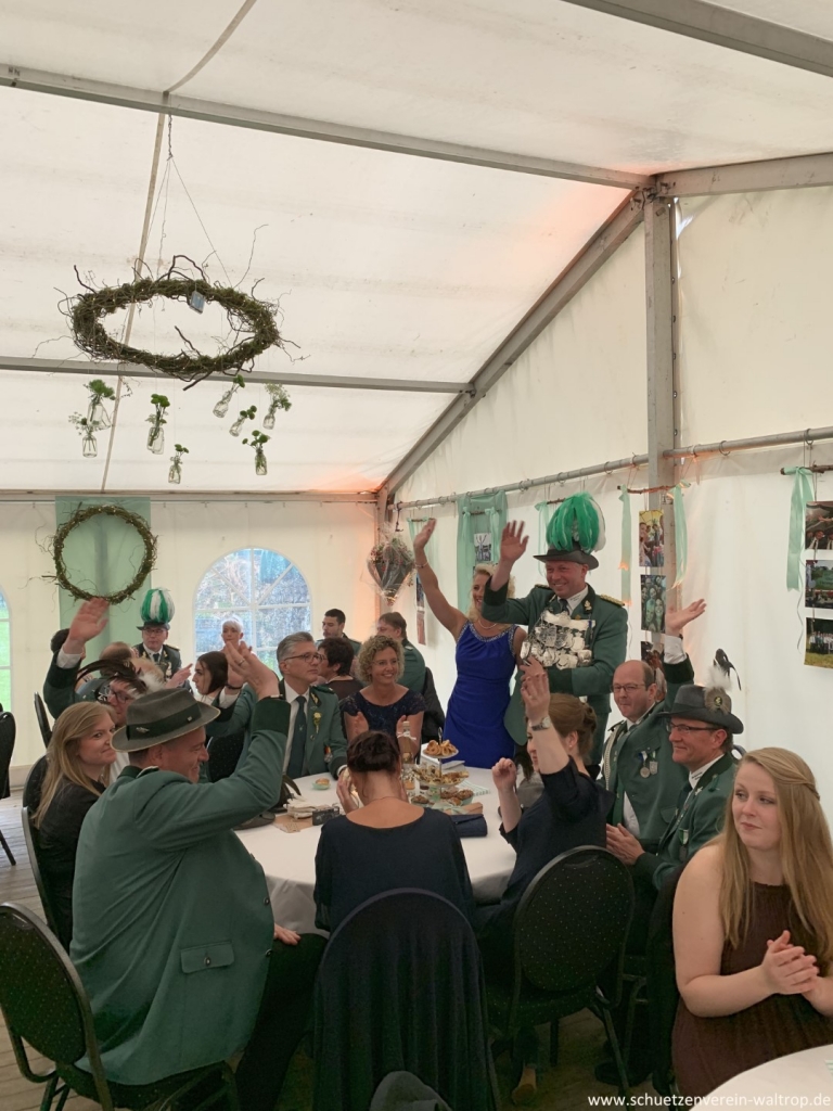 Viele Gäste aller befreundeten Vereine folgten der Einladung von König David I. und seiner Königin Inga I. zu ihrem Königsball am vergangenen Samstag. Unter den Gästen war natürlich auch unser Königspaar Hubert I. Köster mit Königin Anja I. Kuhnert und Hofstaat. Dazu hatten auch viele weitere Waltroper Schützen den Weg nach Oberwiese zum Hebewerk auf den Hof Dickhöfer gefunden. Gefeiert wurde dort im toll dekorierten Zelt.