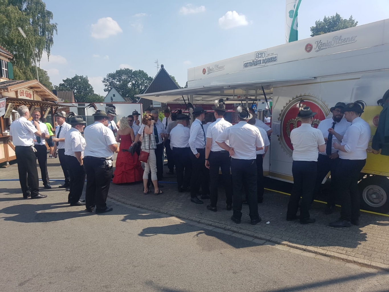 Gegen Mittag machten sich die Mitfahrer nach einer ersten Stärkung im Garten von Dieter Beermann mit einem Bus auf den gemeinsamen Weg. In Südlohn erwartete alle wieder ein anstrengender, aber auch sehr schöner Schützenfest-Tag. Zurück ging es erst am späten Abend.