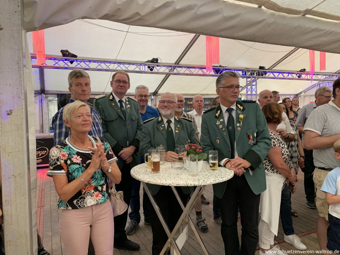Bevor Bürgermeisterin Nicole Moenikes die Ehrung vornahm hielt Jörg "Brokken" Buxel noch die Laudatio und erntete dafür zwischenzeitlich immer wieder Applaus. Natürlich war auch eine Abordnung des Bataillonsvorstandes mit amtierendem Königspaar vor Ort, um Detlef Pourie herzlich zu gratulieren.