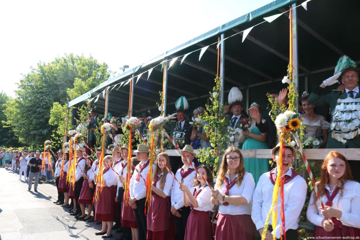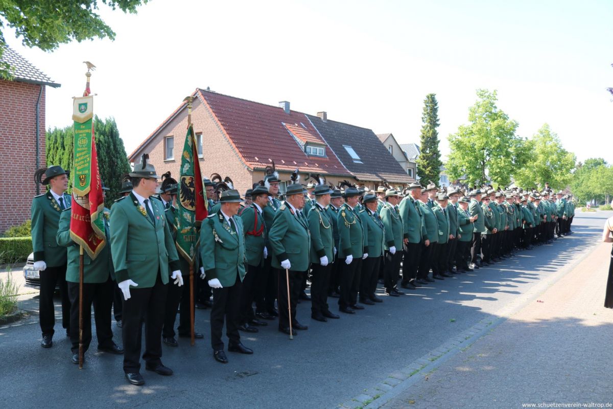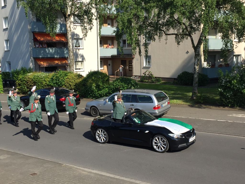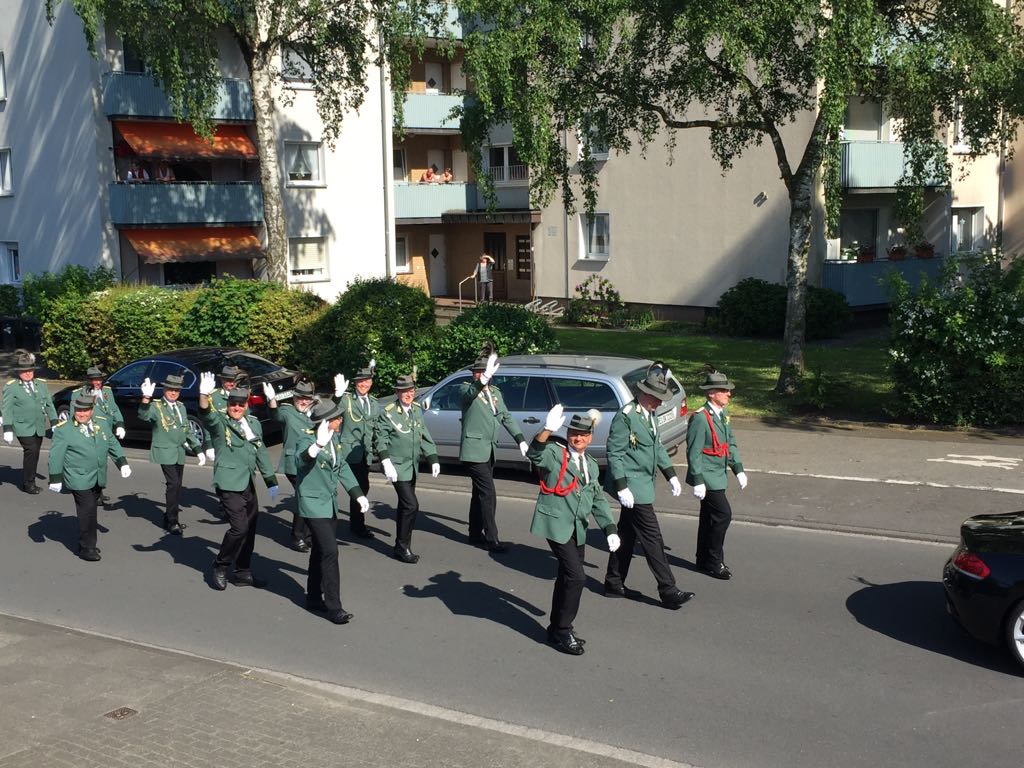 Höhepunkt war hier wie immer die Parade an der Kettelerstraße mit dem Vorbeimarsch an den Königspaaren. Viele Zuschauer hatten sich auch hier wieder rund um die Parade eingefunden und jubelten den Königspaaren und vorbeiziehenden Schützen zu.