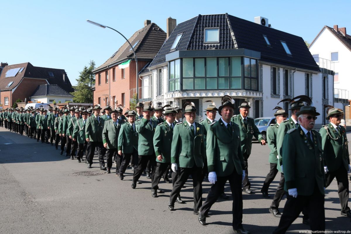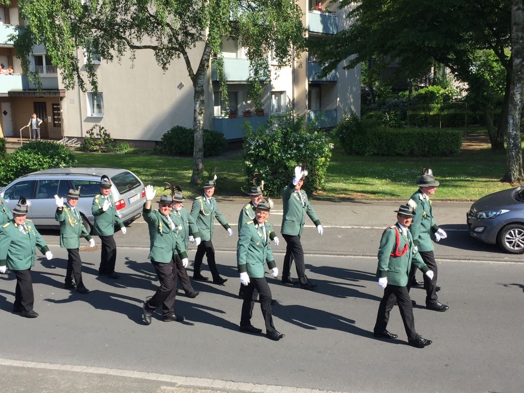 Mit leichter Verzögerung ging es nach dem Antreten "Im Hirschkamp" bei bestem Wetter los durch die Straßen Brockenscheidts, immer wieder vorbei an jubelnden Zuschauern am Straßenrand.
