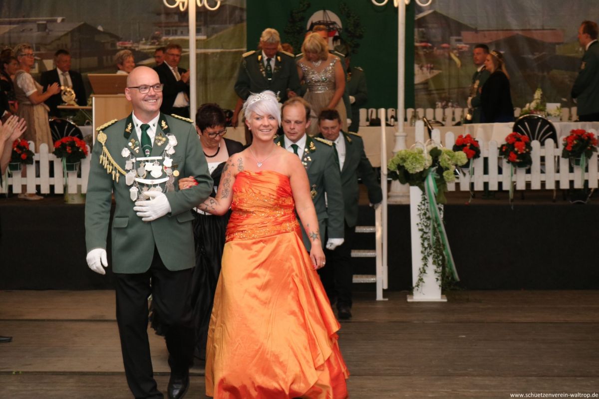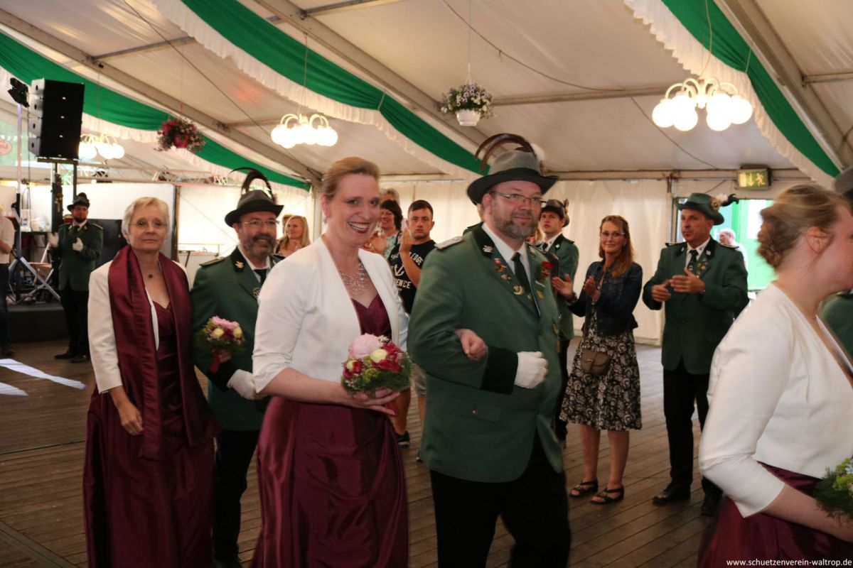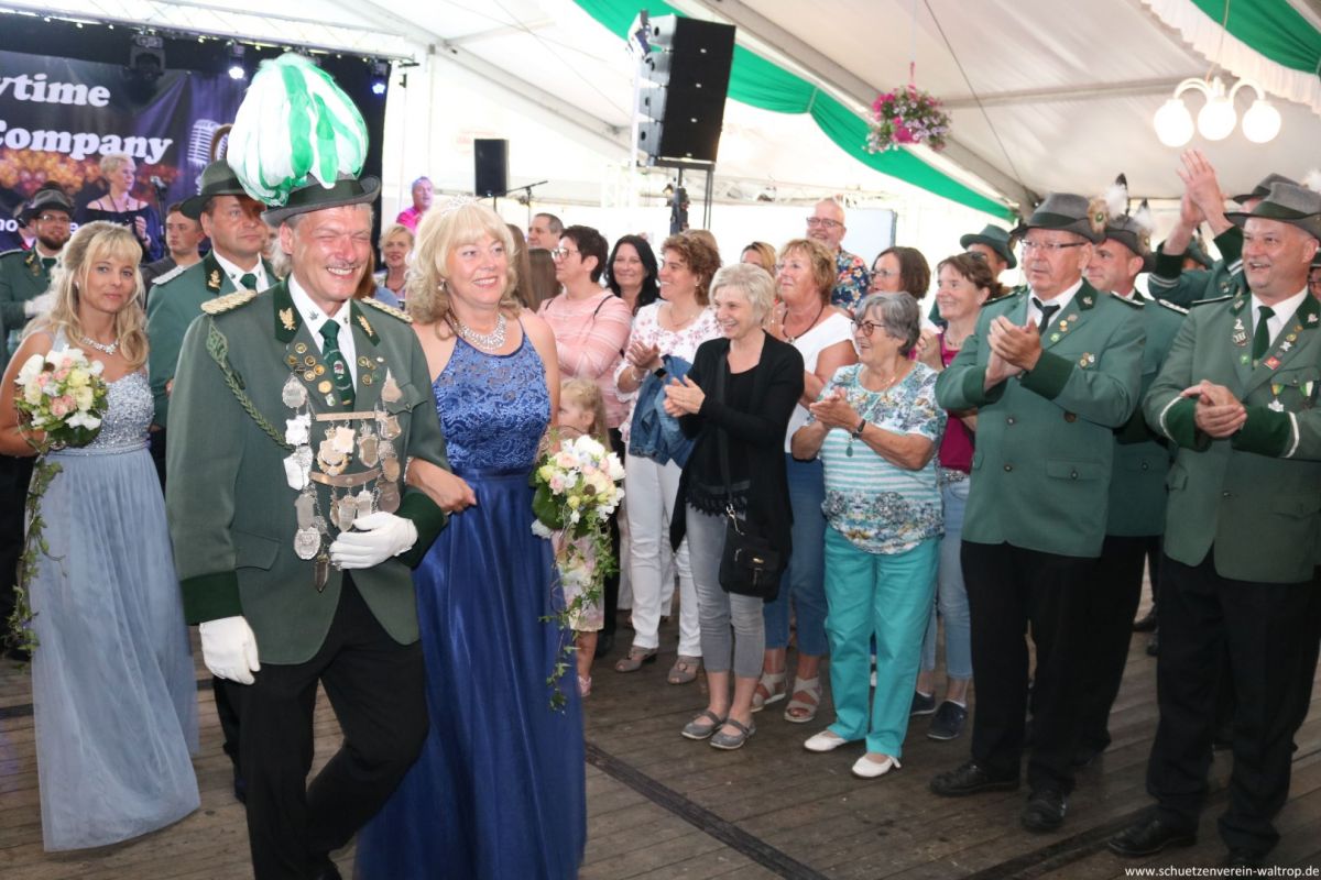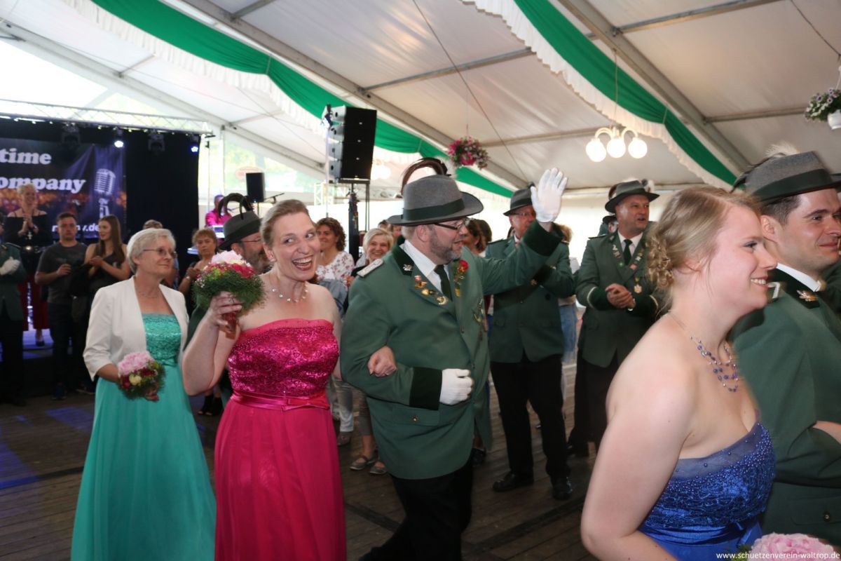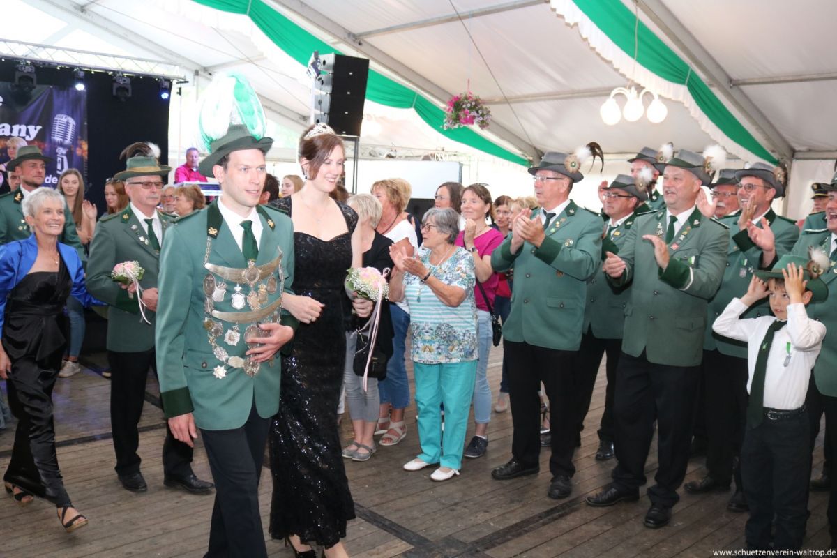 Zum abendlichen Königsball war neben unserem Königspaar Winfried II. und Elisabeth II. samt Thron natürlich auch der geschäftsführende Bataillonsvorstand ins Festzelt einmarschiert, um König Frank und Königin Sabrina zu gratulieren.