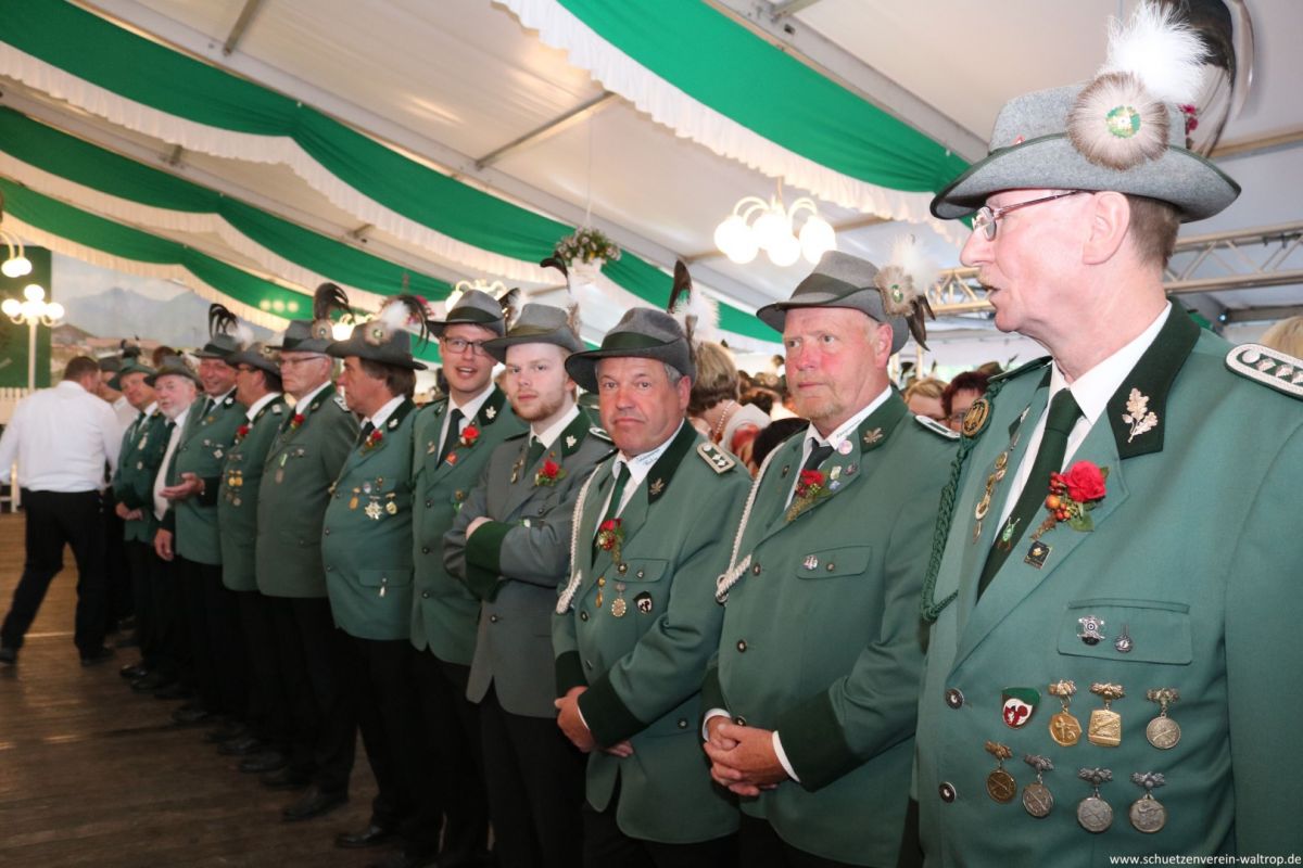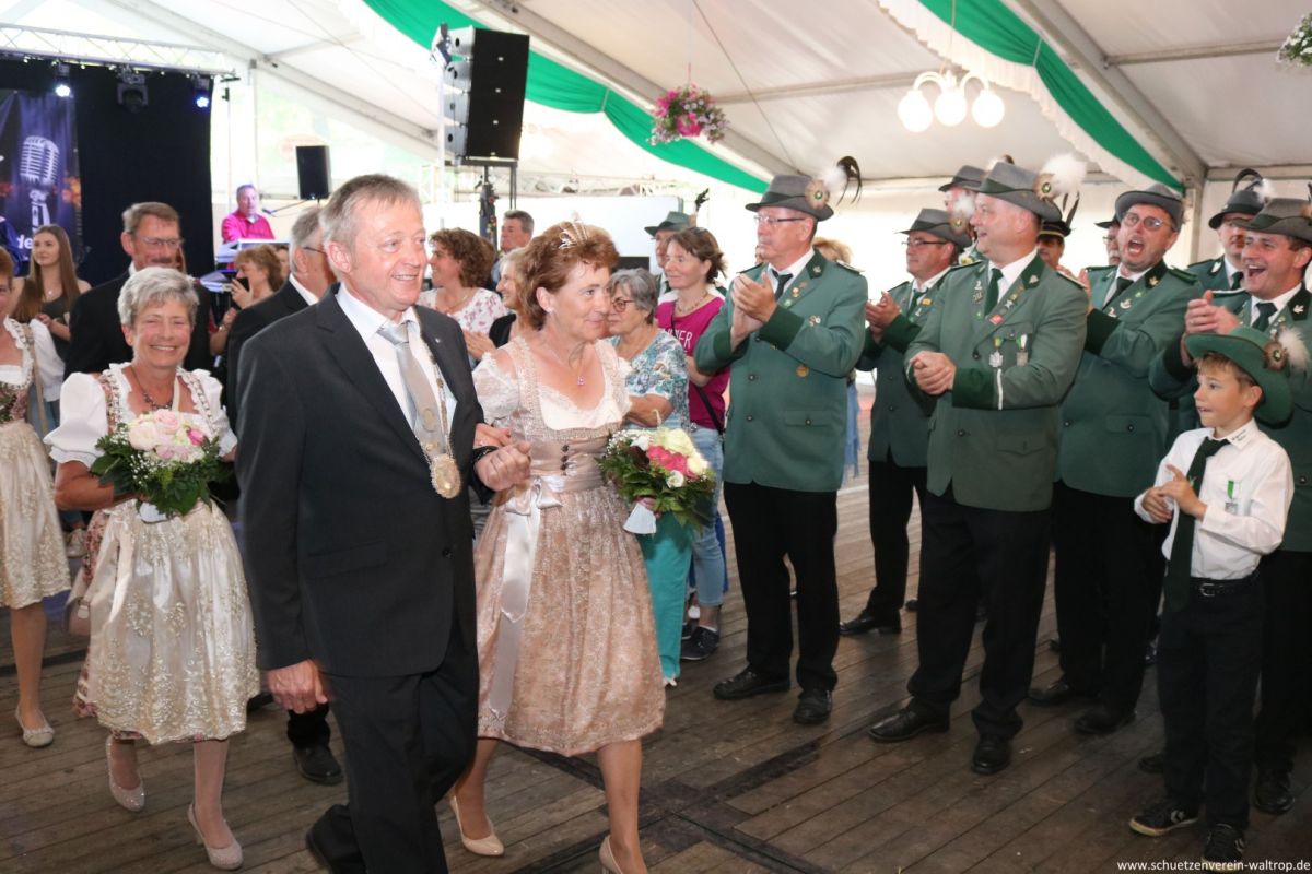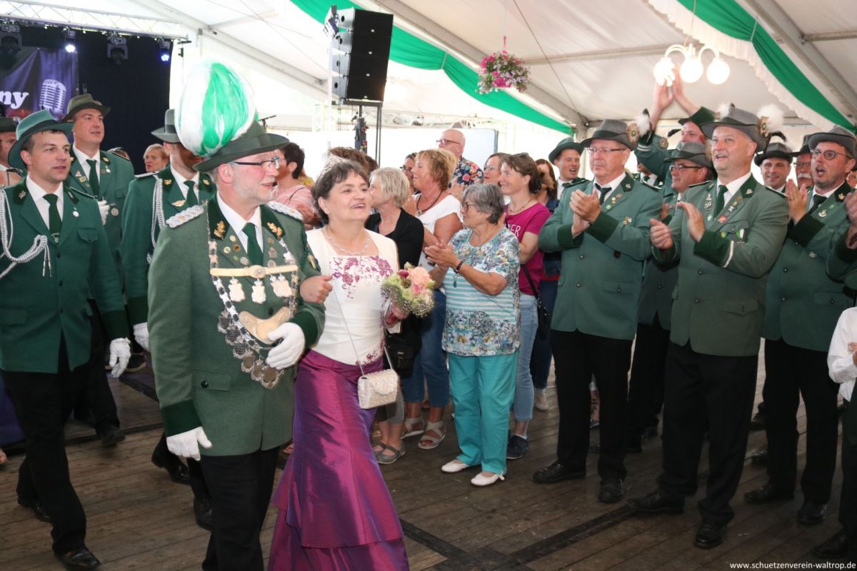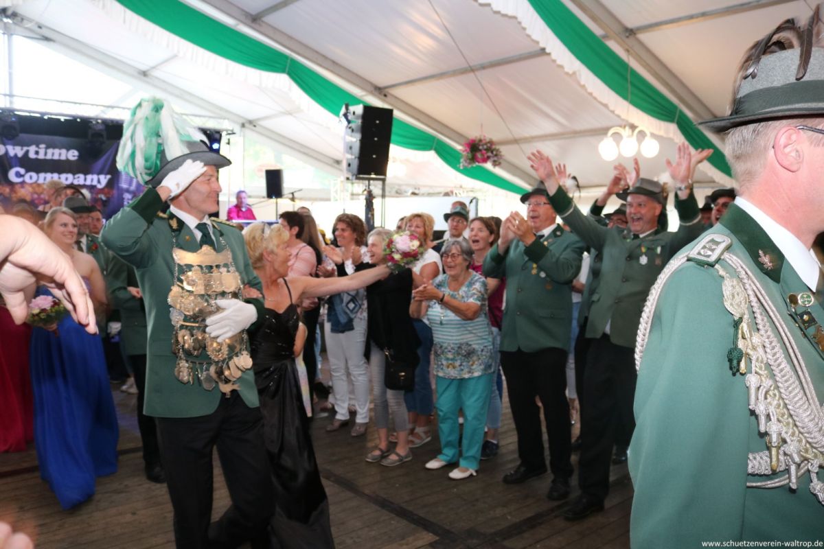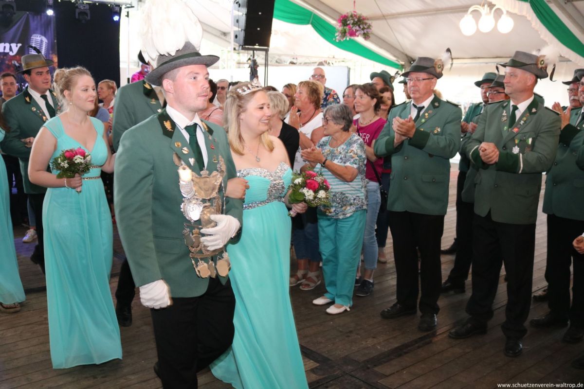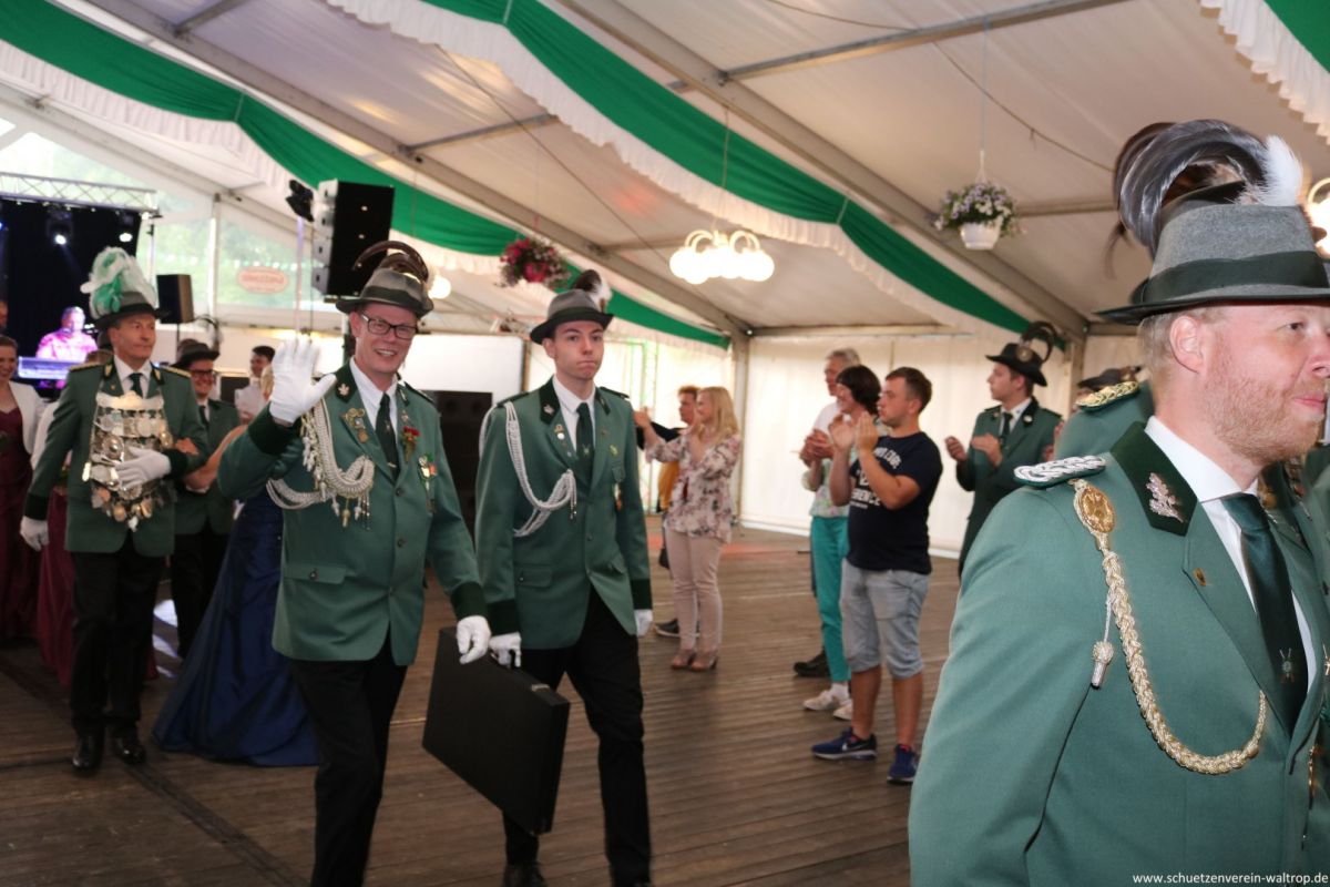 Zum abendlichen Königsball war neben unserem Königspaar Winfried II. und Elisabeth II. samt Thron natürlich auch der geschäftsführende Bataillonsvorstand ins Festzelt einmarschiert, um König Frank und Königin Sabrina zu gratulieren.