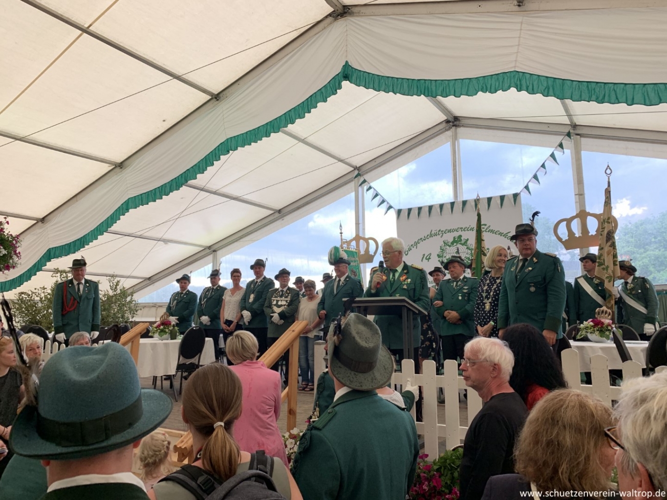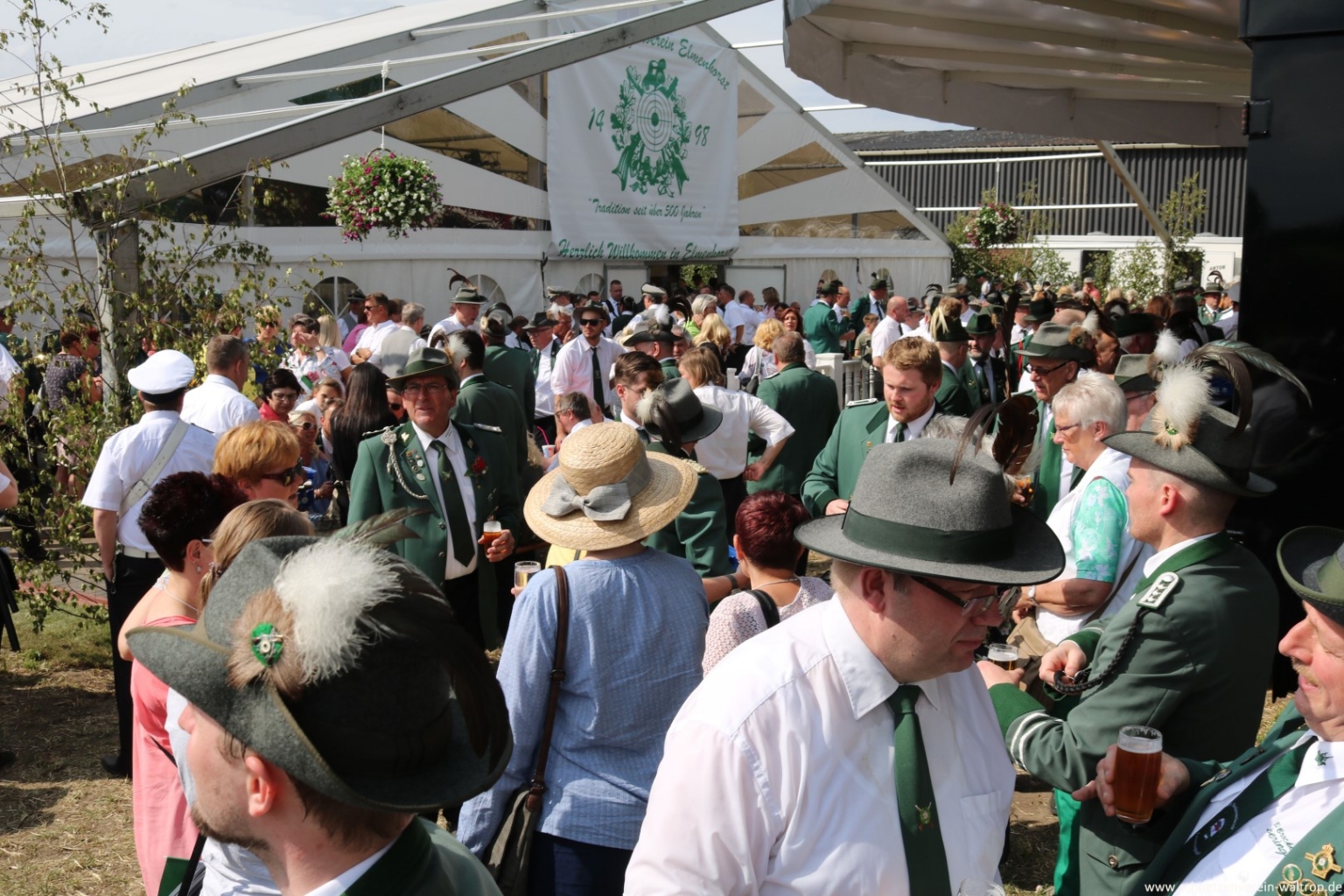 Im Zelt angekommen wurde ein passender Platz an der Theke gesucht, um den Durst nach dem wärmenden Marsch zu stillen, als mit Erschrecken festgestellt wurde, dass die linke Thekenseite gar nicht besetzt war. Der Zeltwirt hatte hier offenbar die Anzahl durstiger Schützen unterschätzt und lediglich eine Theke geöffnet. Nachdem viele Schützen den Posten an den äußeren Bierwagen verlagerten und der erste Andrang überwunden war, lief die Versorgung wieder in gewohntem Maße, sodass am Ende niemand verdursten musste.