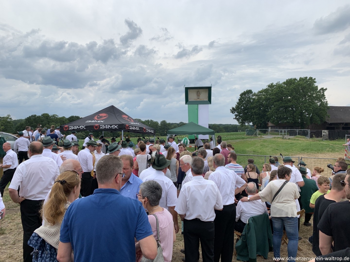 Vorangegangen war ein langes Vogelschießen, das sich erst am Abend um 18.15 Uhr entschied. Zuvor machten es die Insignien schon unterhaltsam, so wurde der Flügel zwar abgeschossen, fiel aber nicht herunter, sondern blieb zunächst im Kugelfang liegen. Die Vogelstange musste heruntergefahren und der Flügel herausgeholt werden.