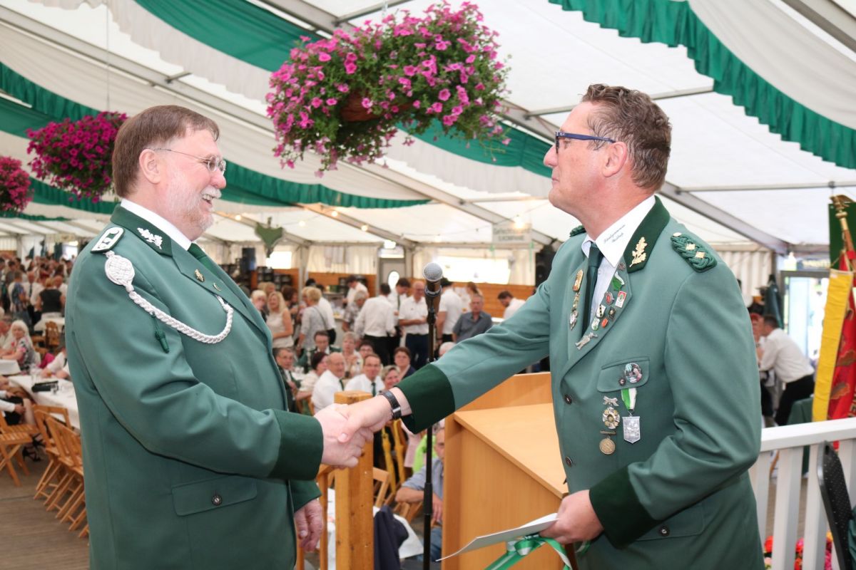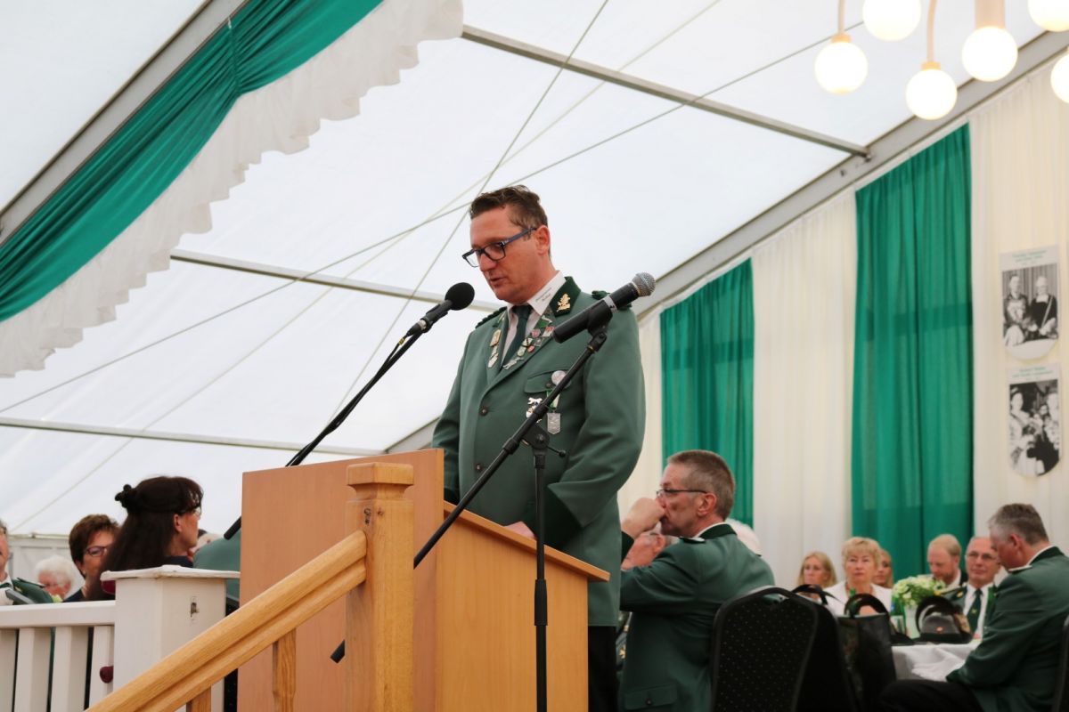 Bern Reers ließ das Bataillon antreten und übergab das Wort anschließend dem ersten Vorsitzenden Ludger Grothus, welcher alle Anwesenden begrüßte und allen ein schönes Fest wünschte.