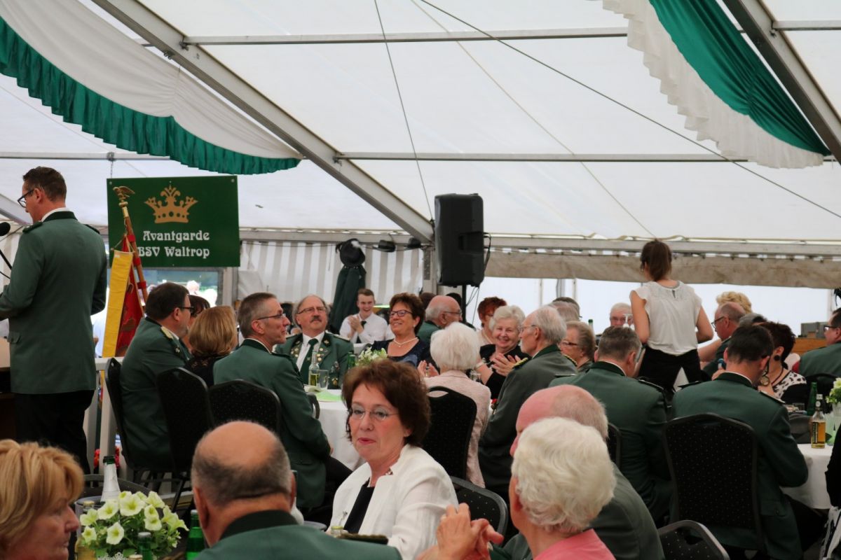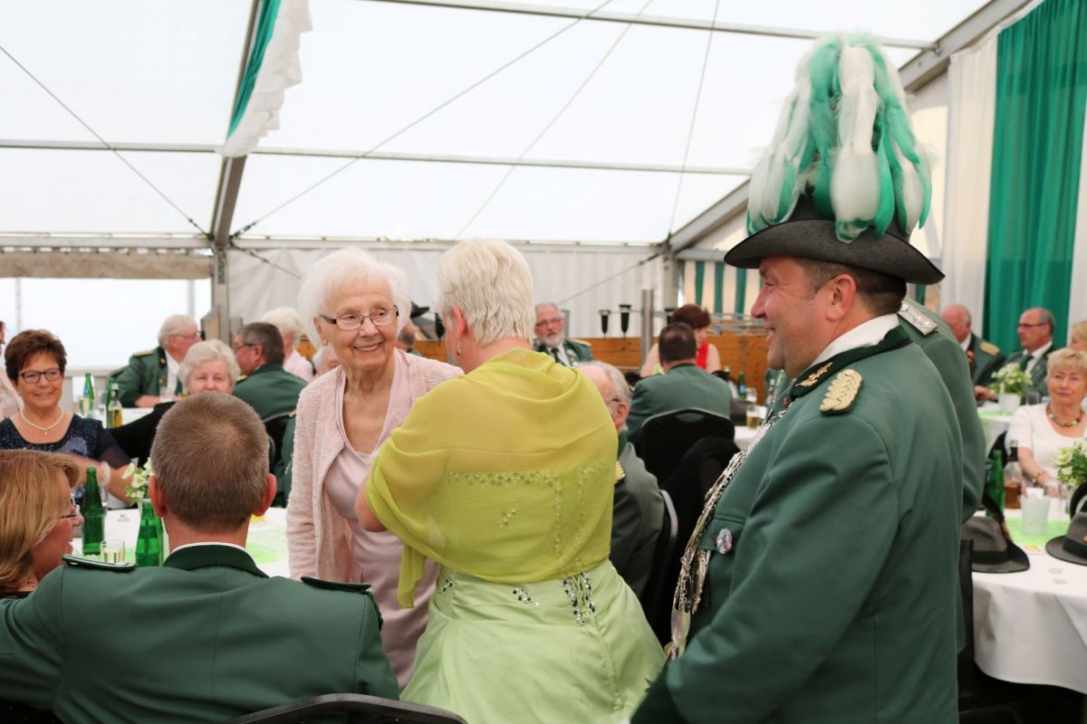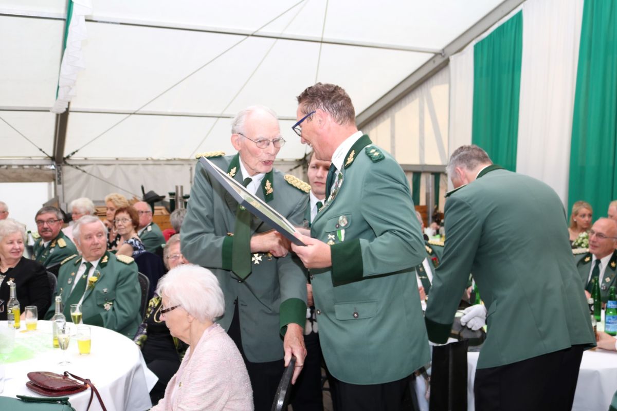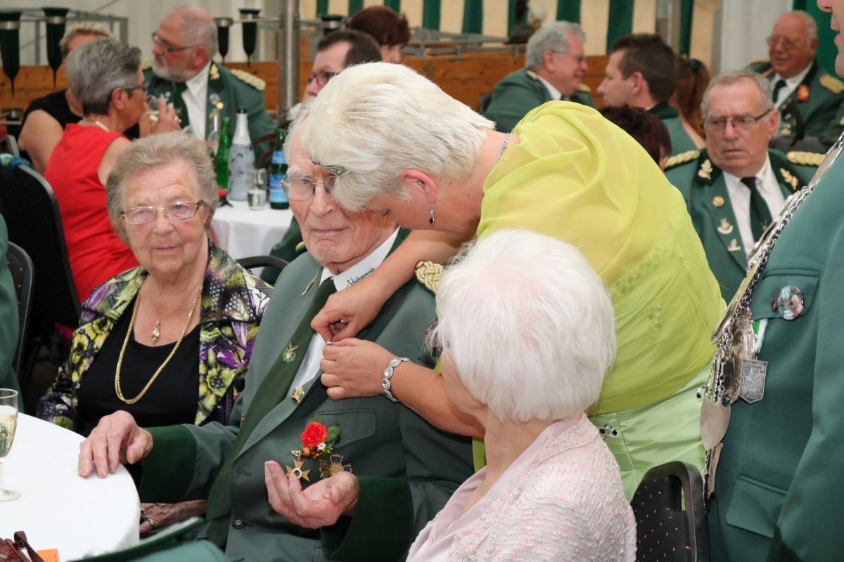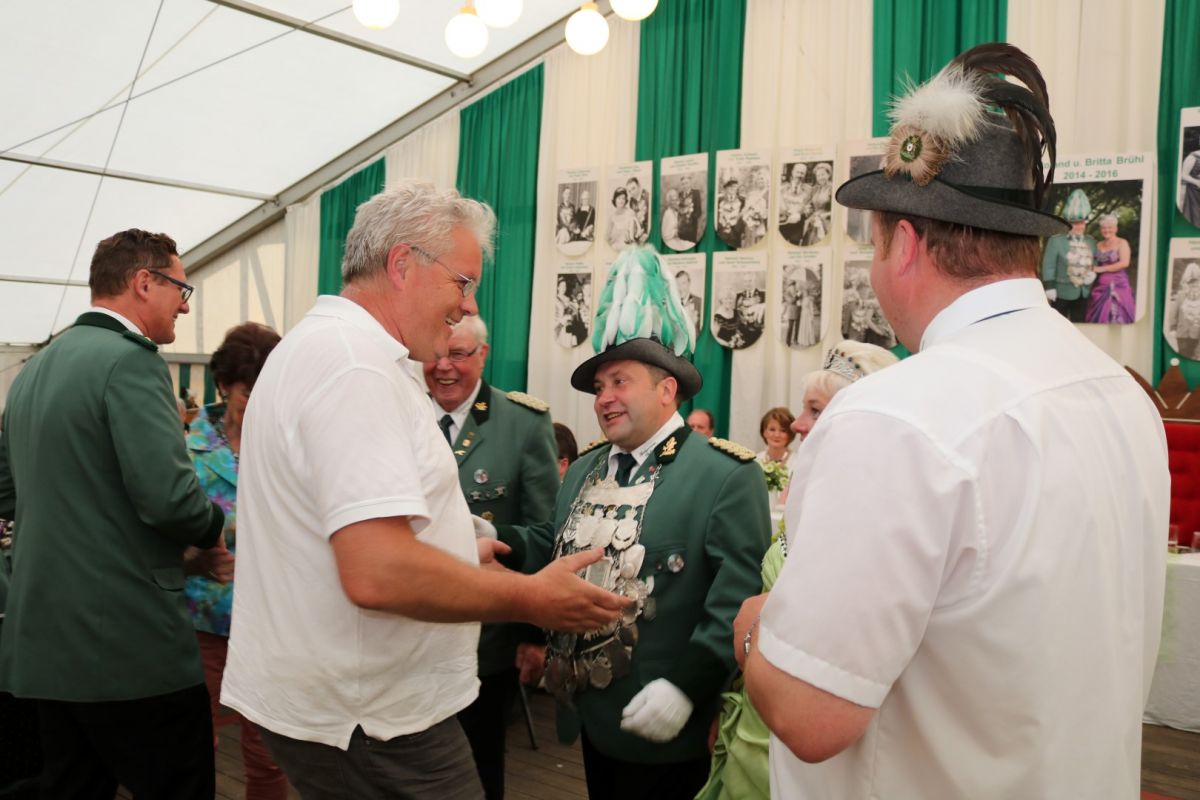 Nach Begrüßung durch den Vorsitzenden Ludger Grothus standen zunächst noch einige Ehrungen auf dem Programm. So konnte Marianne I. Musshoff, Königin von 1976 – 1978, 40-jähriges Thronjubiläum feiern. Aus den Händen von Ludger gab es eine Urkunde, Königin Britta überreichte den Jubiläumsorden. Max I. Burbaum, König von 1991 – 1993, kann auf 25 Jahre Thron zurückblicken und auch Gerda I. Tübbing bekam den Jubiläumsorden samt Urkunde für 25 Jahre Thronjubiläum überreicht.