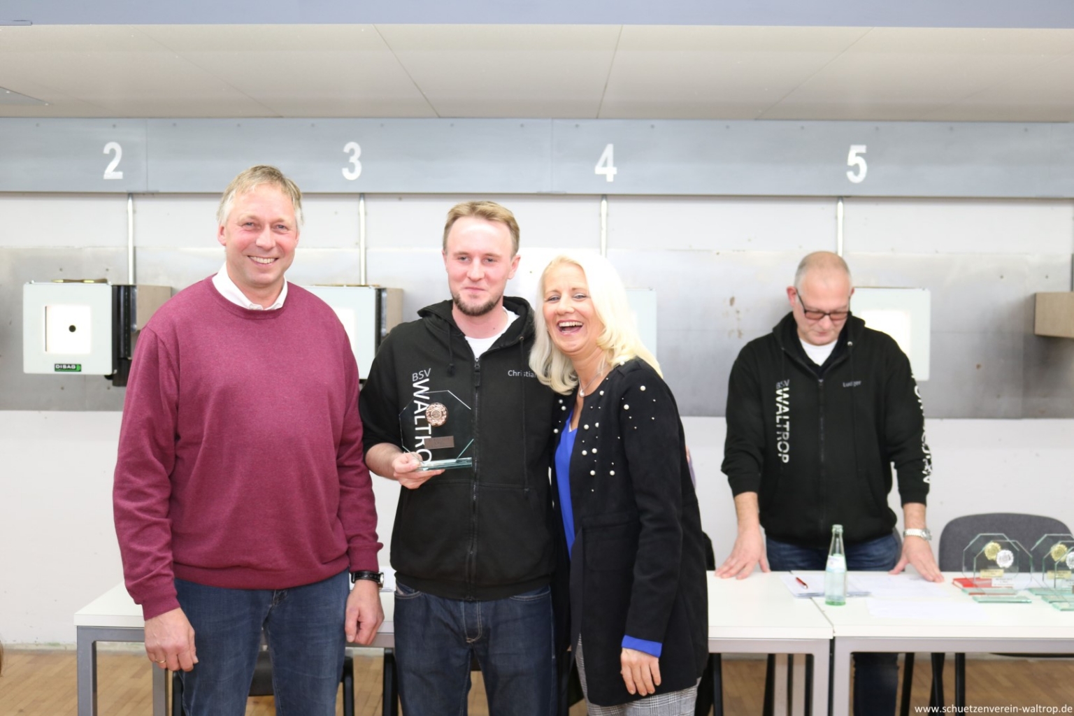 Die Siegerehrung am gestrigen Freitag fand hierbei erstmalig direkt am Ort des Geschehens statt, auf dem Schießstand unter der Stadthalle. Viele Schützen nebst amtierendem Königspaar und Abordnung des Bataillonsvorstandes waren der Einladung gefolgt und fanden sich pünktlich gegen 20.00 Uhr ein.