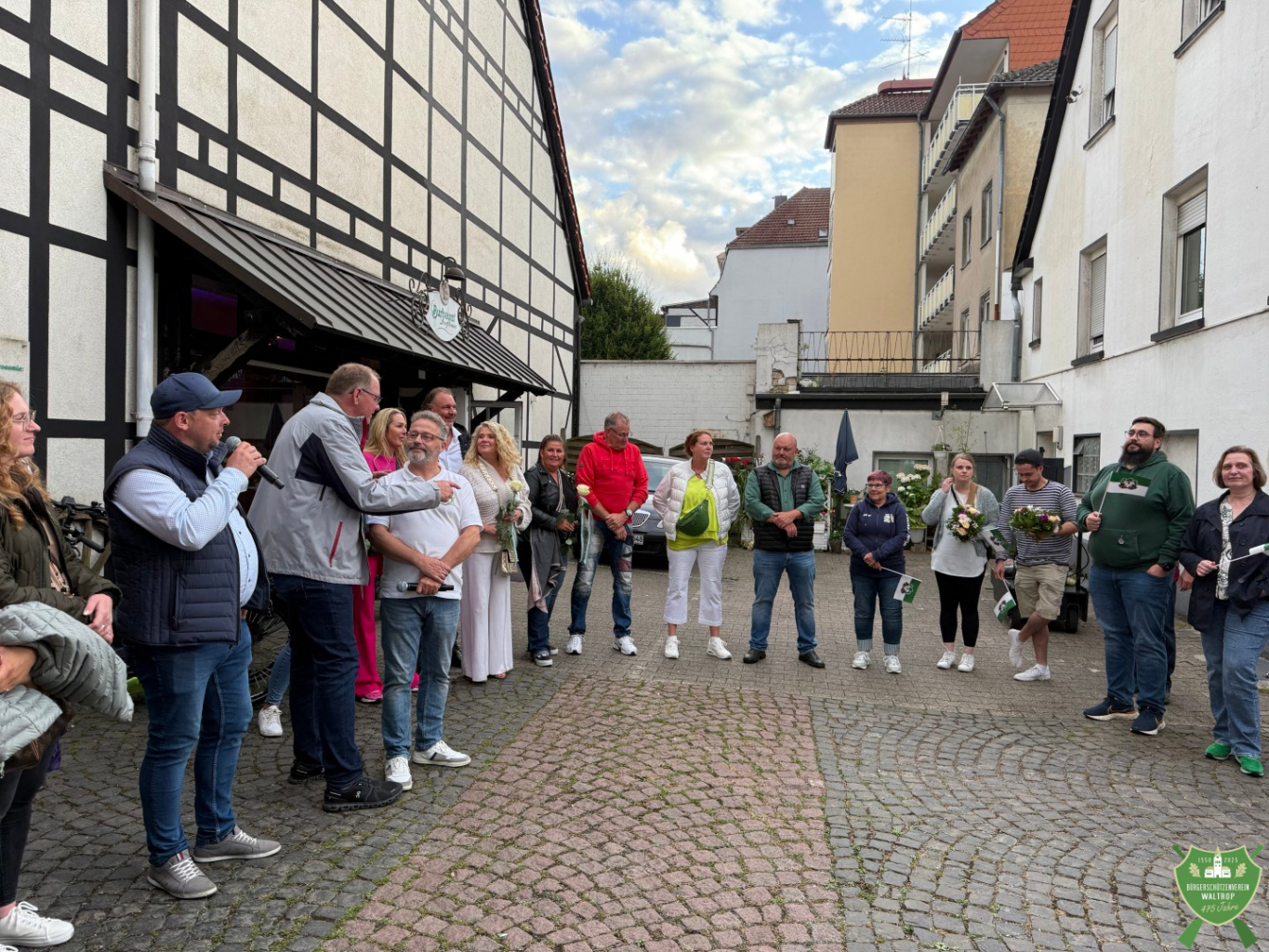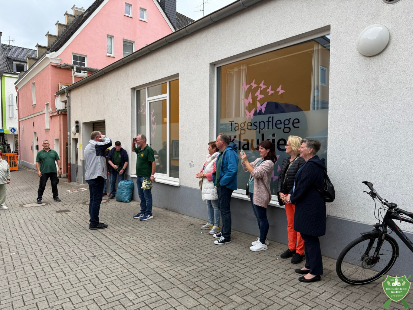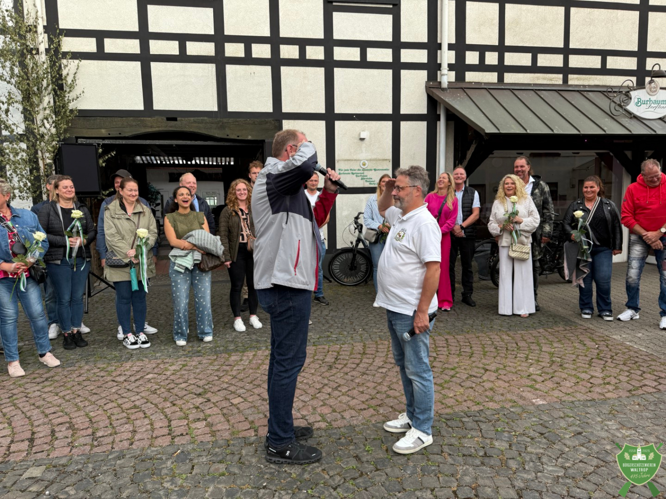 Nach einem kurzen Fußweg stand auch hier bereits ein Spalier draußen zur Begrüßung bereit, ehe zum Aufenthalt mit Speis und Trank in das ArtCafé gebeten wurde.