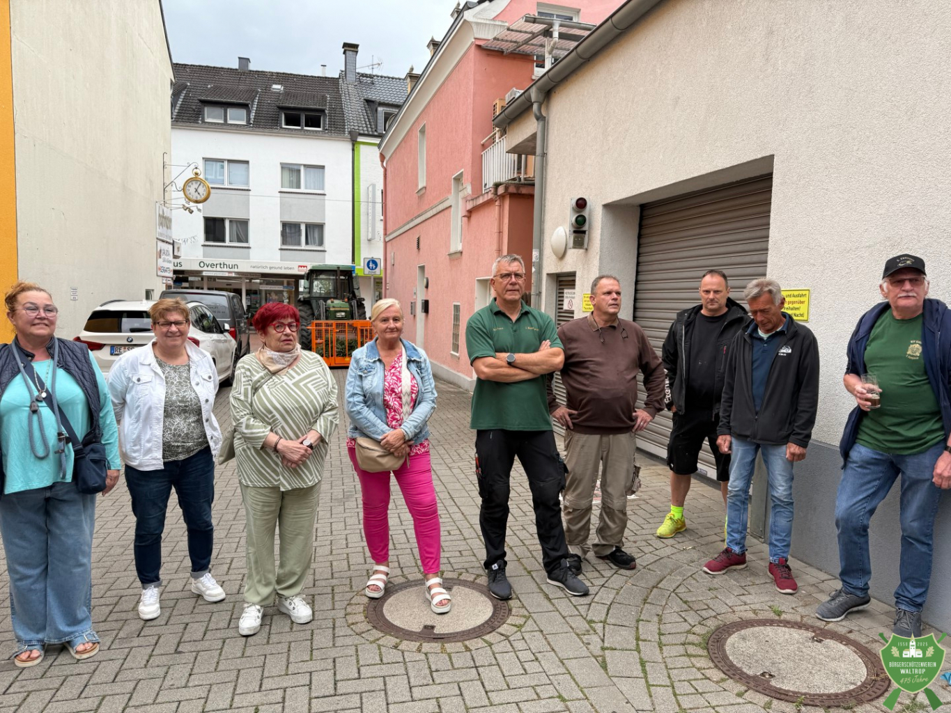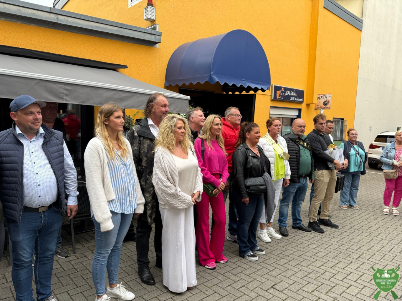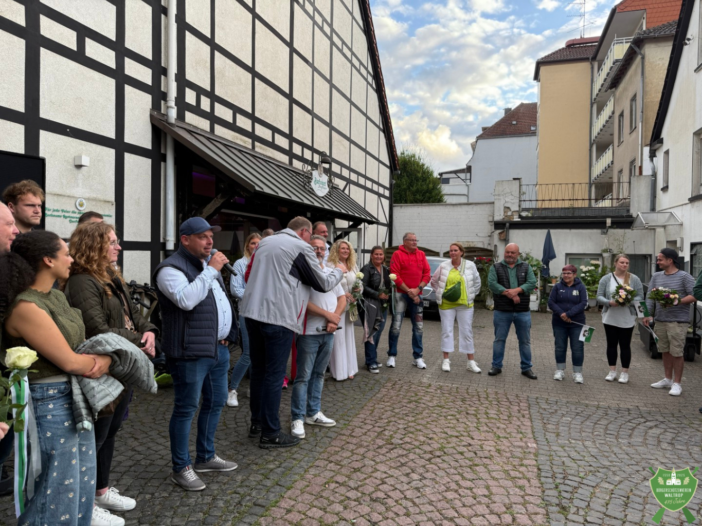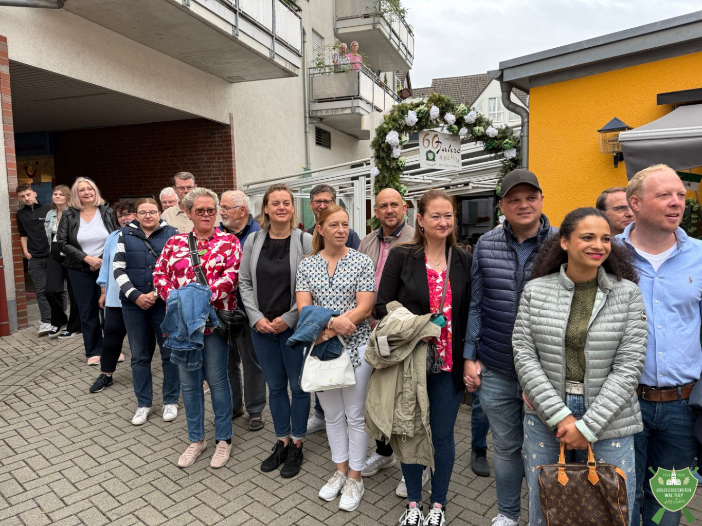 Besucht wurde zunächst die 5. Kompanie mit Hauptmann Thomas Finke. Nach einem kurzen Fußmarsch war die Galeria von Silli und Gianni als erstes Ziel erreicht. Wie bereits beim Kränzen hatte sich wieder ein Spalier aus Schützen samt Damen gebildet, um die ankommende Truppe zu begrüßen und natürlich besonders dem Königspaar Thomas und Rita Glückwünsche auszurichten.