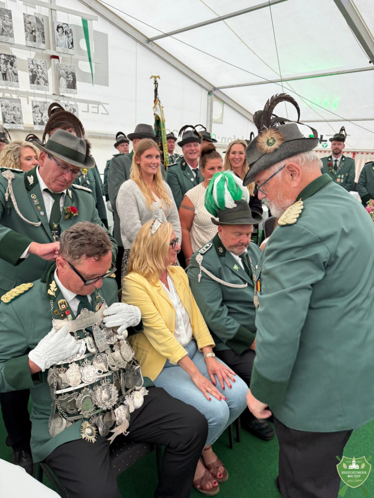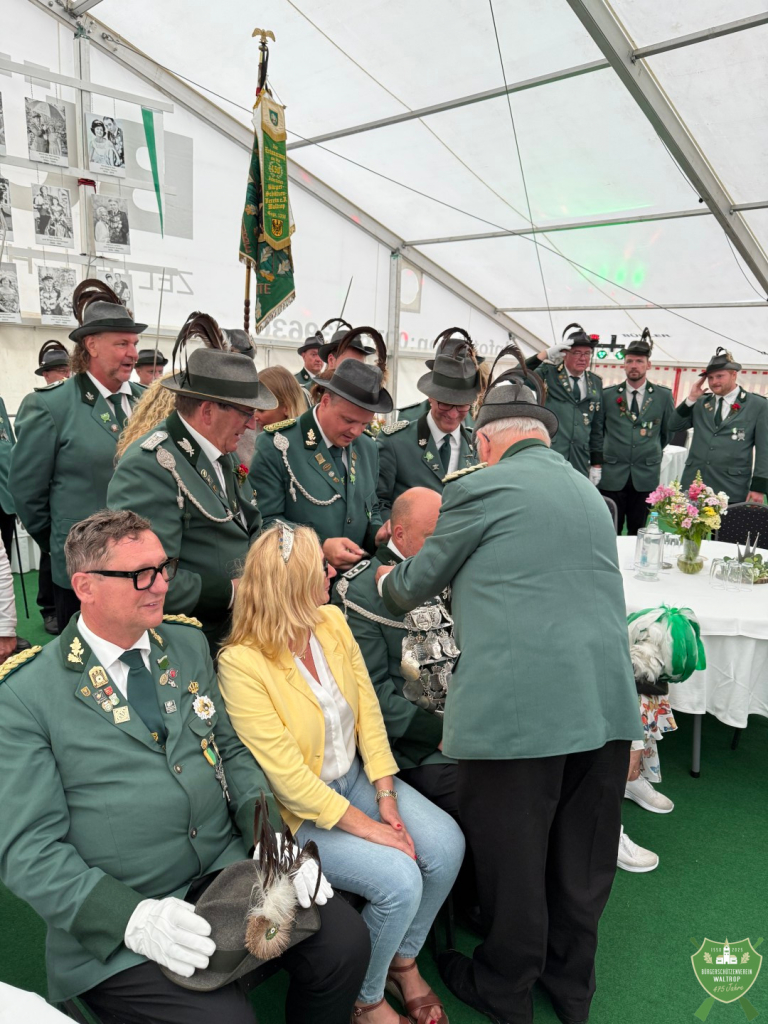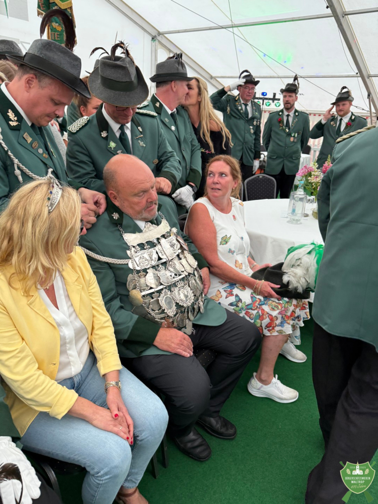 So wurde unserem bisherigen König Ludger feierlich die große Königskette abgenommen und an seinen Nachfolger Tommy überreicht, ebenso ging die Krone von Claudia an Rita über.