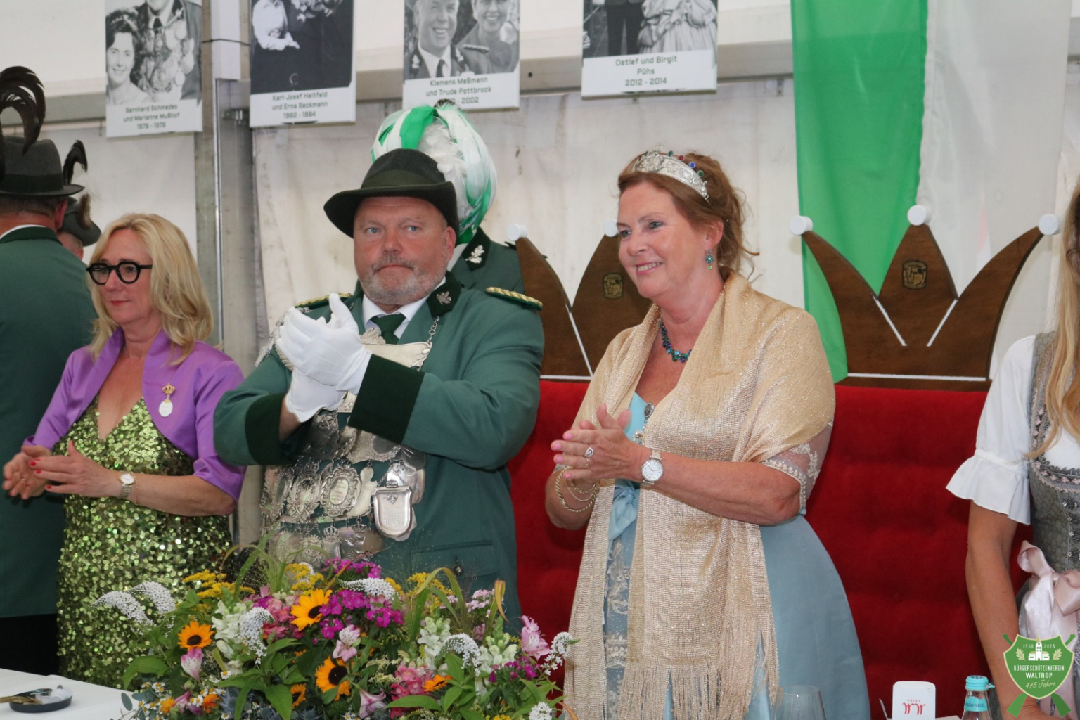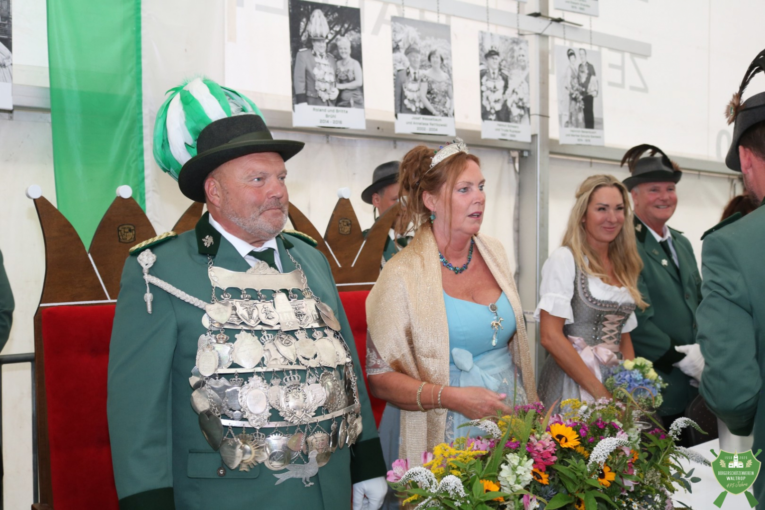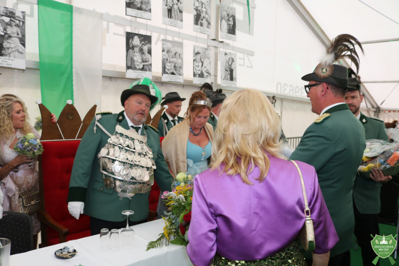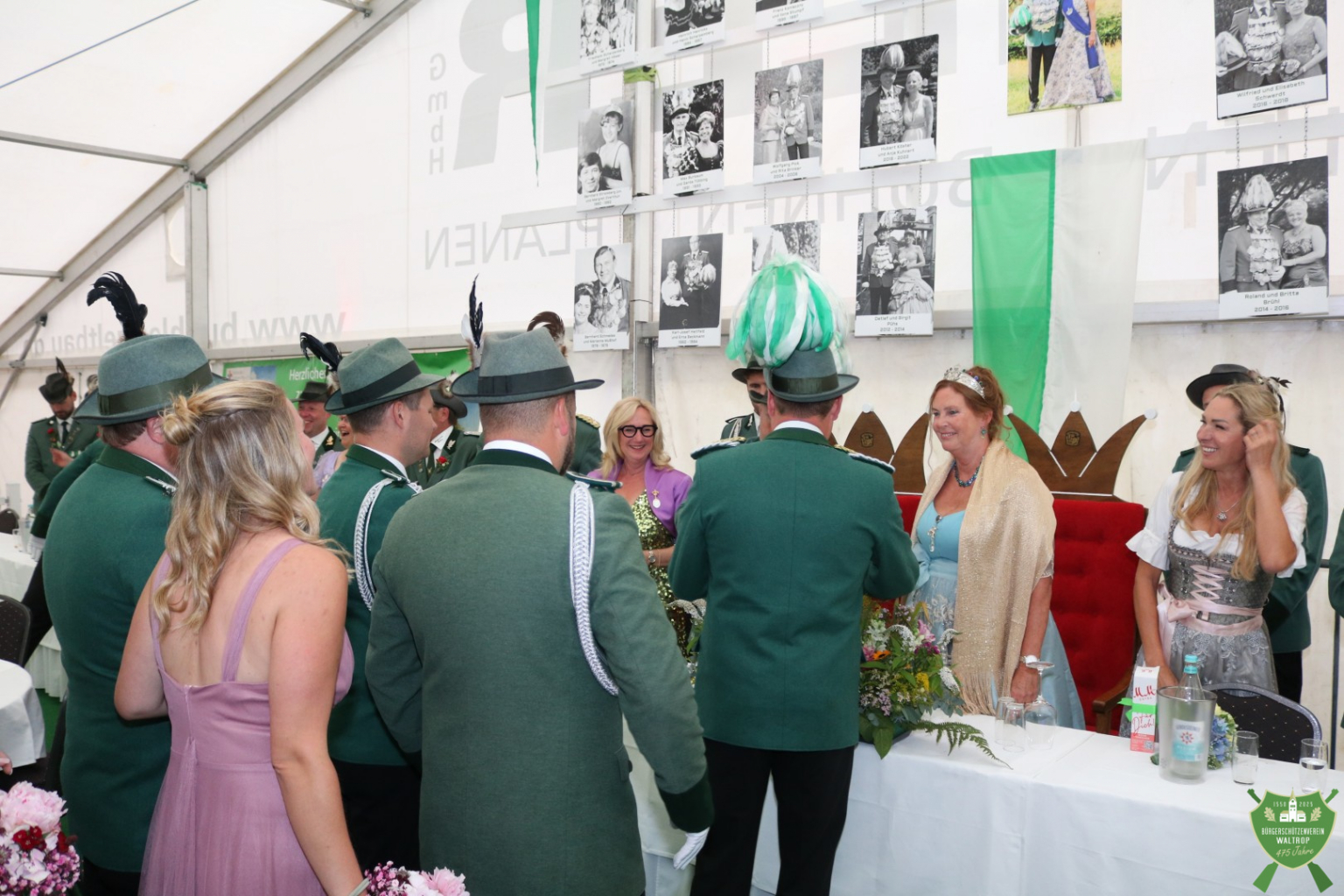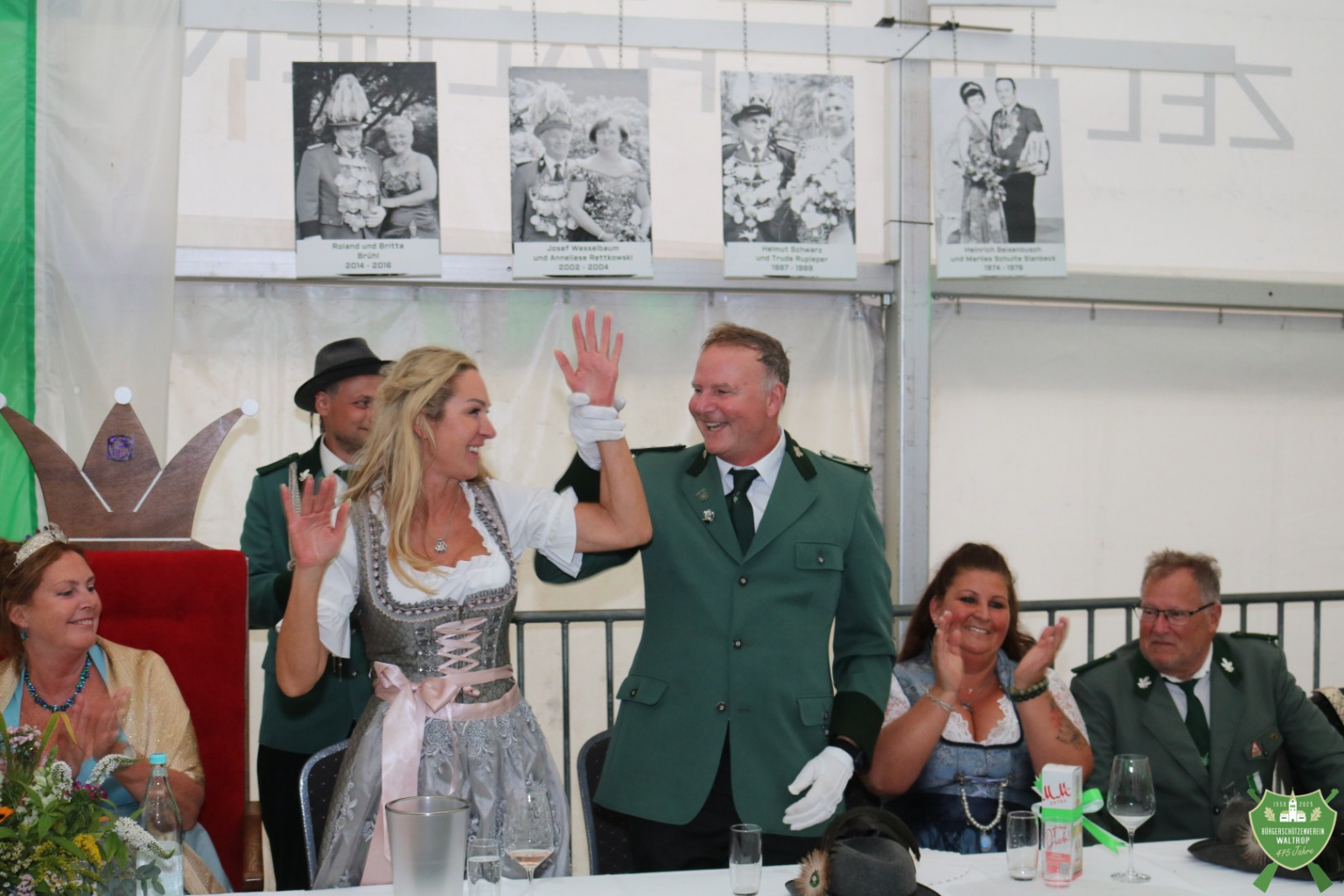 Im Zelt angekommen, durfte unser neues Königspaar Thomas und Rita nach einem Einmarsch direkt auf dem Thron neben dem bisherigen Königspaar Ludger und Claudia Platz nehmen.