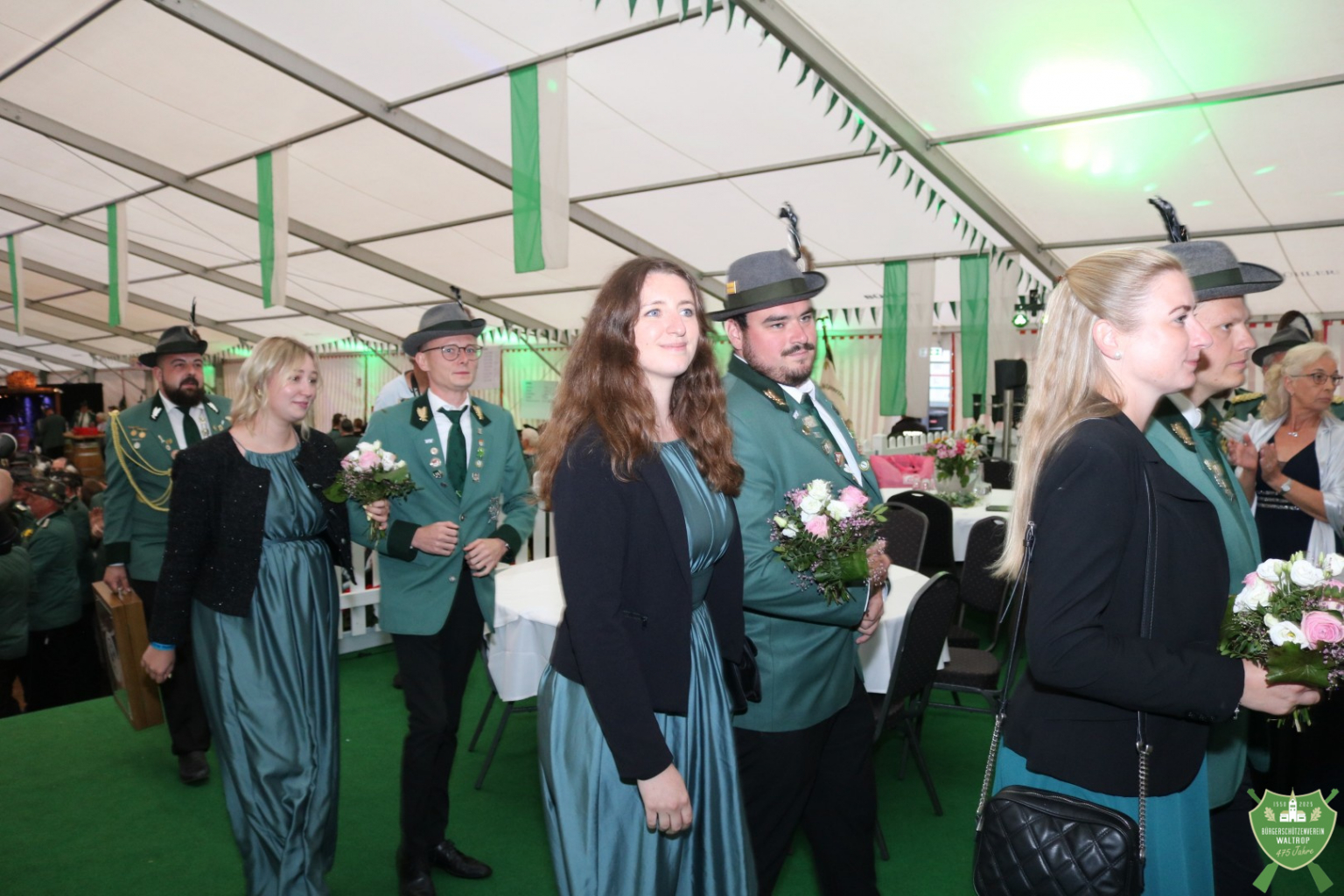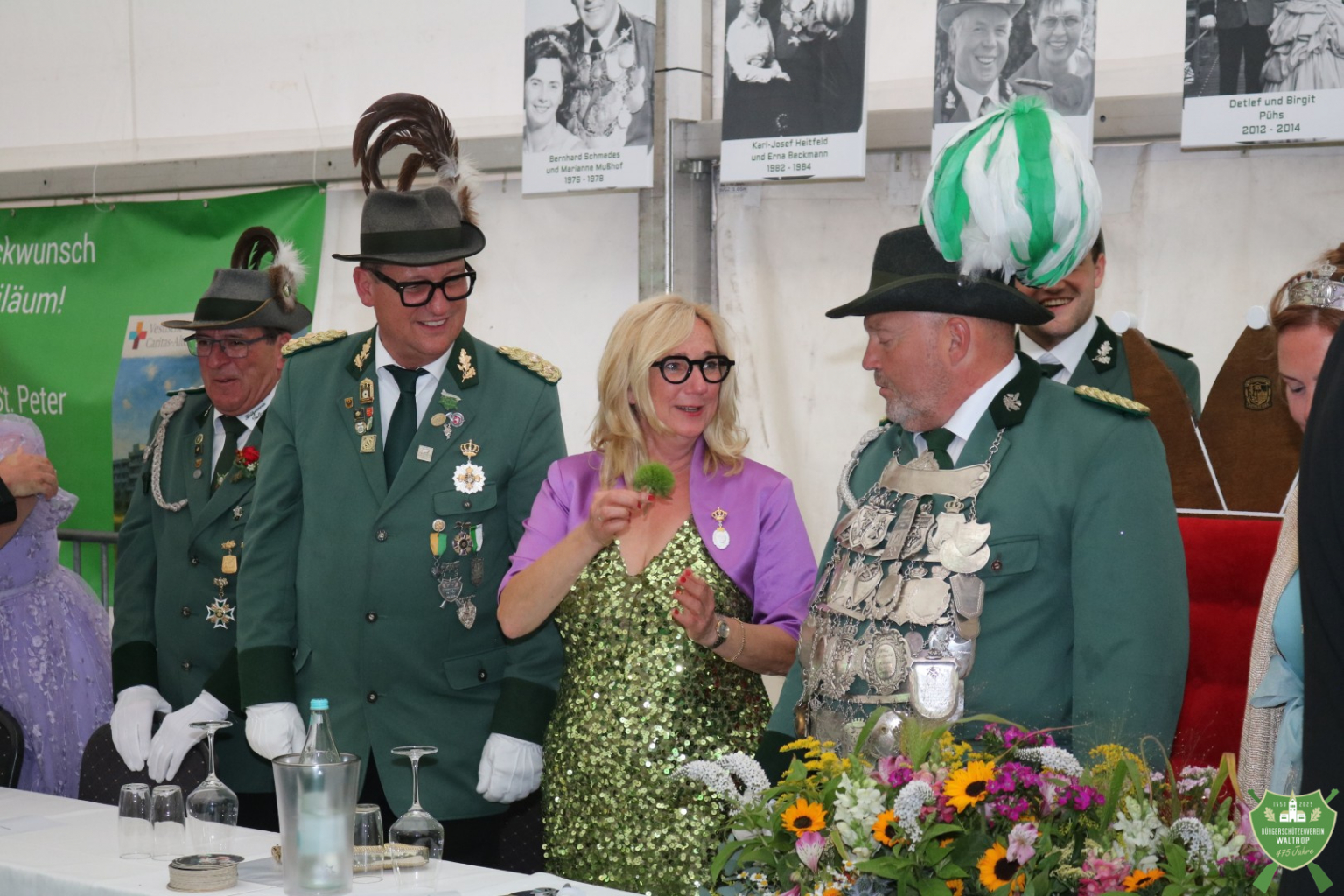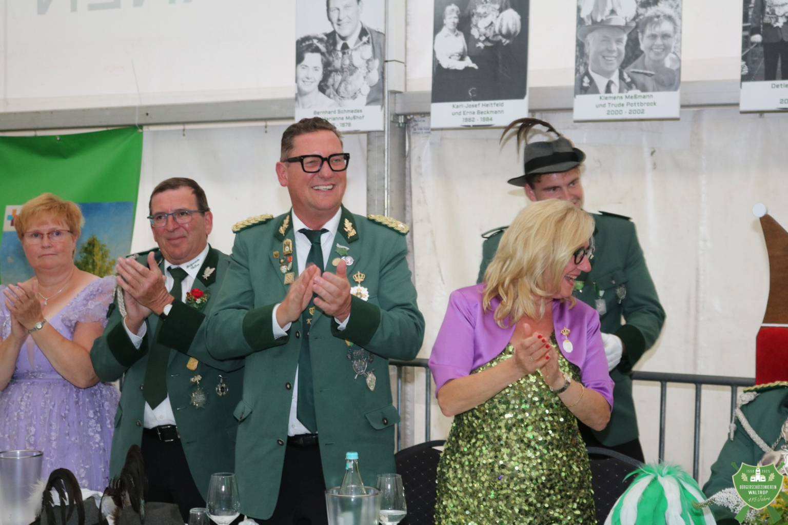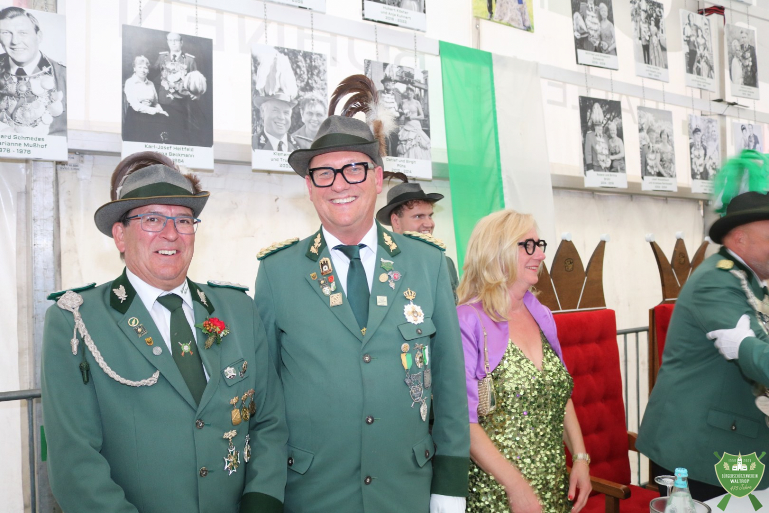 Bevor die Party aber endgültig losgehen konnte, hatten sich noch diverse Gratulanten am Eingang aufgereiht, die noch auf den Thron marschieren und ebenfalls Glückwünsche überbringen wollten, so z.B. der Sparclub aus Thomas und Ritas Kneipe „Kö14“.
