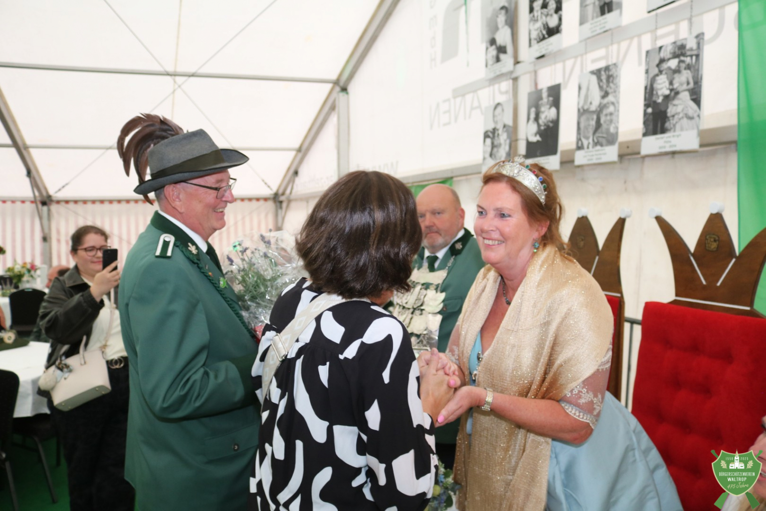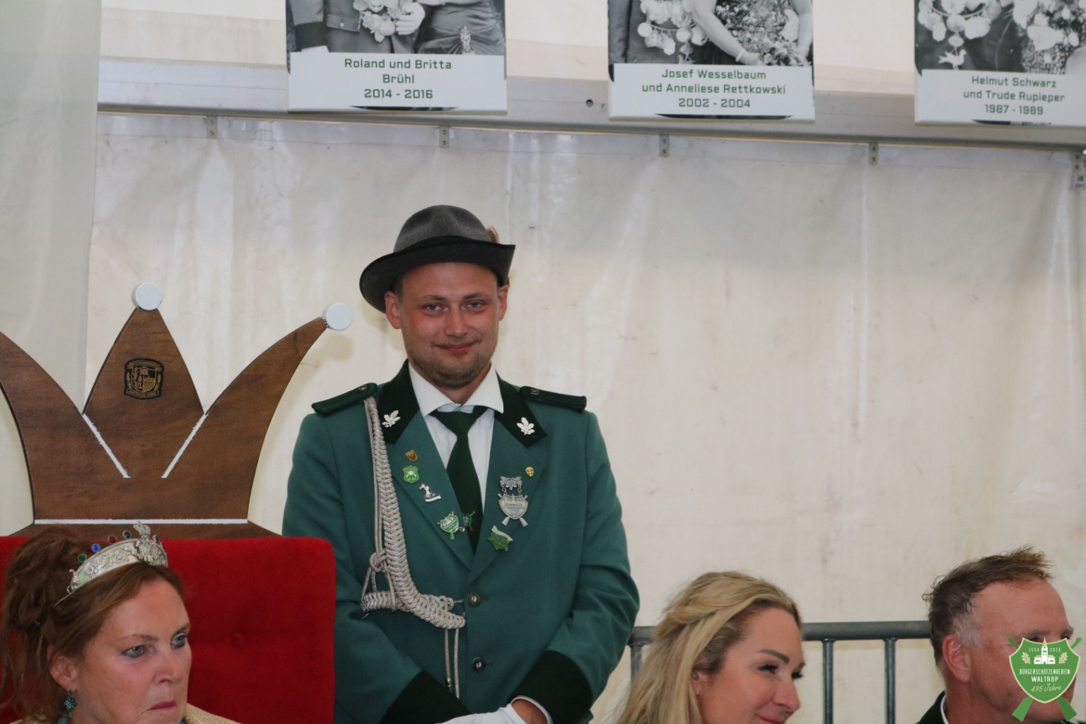 Zur feierlichen Krönungszeremonie wurde eigentlich Marcel Mittelbach erwartet, der als Bürgermeister traditionell die Krönung vornimmt. Da Marcel aus persönlichen Gründen allerdings nicht anwesend sein konnte, wurde kurz überlegt, das Ganze auf den Abend zu verlegen. Letztlich erklärte sich aber Dr. Hermann Geldmann als stellvertretender Vorsitzender bereit, die Krönung zu übernehmen.