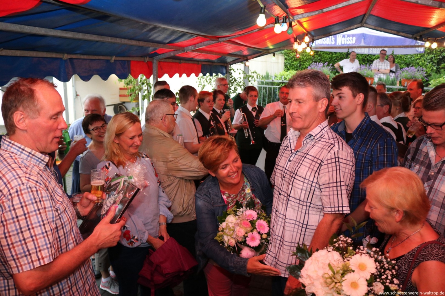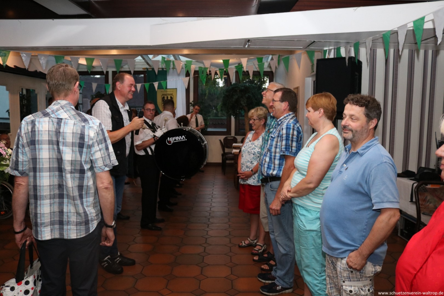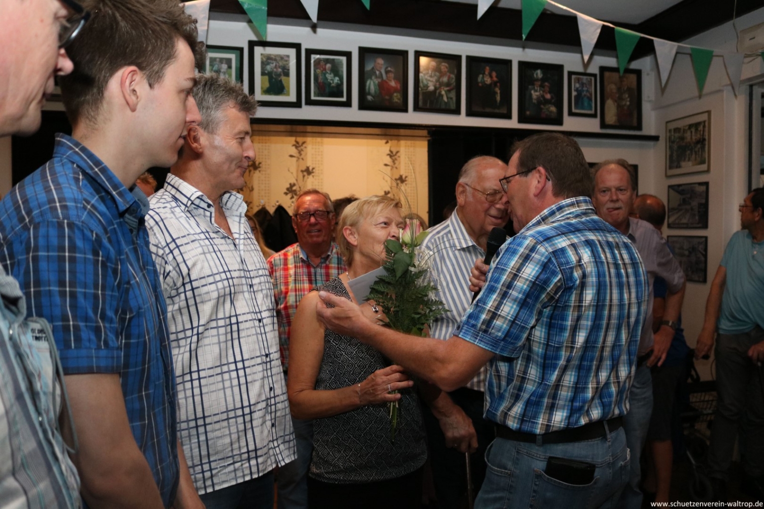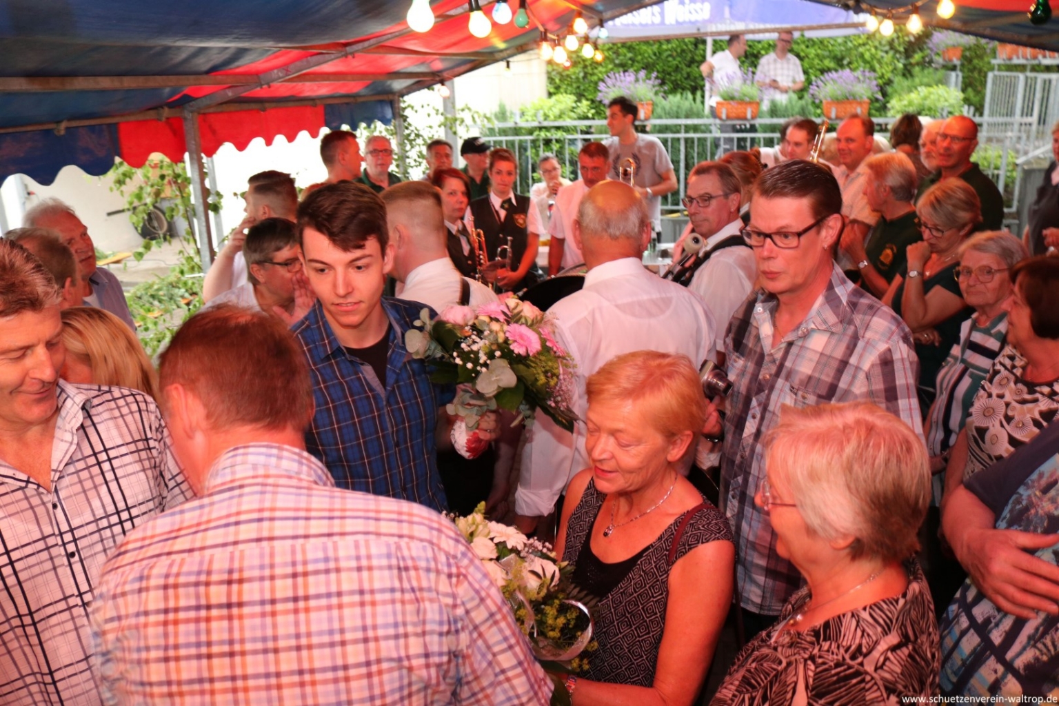 Zum Auftakt des Schützenfestes 2018 fand am Donnerstag vor dem Fest in den Kompanien wieder das traditionelle Binden der Kränze statt. Der Bataillonsvorstand samt Königspaar und Hofstaat stattete dabei im Rahmen einer Rundfahrt natürlich auch allen Kompanien wieder einen Besuch ab.