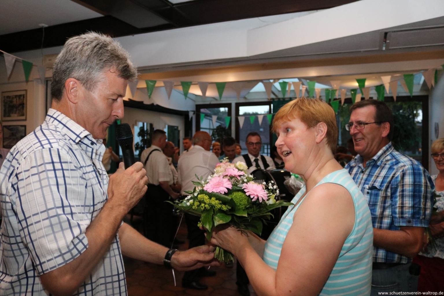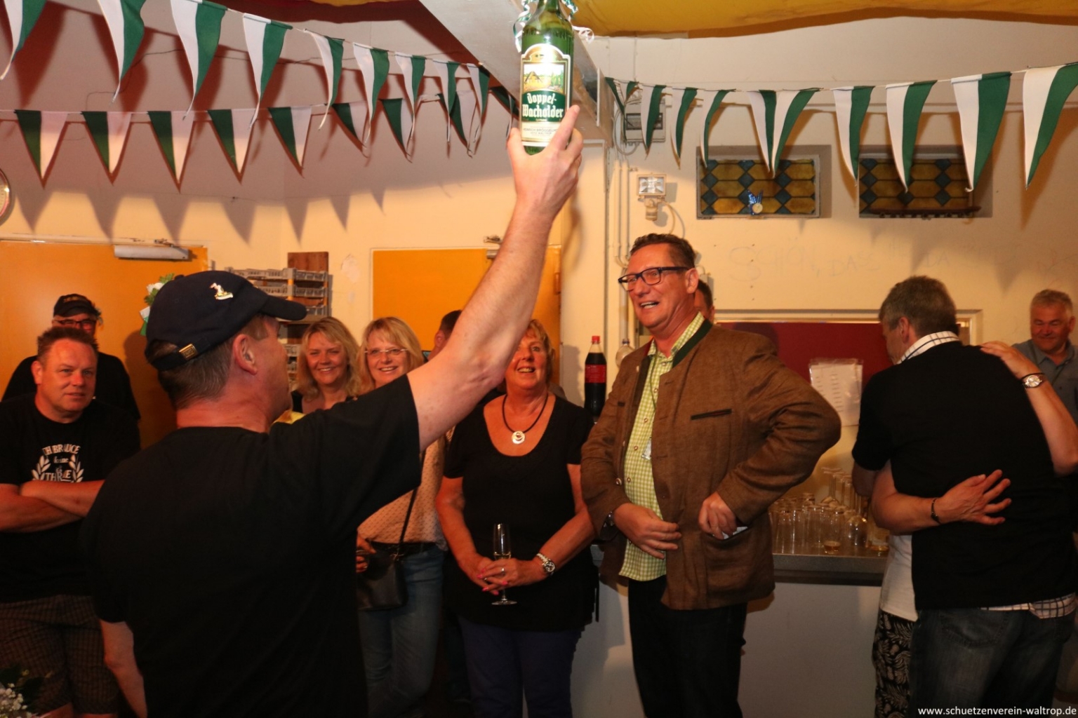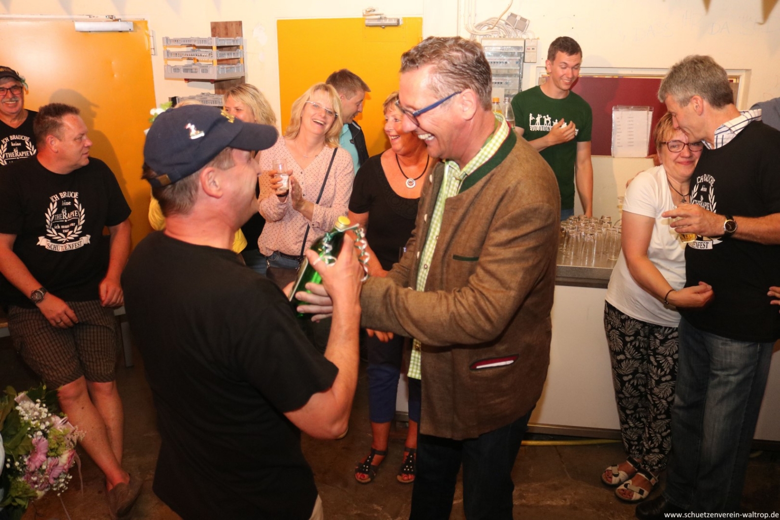 Zur Einstimmug auf den gemütlichen Teil des weiteren abends gab es für jedes Mitglied des Bataillonsvorstandes und des Hofstaates noch eine kleine, klare Spezialität aus dem Hause Bröggelhoff für die Herren, die Damen bekamen ein Fläschchen Sekt überreicht.