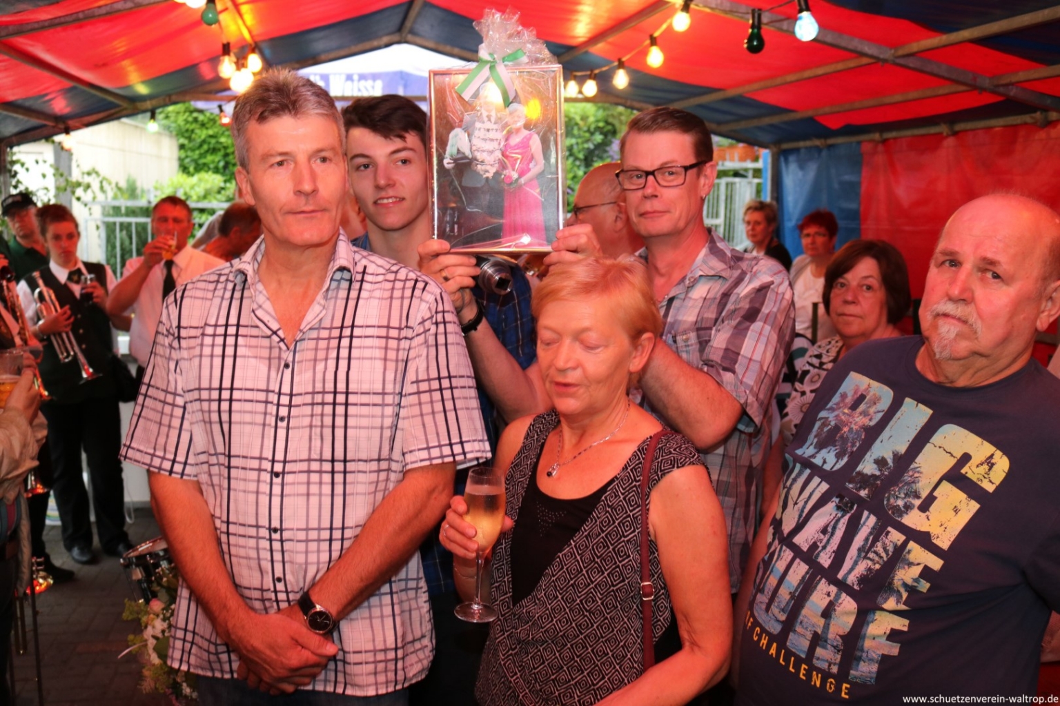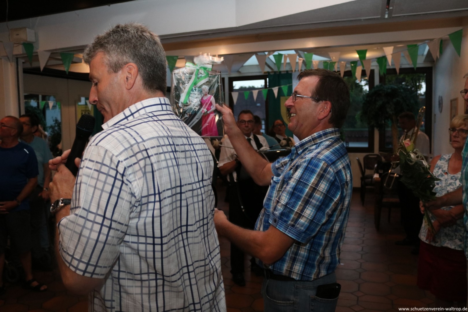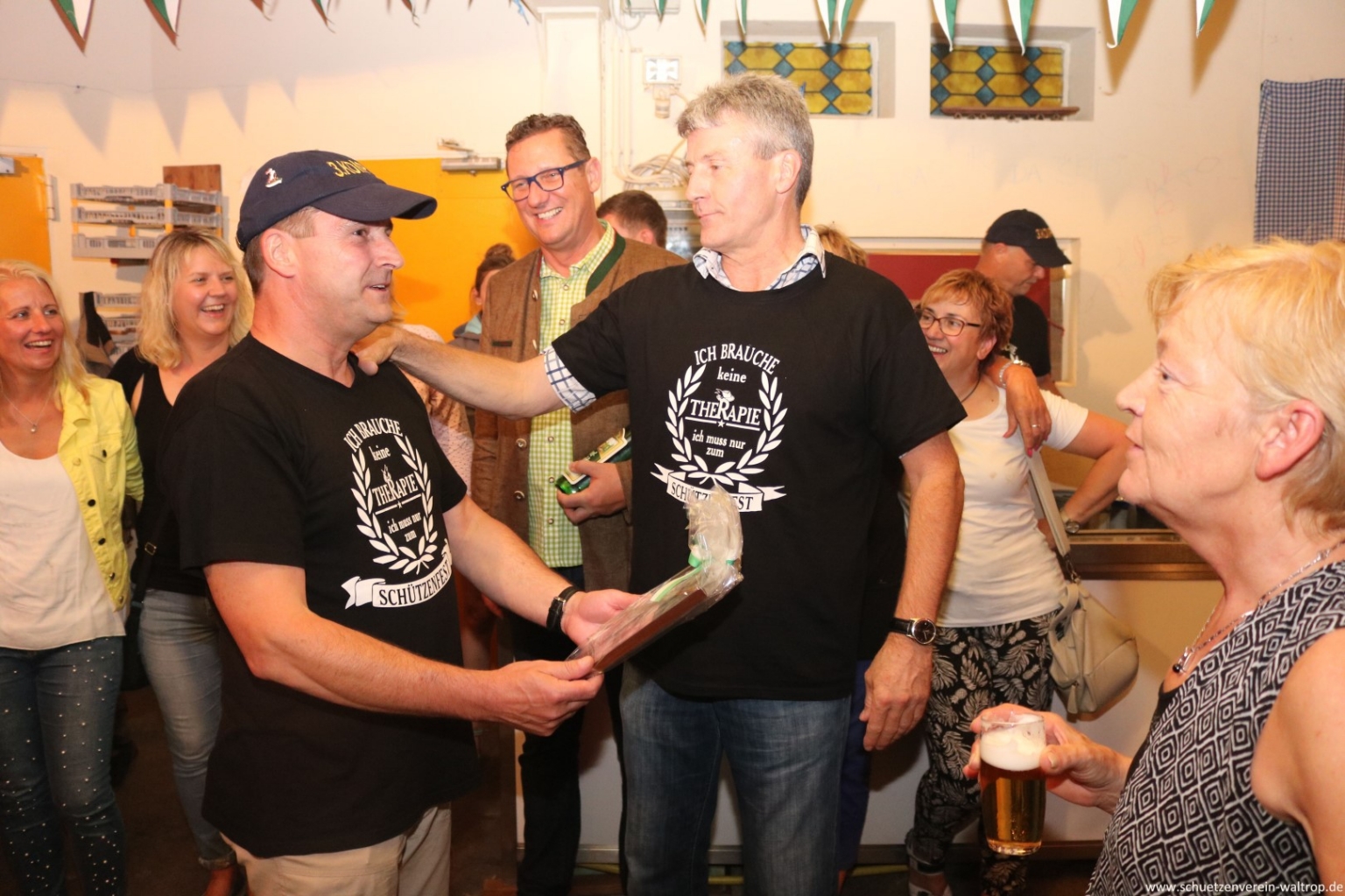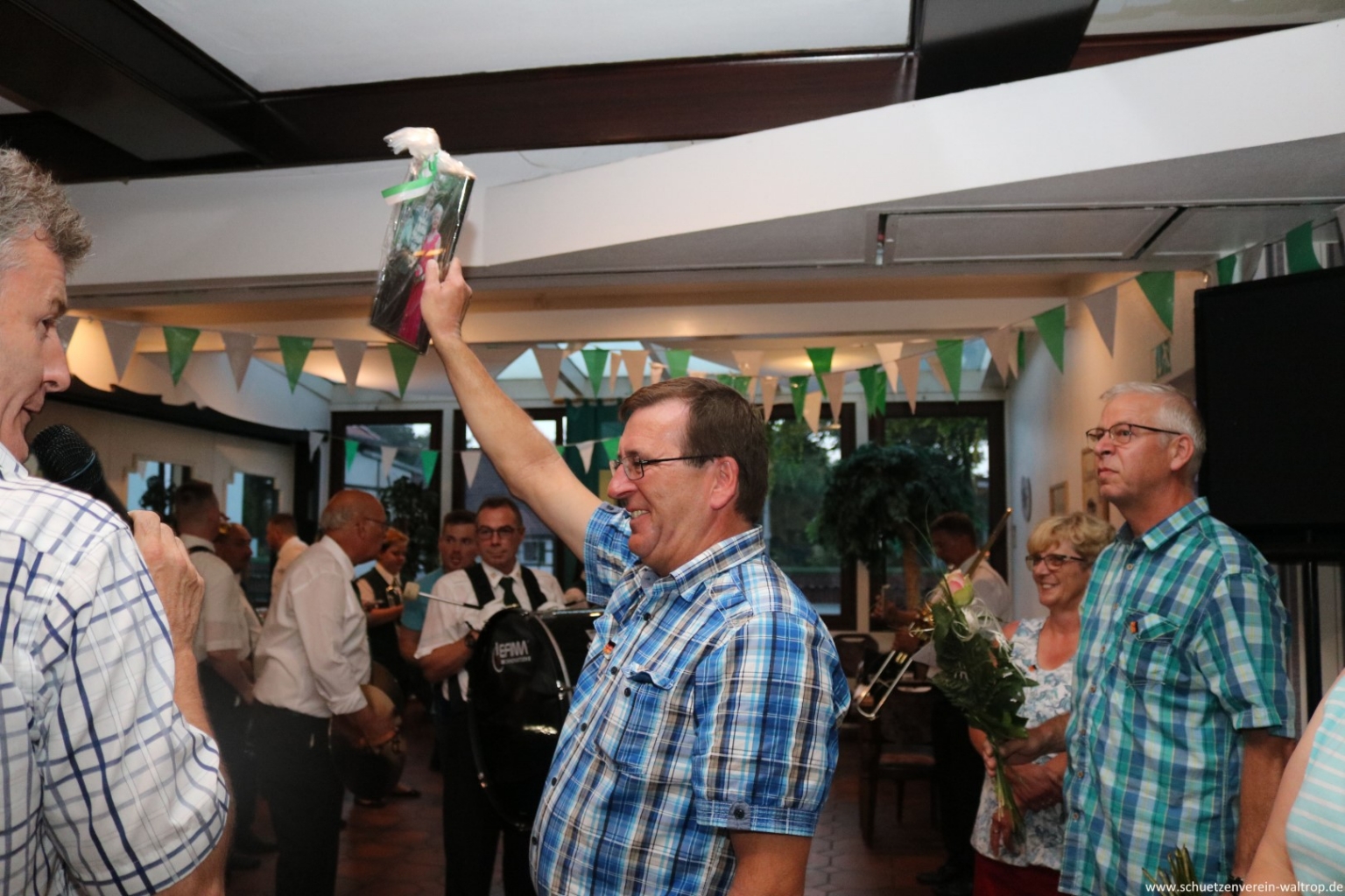Zur Einstimmug auf den gemütlichen Teil des weiteren abends gab es für jedes Mitglied des Bataillonsvorstandes und des Hofstaates noch eine kleine, klare Spezialität aus dem Hause Bröggelhoff für die Herren, die Damen bekamen ein Fläschchen Sekt überreicht.