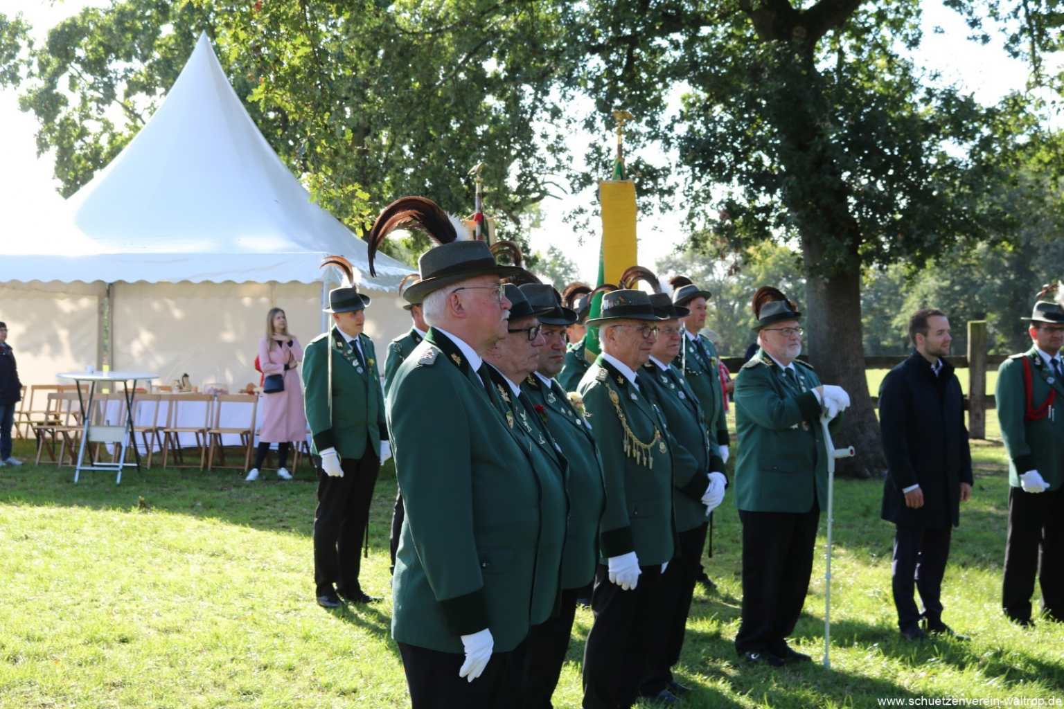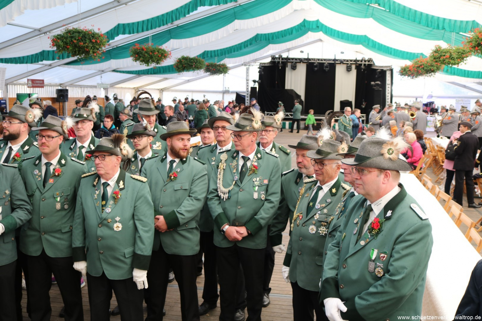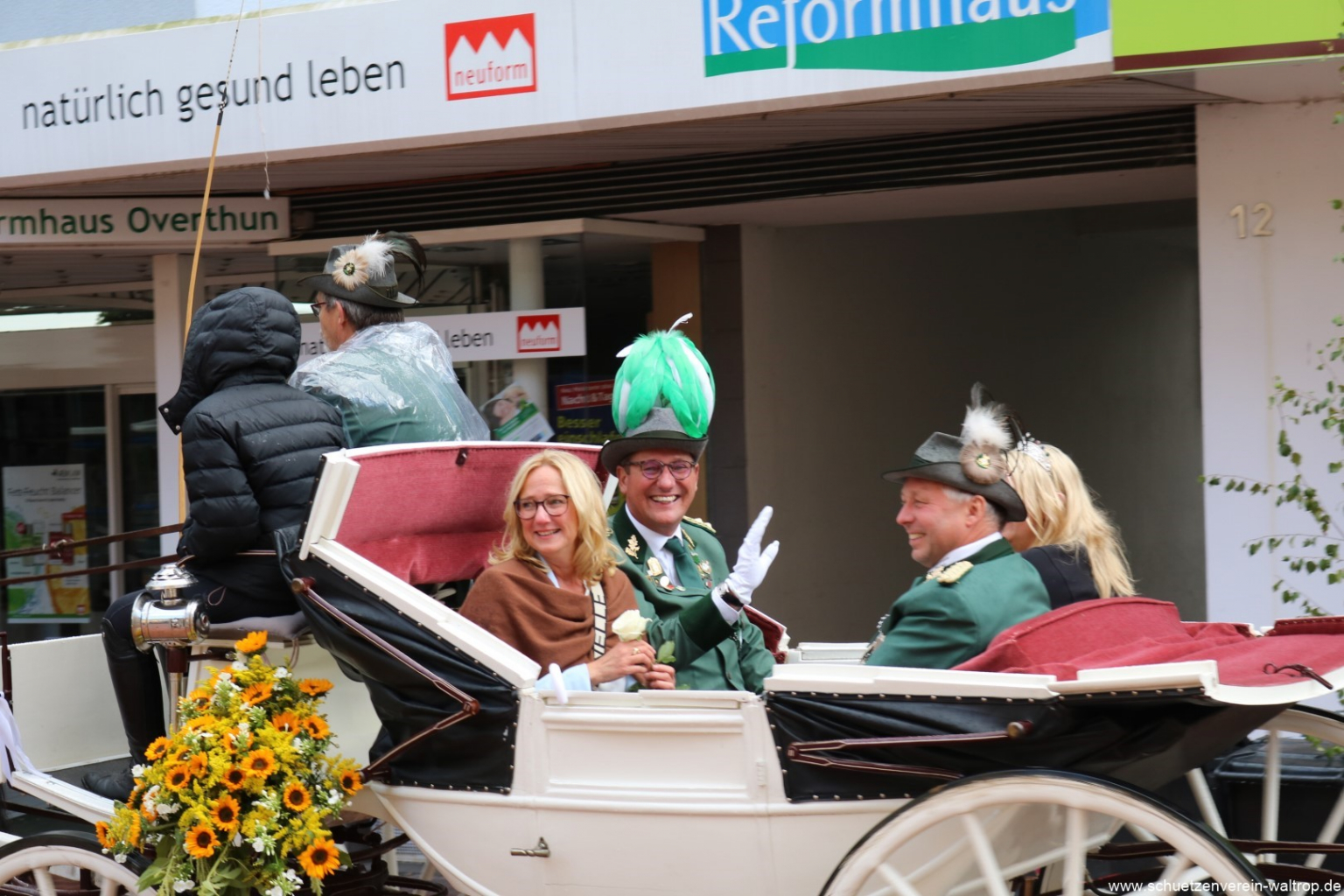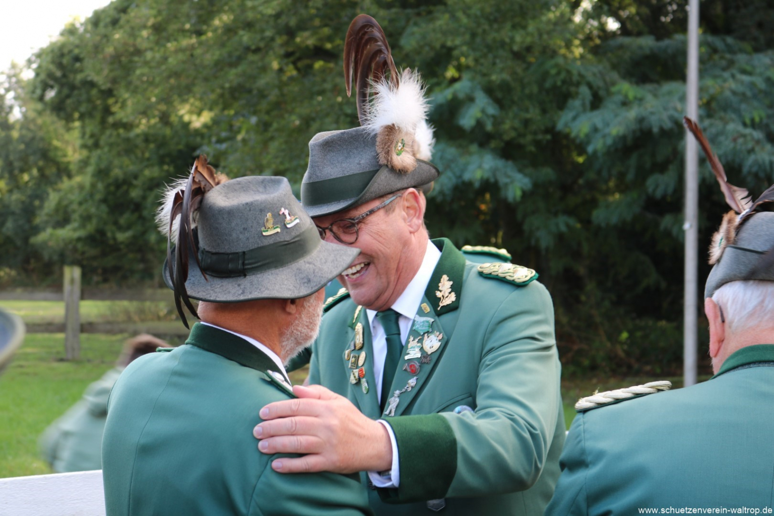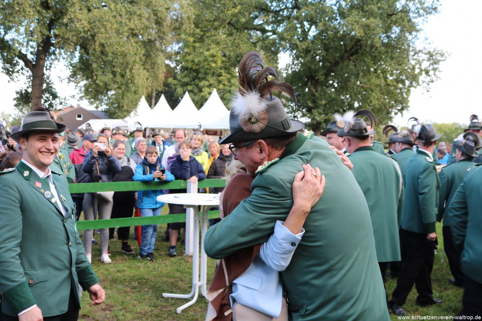 Beim Schießen um die Königswürde waren am Schluss noch zwei ernsthafte Anwärter im Rennen: Ludger Grothus und Karsten Pilger. In einem spannenden Schießen landete Ludger dabei den entscheidenden Schuss und holte den Vogel von der Stange. Zusammen mit seiner Frau Claudia regieren beide nun als Ludger I. und Claudia I.! Die Krönung im Festzelt erfolgte anschließend durch Bürgermeister Marcel Mittelbach.